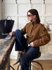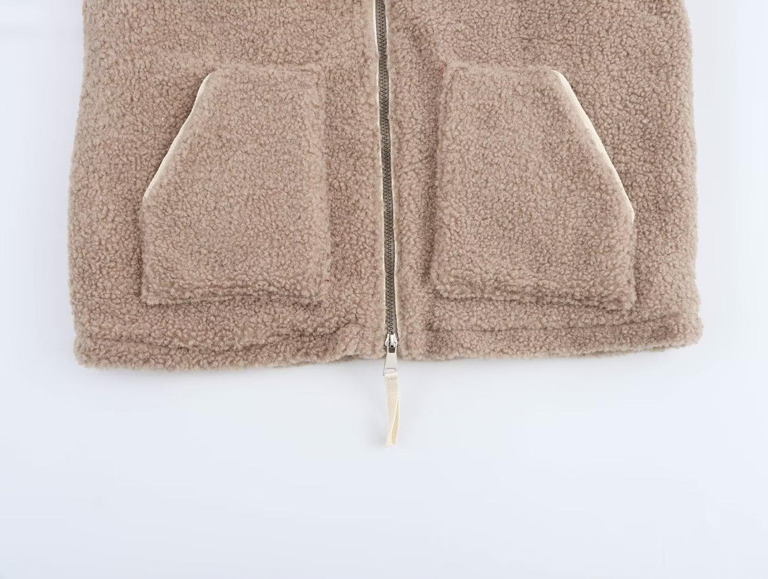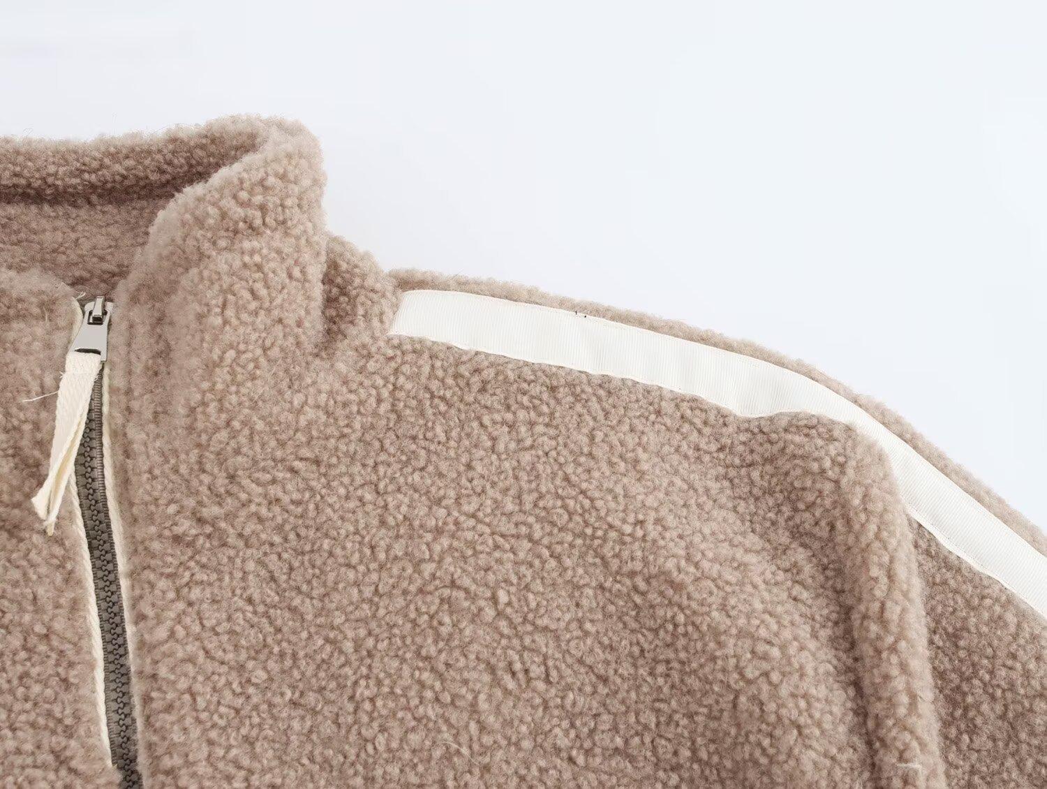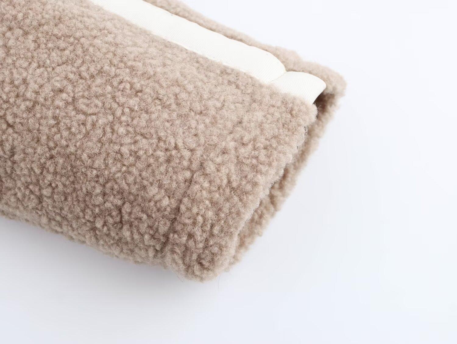 Amazon comercio exterior transfronterizo ropa de mujer europea y americana 2024 primavera nuevo abrigo camello suelto con cremallera y tira lateral de lana de cordero