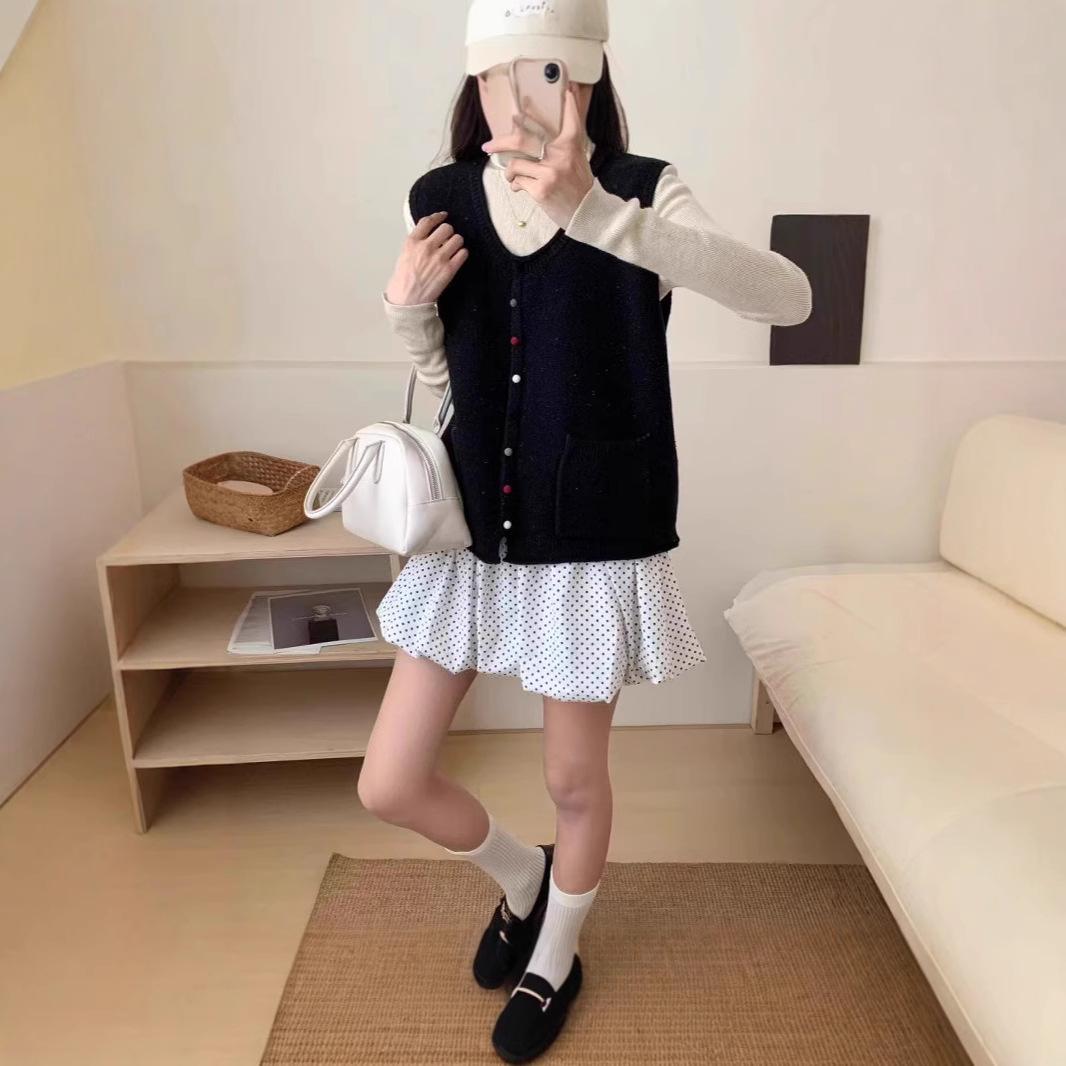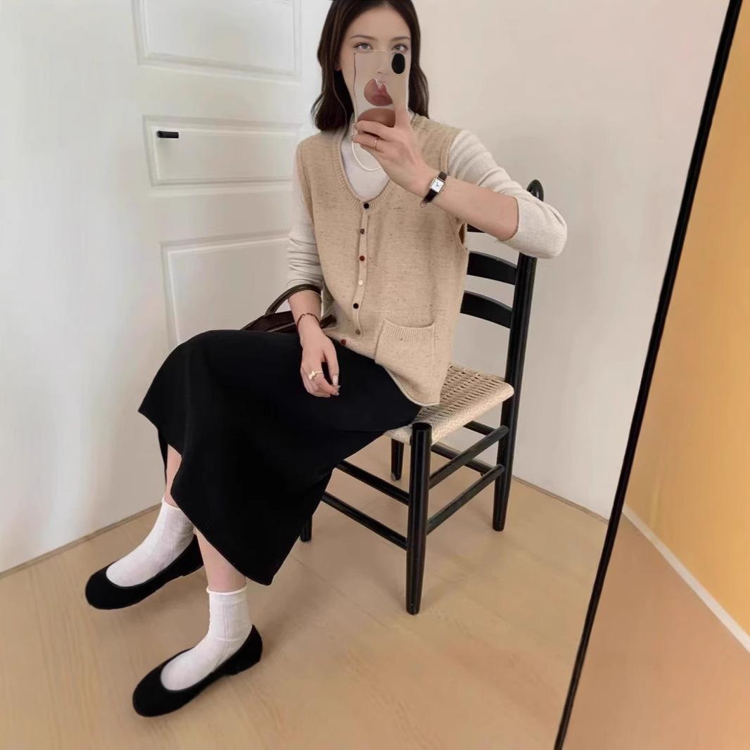 Chaleco de punto holgado de cuello redondo y botonadura sencilla, estilo coreano, para mujer, otoño e invierno, 2025