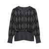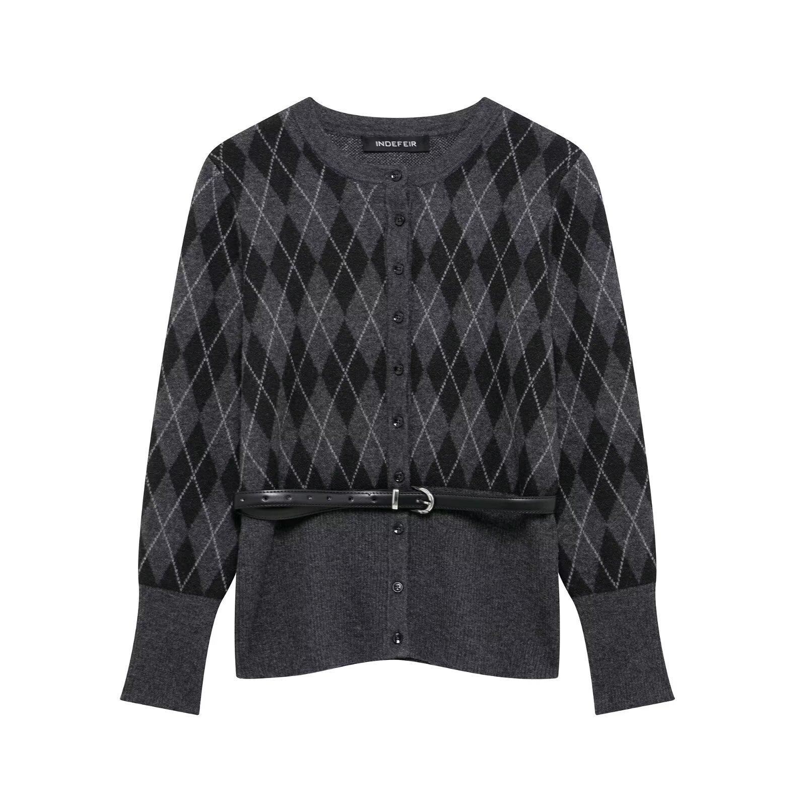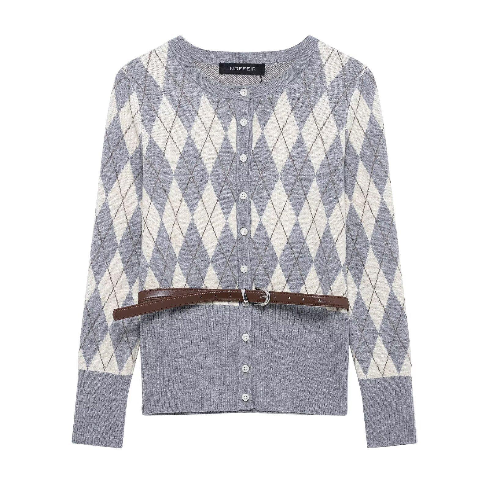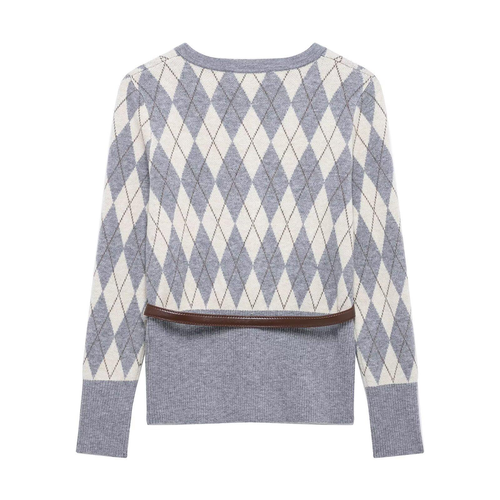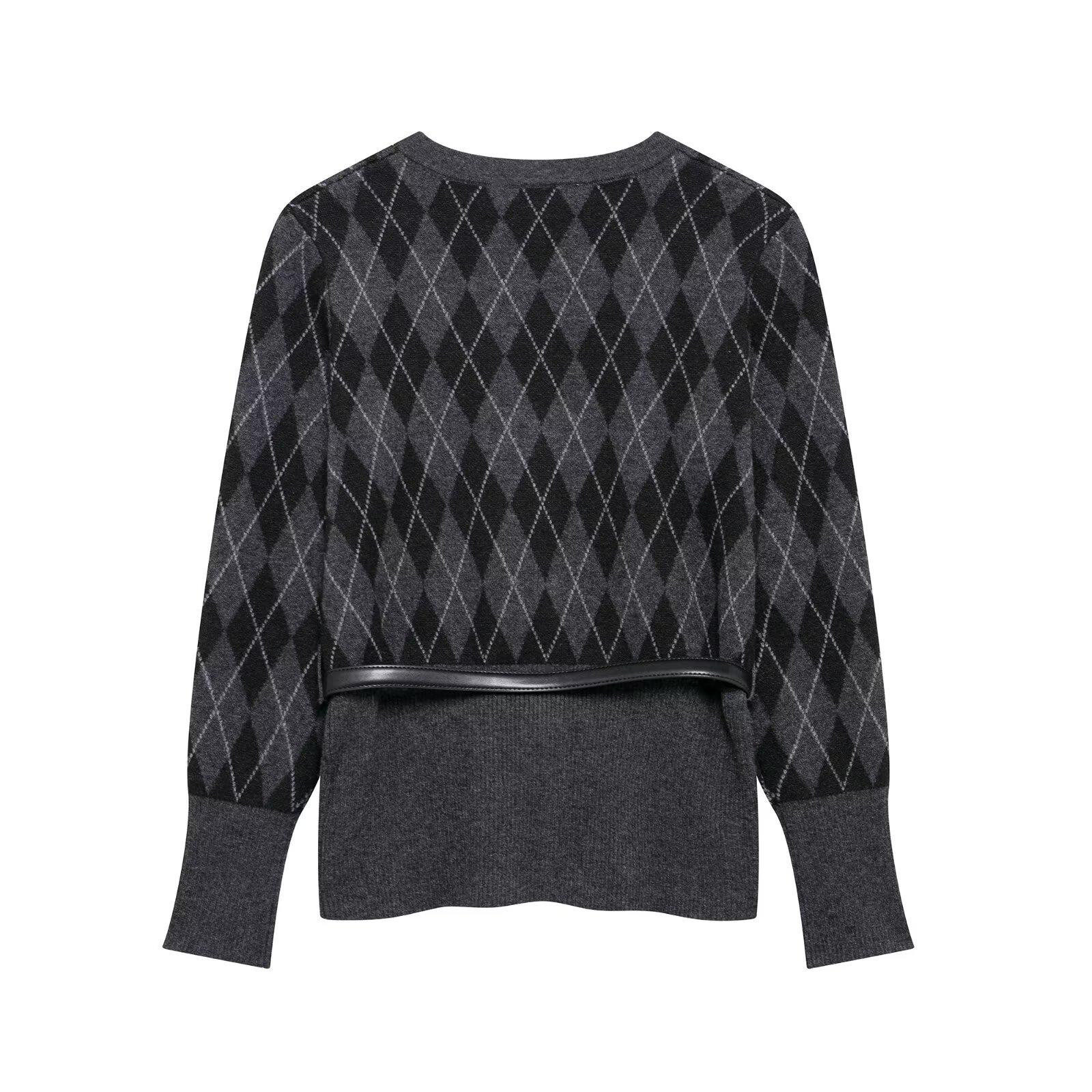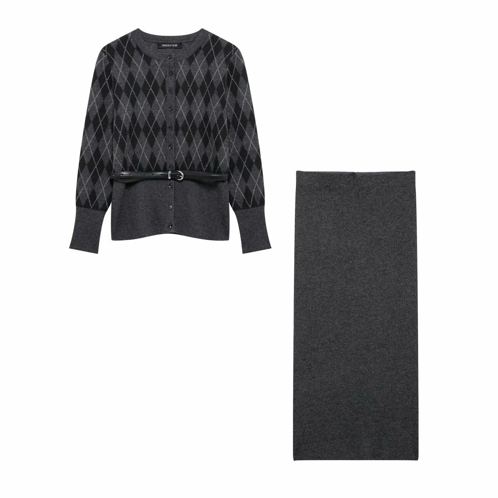 2025 Primavera Nuevo Europeo y Americano Transfronterizo Cinturón para Mujer Chaqueta de Punto Rombo + Traje de Falda W085 258002