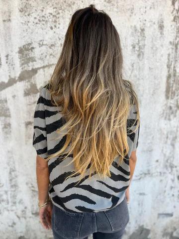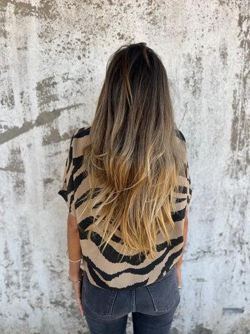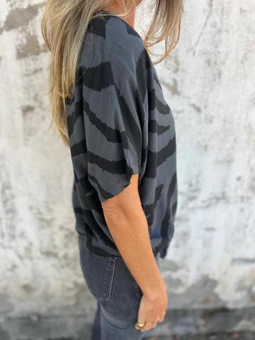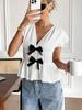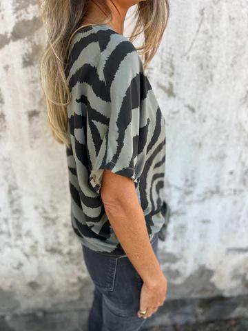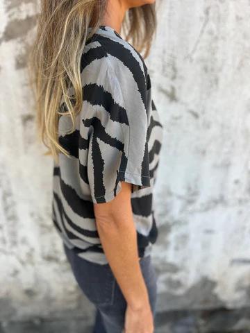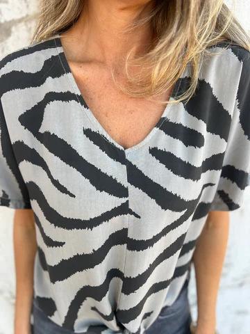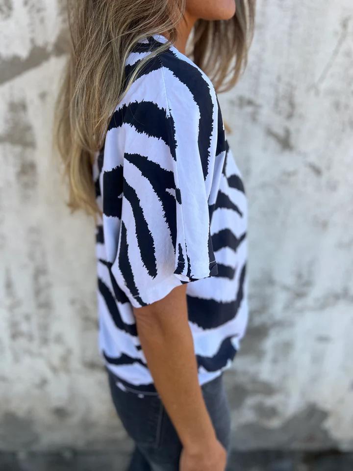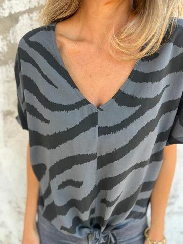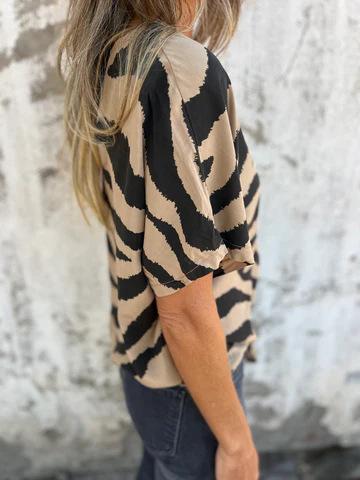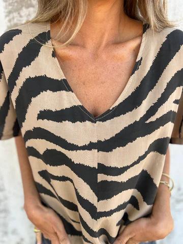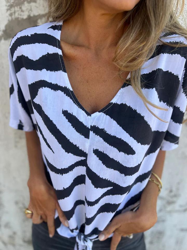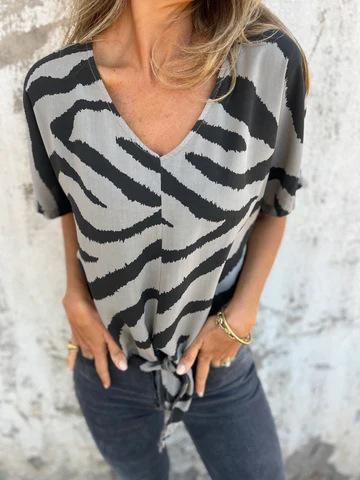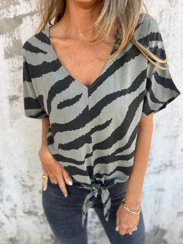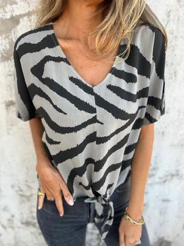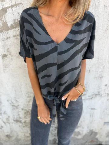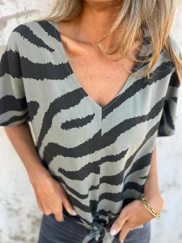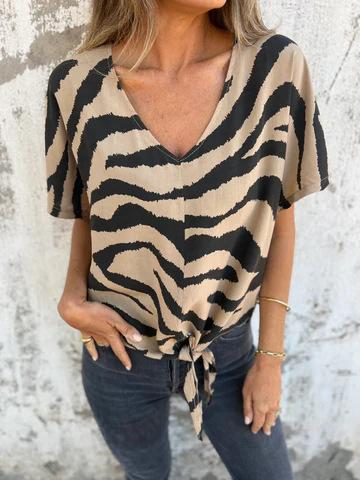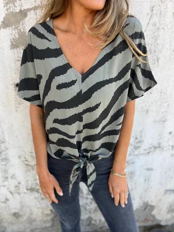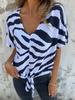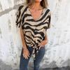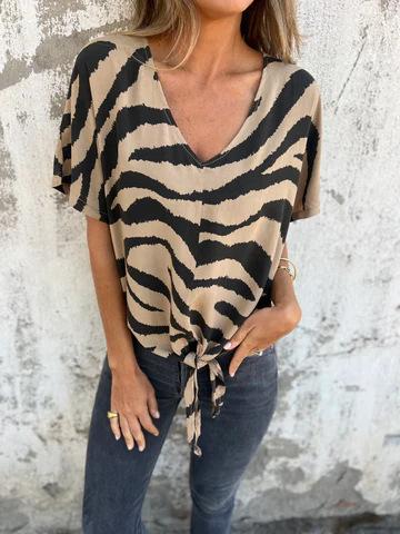 Blusa informal de manga corta con cuello en V y estampado de cebra con cordones para mujer, primavera y verano de 2025, comercio exterior transfronterizo de Amazon