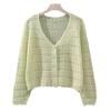 Camisa de punto con cuello en V holgado y ahuecada de estilo coreano de verano para mujer, cárdigan fino de manga larga de seda helada con protección solar