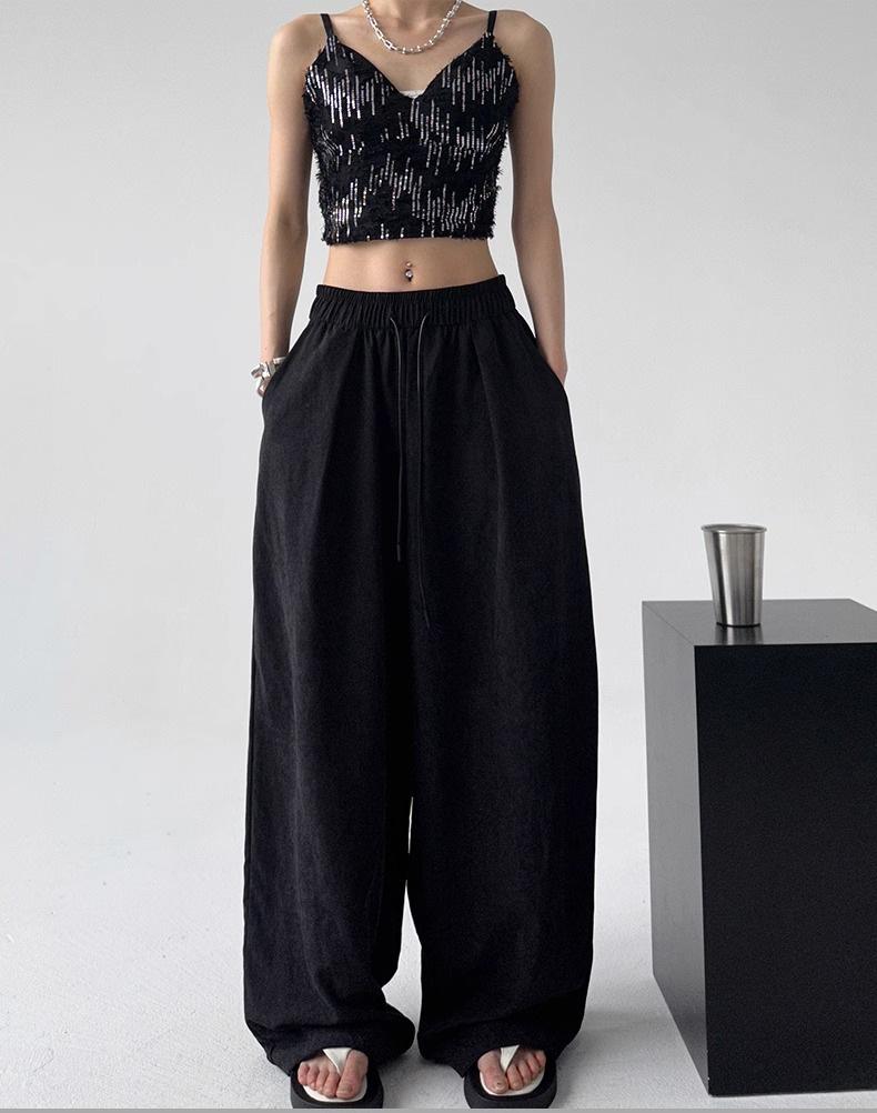 Pantalones casuales de diseño moderno y holgado para mujer, primavera y otoño de 2025, nuevos pantalones holgados de pierna ancha que combinan con todo.