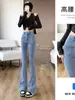 Pantalones vaqueros elásticos de microcampana para mujer, primavera y otoño 2023, nuevos, de cintura alta, ajustados, de pierna ancha y tendencia.