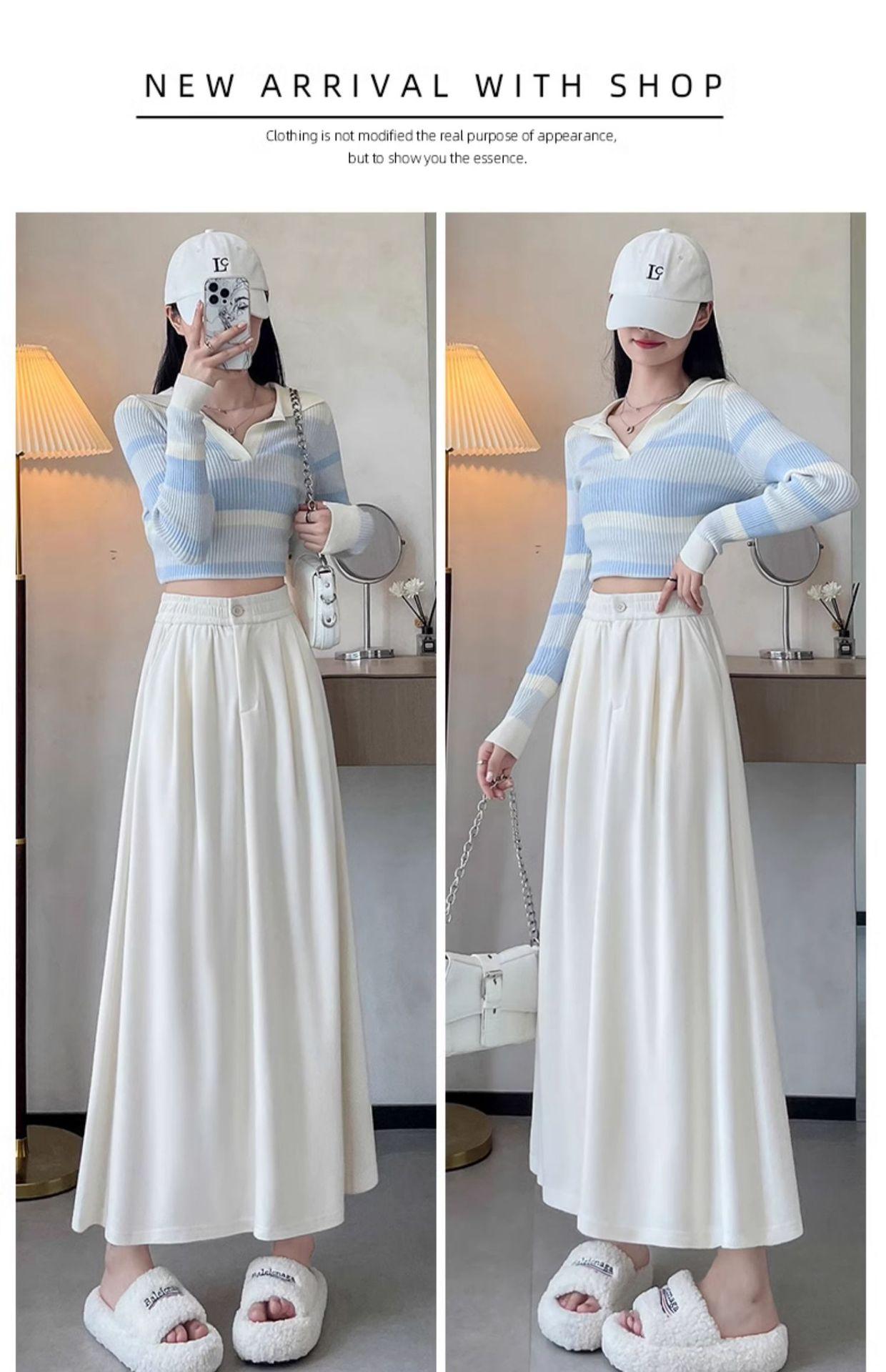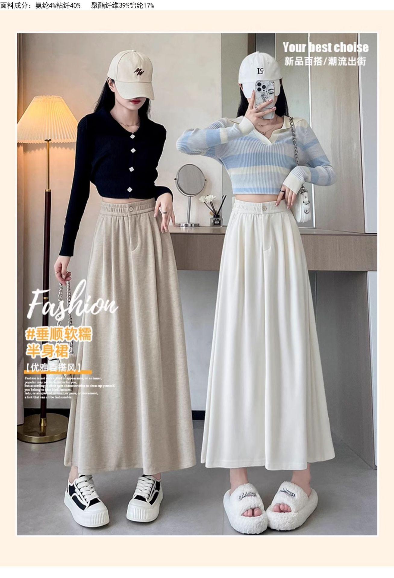 Falda de paraguas suave y cerosa de cintura alta, elástica y adelgazante, para primavera y otoño, de talla grande, holgada, combina con todo, 2024