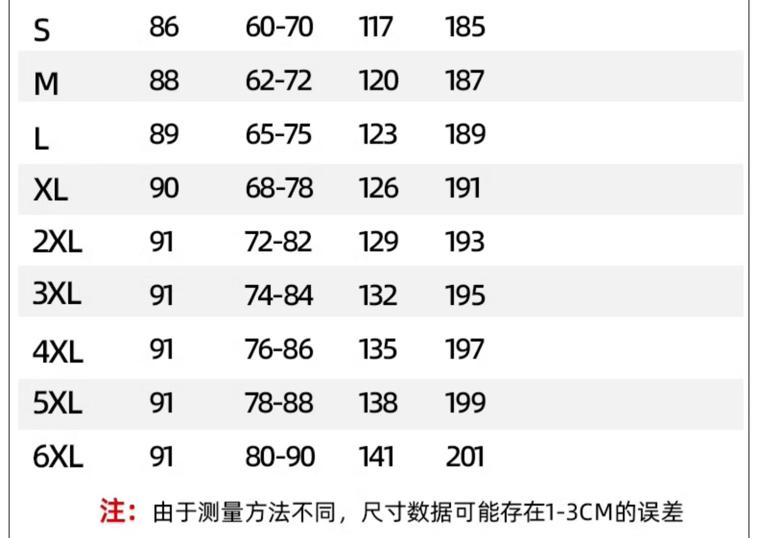 S, M, L, XL, 2XL, 3XL, 4XL, 5XL, 6XL