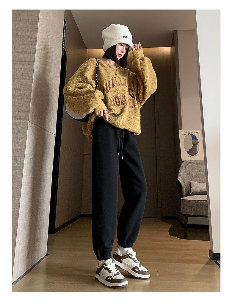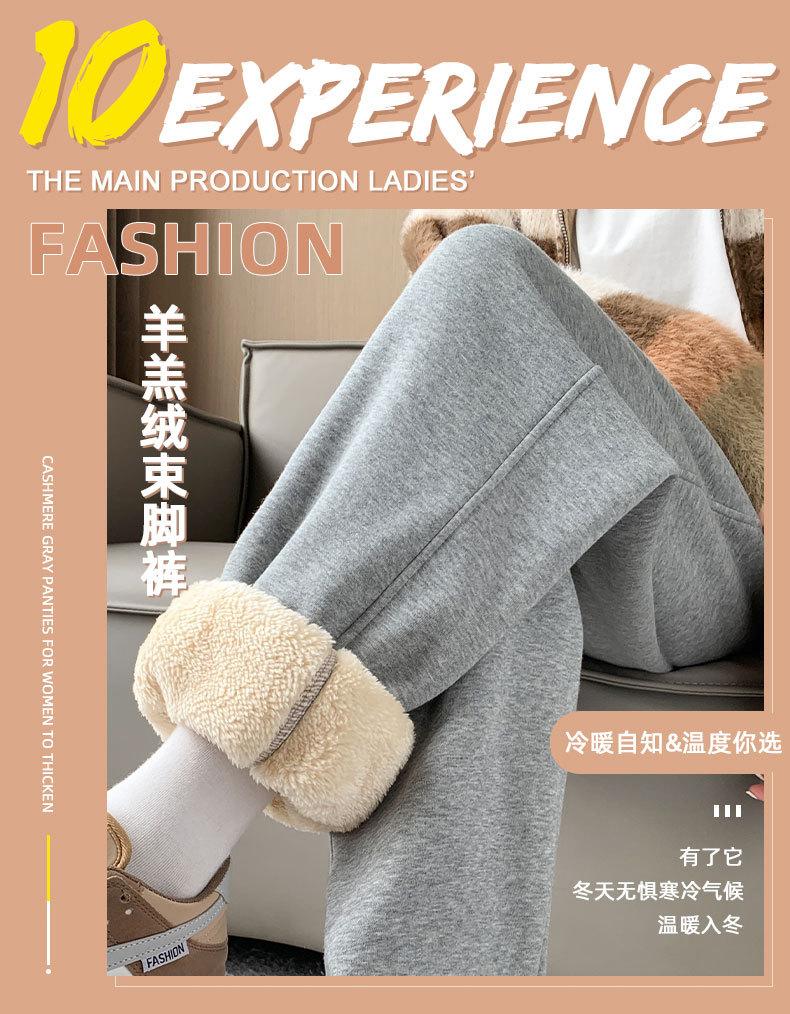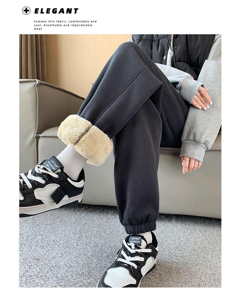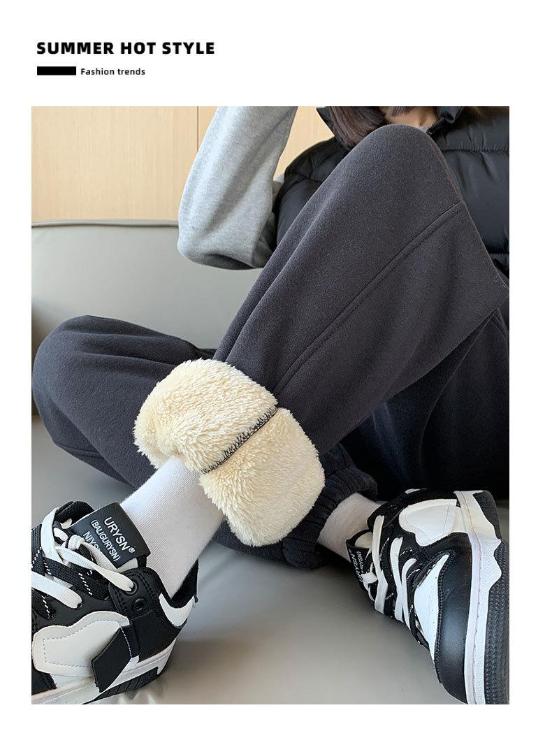 Pantalones deportivos con forro polar para mujer, otoño e invierno, gruesos, novedad de 2025, pantalones casuales de terciopelo de cordero pequeño con rábano.