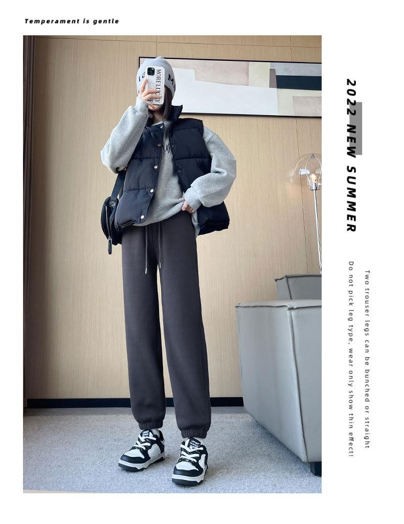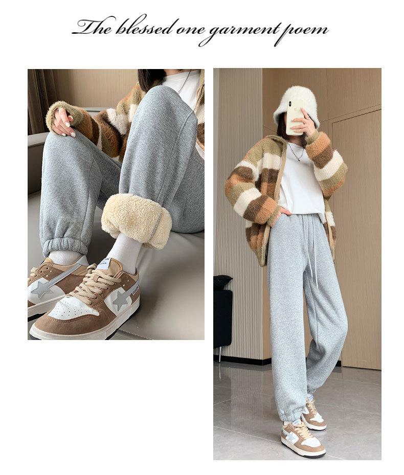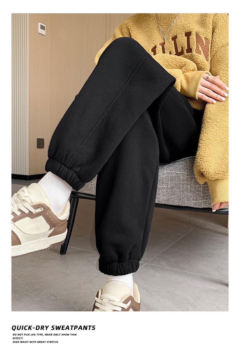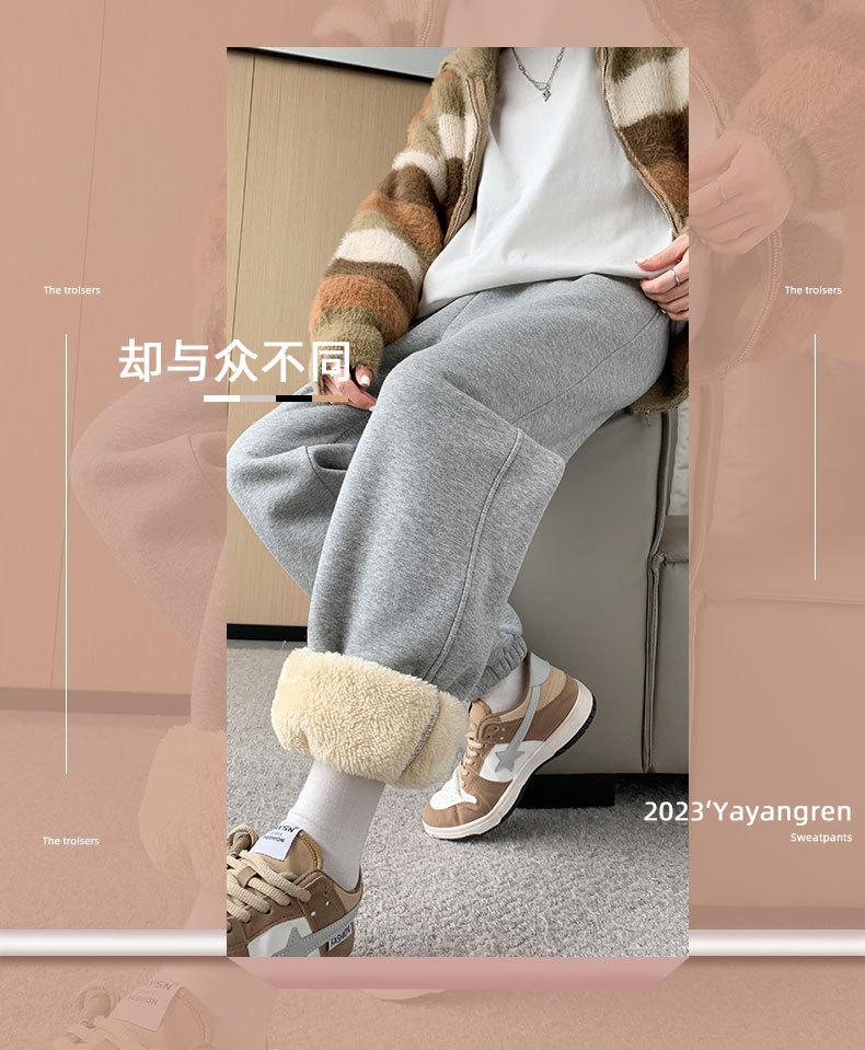 Pantalones deportivos con forro polar para mujer, otoño e invierno, gruesos, novedad de 2025, pantalones casuales de terciopelo de cordero pequeño con rábano.