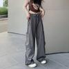 Pantalones de verano finos estilo americano de calle alta, holgados, de pierna ancha, para mujer, de color liso