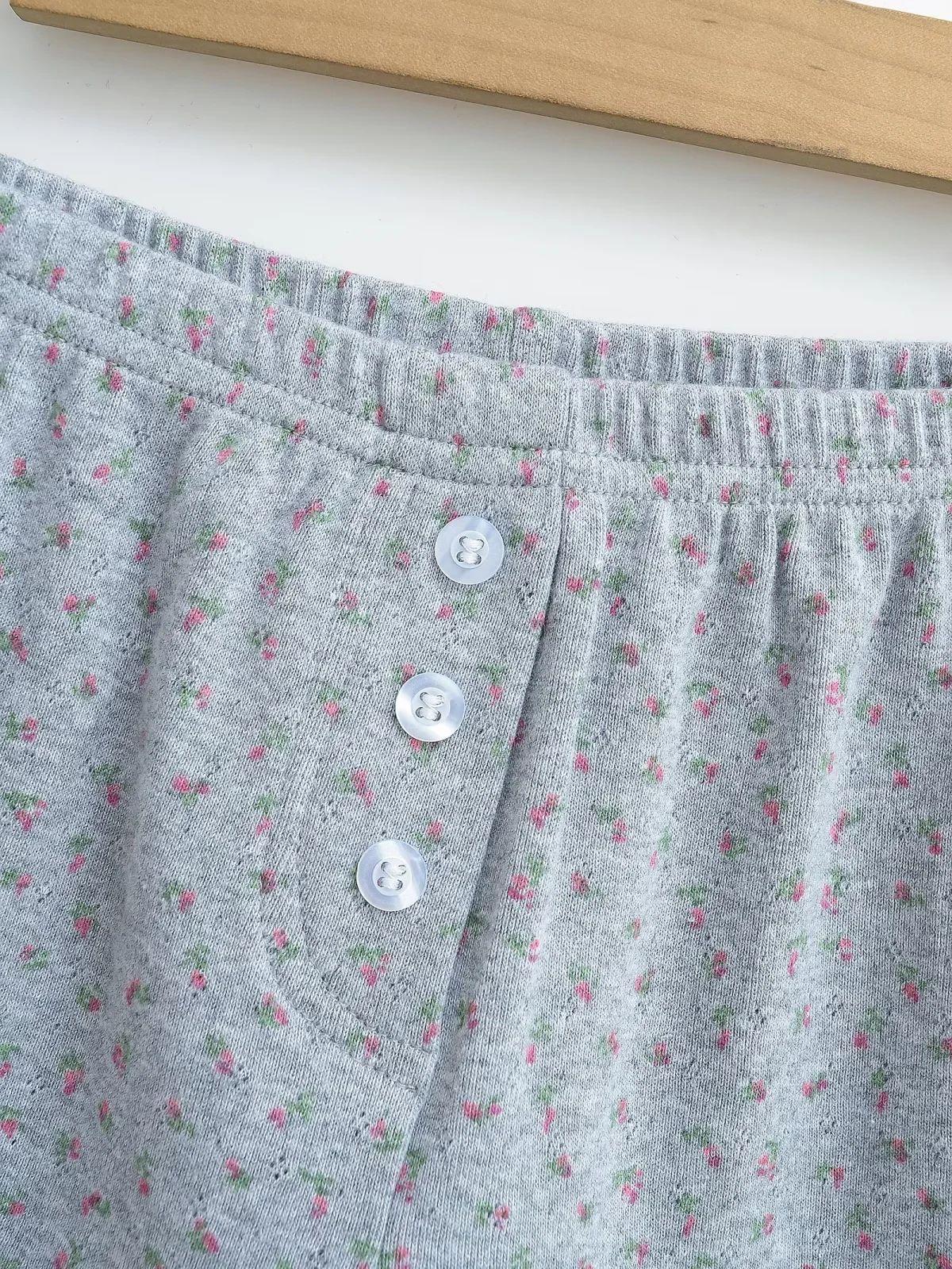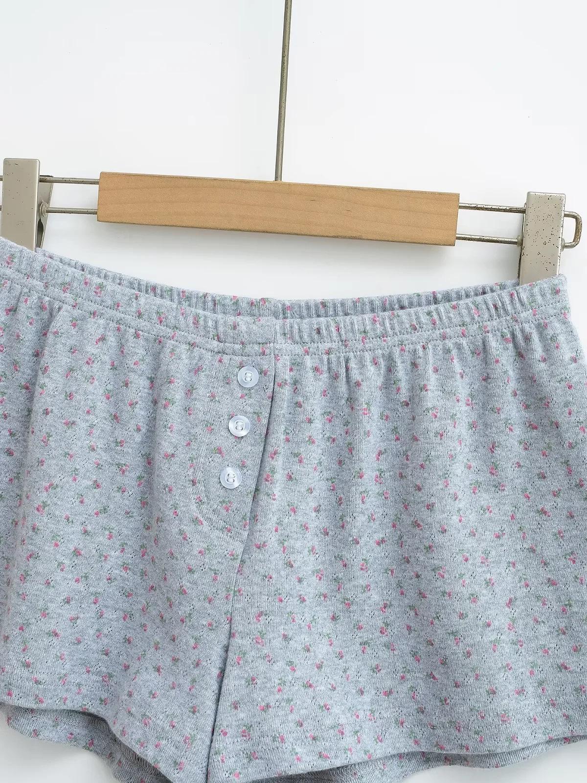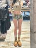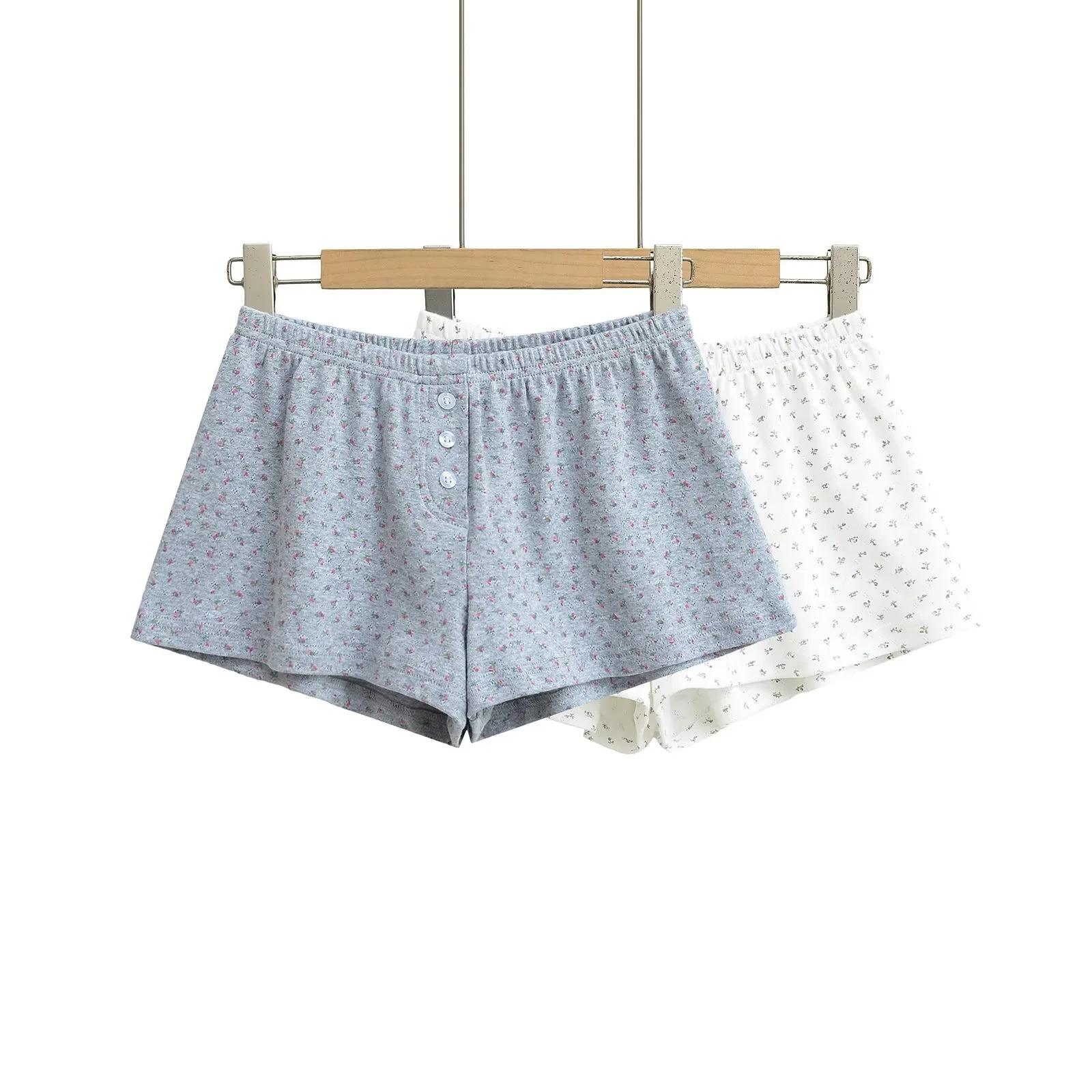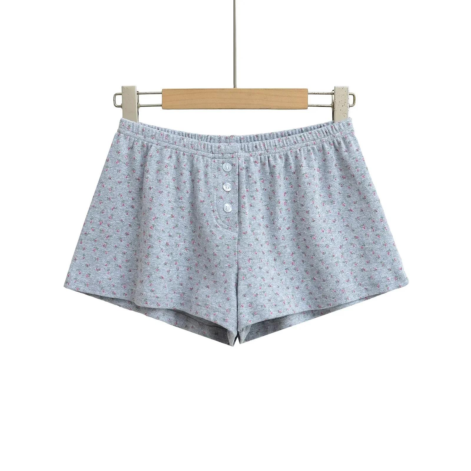 2025 Nuevo Estilo Americano Pantalones Cortos Estampados BM para Mujer Estilo Chica Caliente Cintura Baja Tres Botones Pierna Ancha Sueltos Casual Hogar Pantalones Cortos Calientes