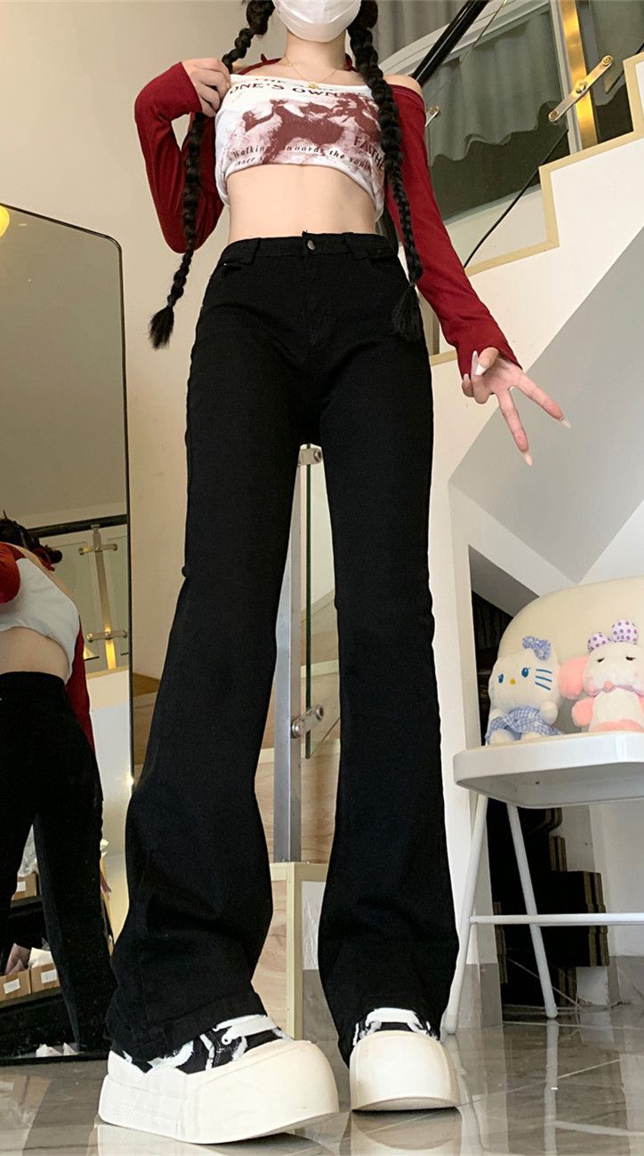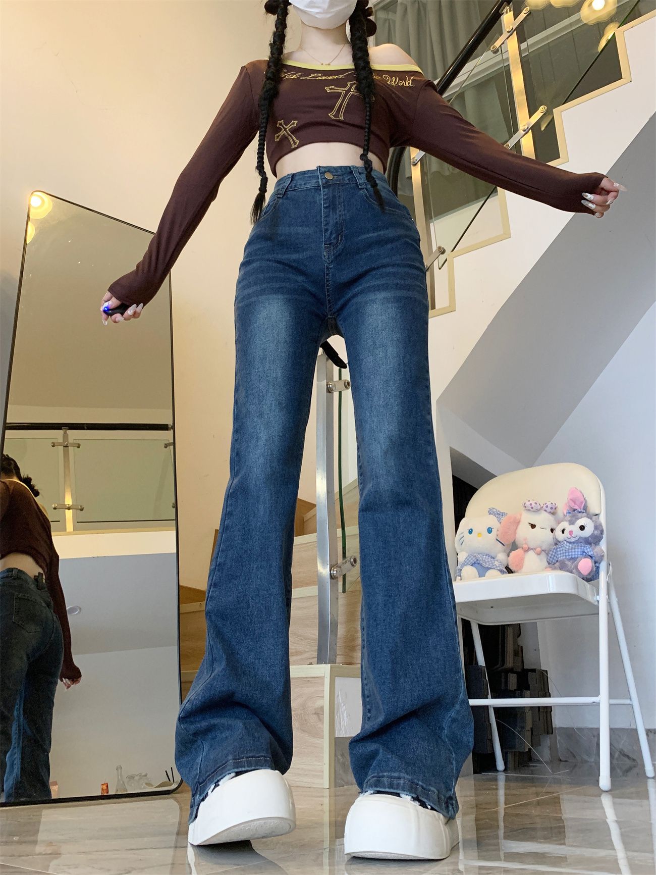 ¡Un disparo real! Negro Azul Cintura Alta Micro La Jeans Mujer Otoño Pequeño Elástico Nueve Puntos & Pantalones & Edición Larga