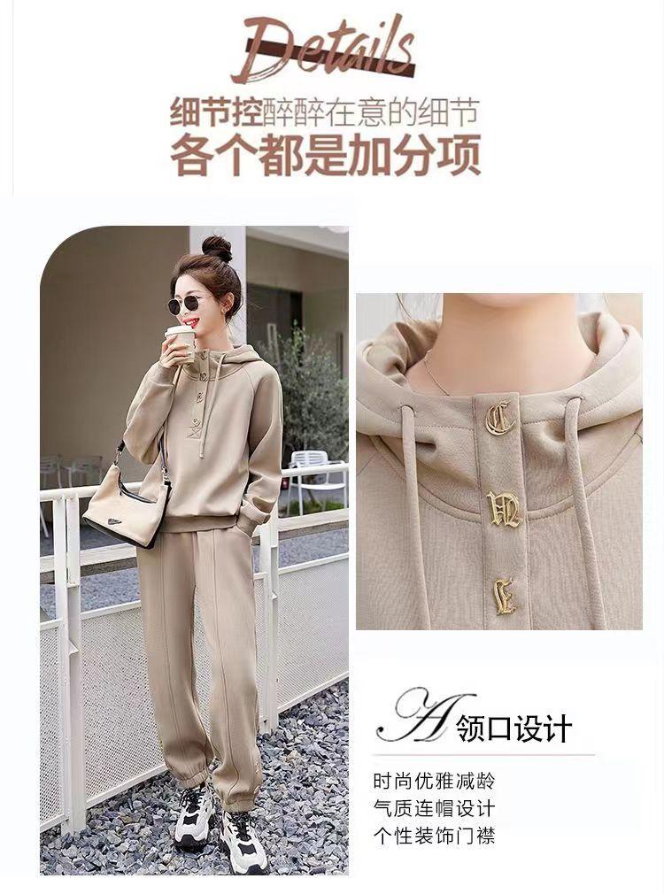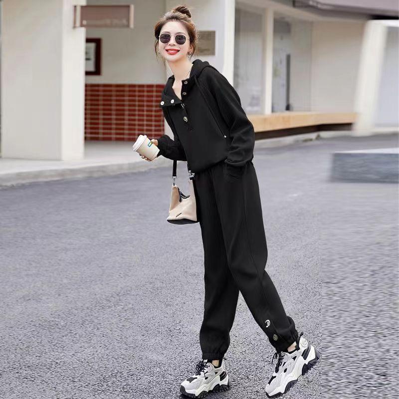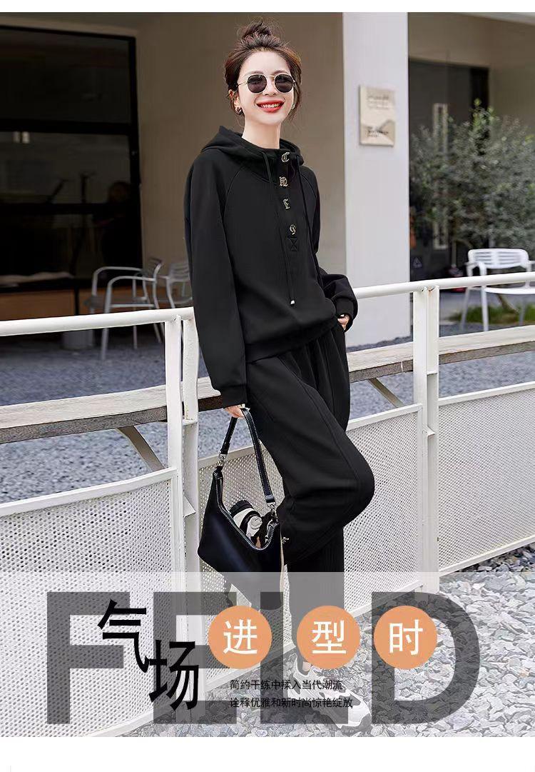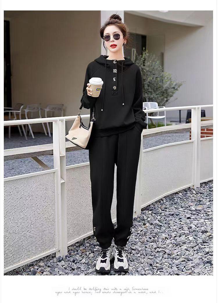 Traje deportivo de alta gama para mujer, primavera y otoño, nuevo estilo extranjero, suéter holgado con capucha, pantalones, traje de dos piezas para hermana gorda