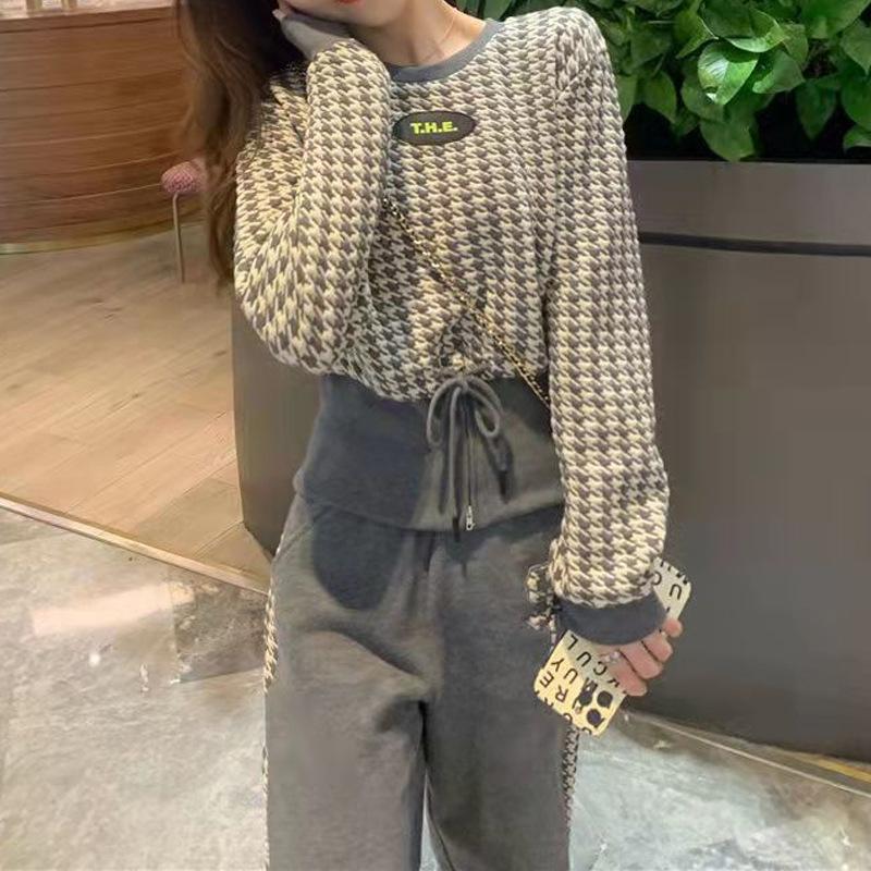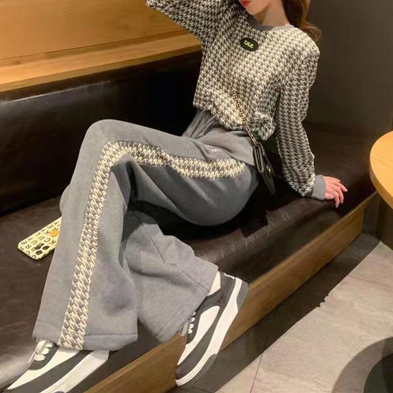 Traje de estilo pequeño y fragante para mujer, otoño e invierno 2024, nueva ropa para mujer, elegante, antiedad, moda informal, pantalones anchos, conjunto de dos piezas para mujer