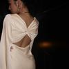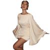 Vestido ajustado de manga larga con huecos de satén blanco nuevo de estilo socialité europeo y americano de verano, moda versátil 2025