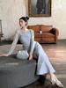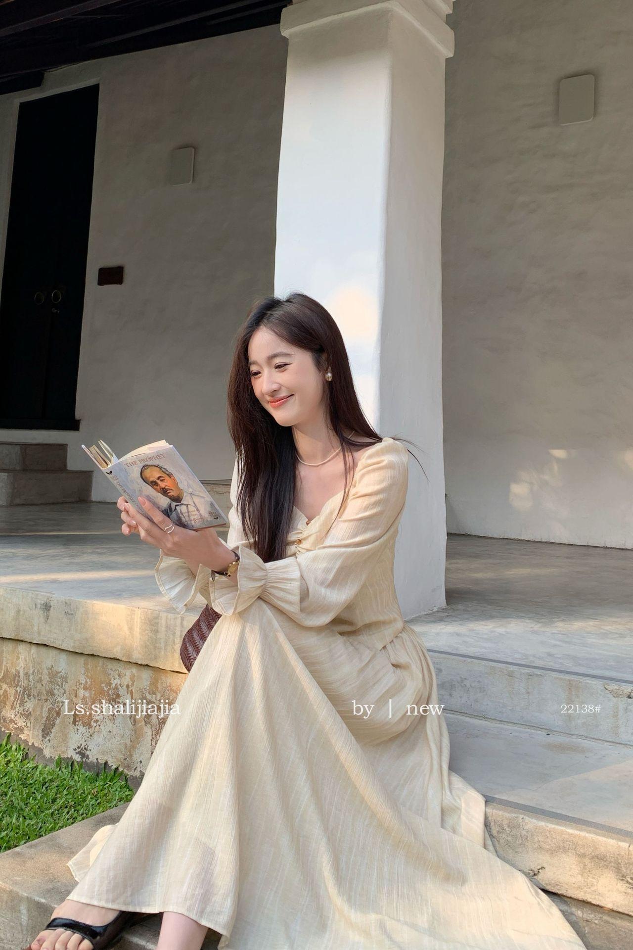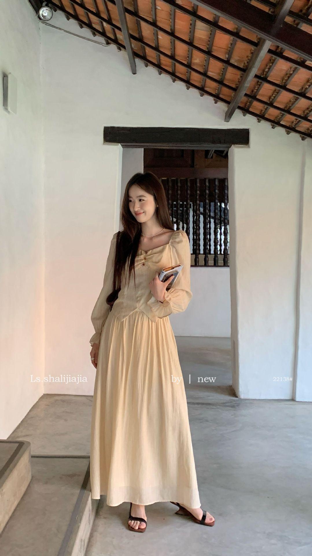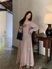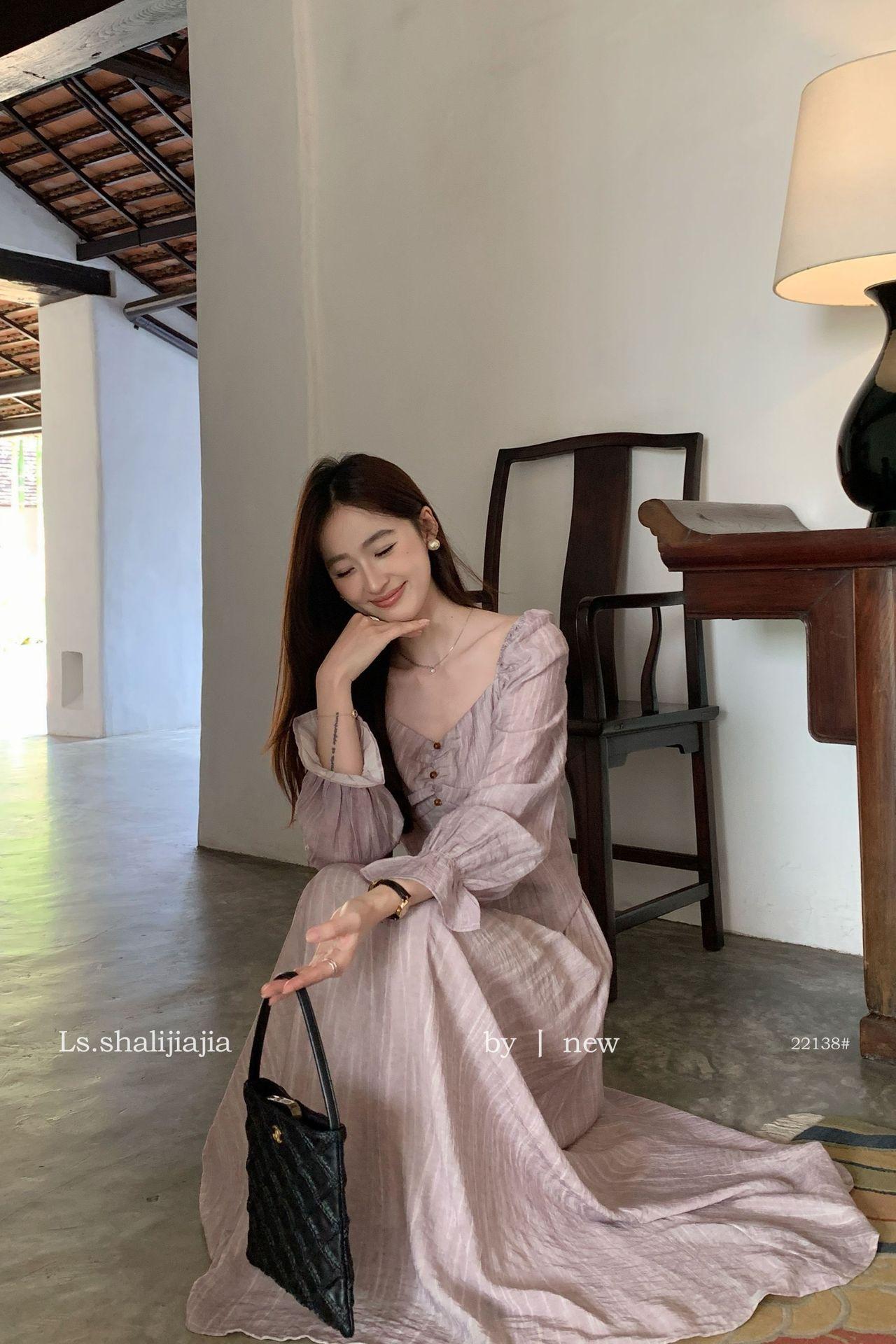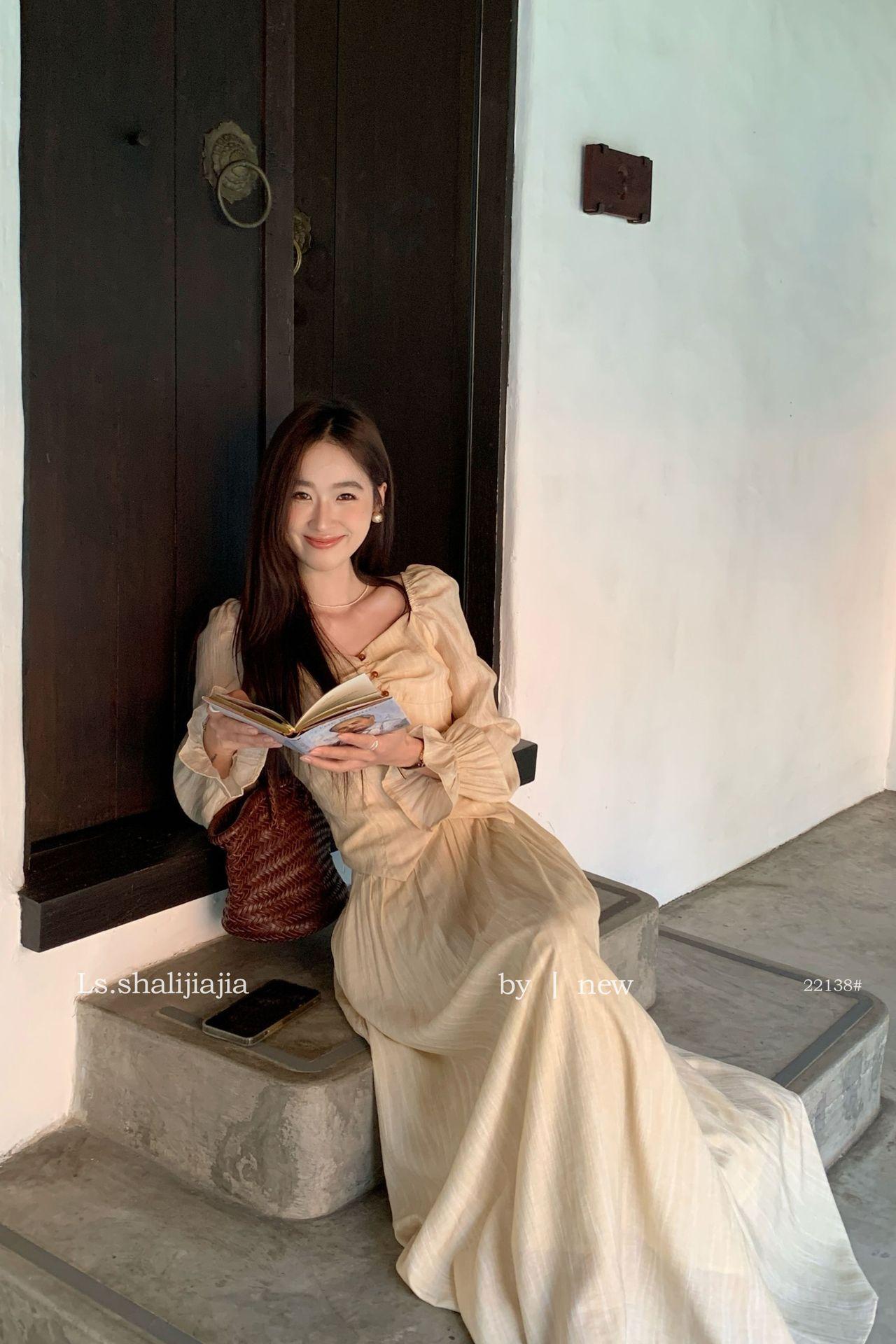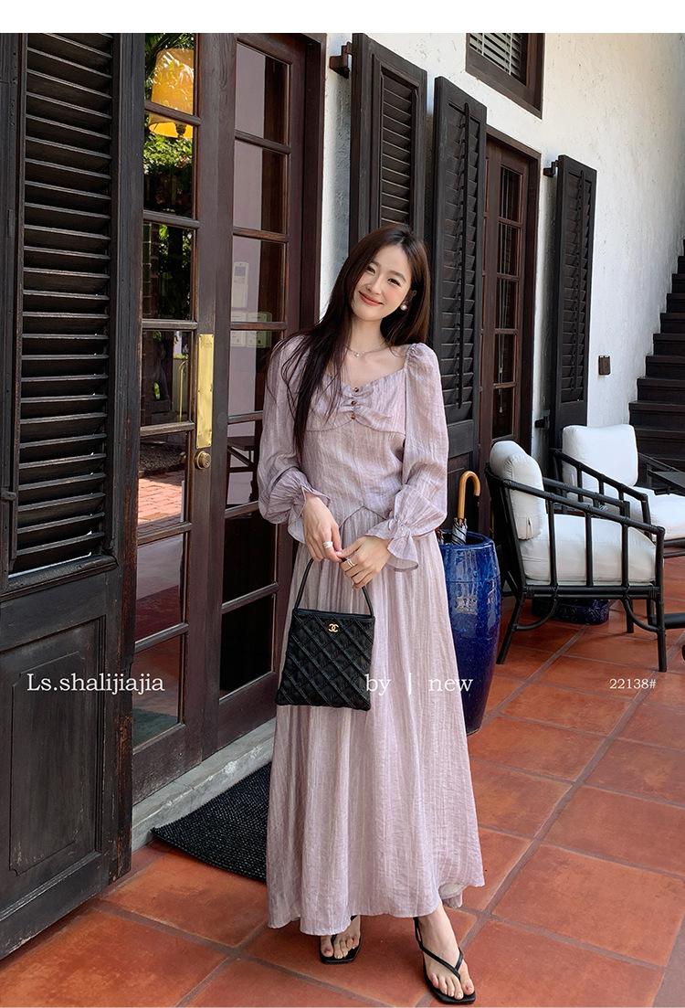 Conjunto de dos piezas de falda y top de cuello cuadrado suave de manga larga para mujer Guangzhou Trece Líneas 25 Años Primavera Nuevo traje 22138