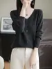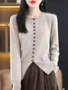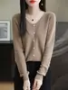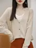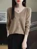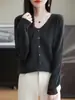 Cárdigan de punto de lana pura con cuello en V para mujer, nuevo, de color liso, holgado, elegante, informal, sencillo, de moda, de un solo pecho