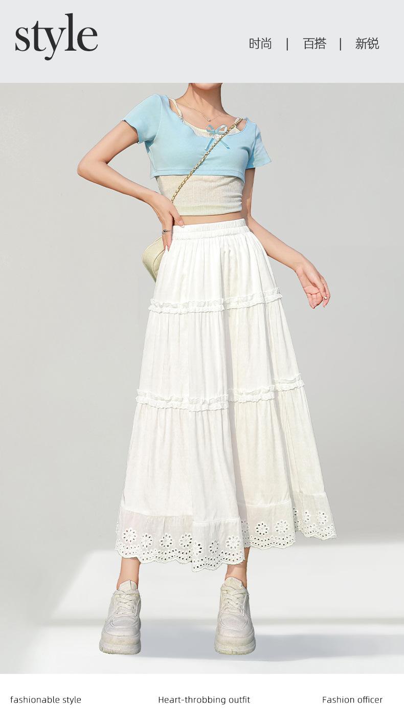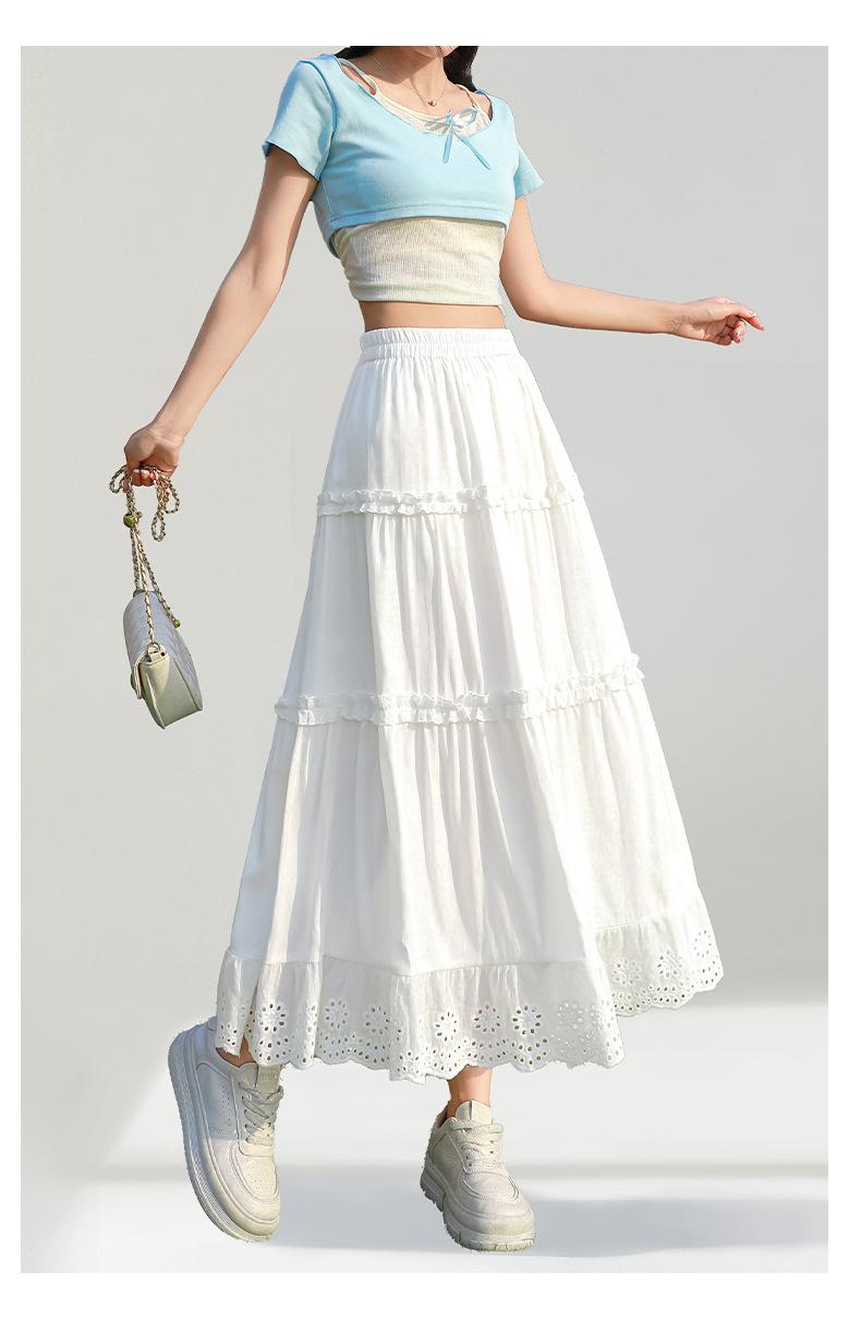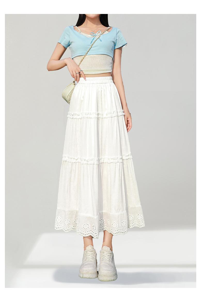 Falda Blanca de Pastel para Mujer Verano Delgada 2025 Nueva Falda A-Line Slim de Cintura Alta Falda Midi