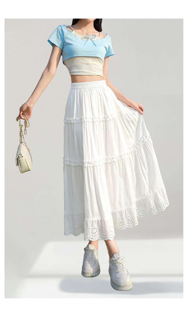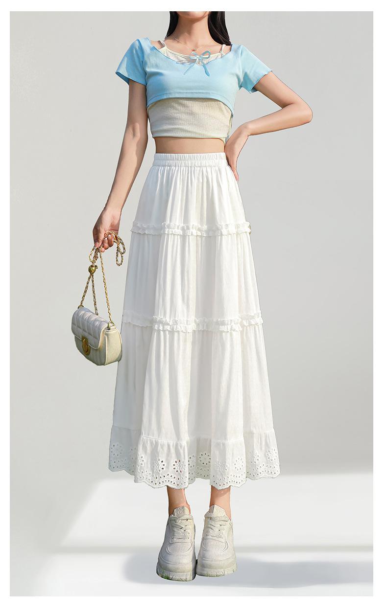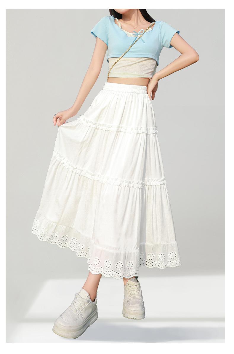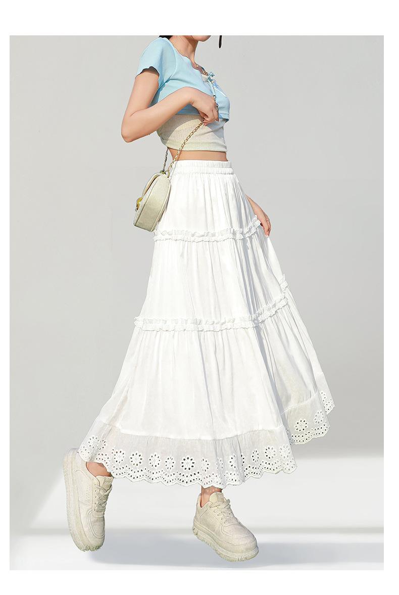 Falda Blanca de Pastel para Mujer Verano Delgada 2025 Nueva Falda A-Line Slim de Cintura Alta Falda Midi