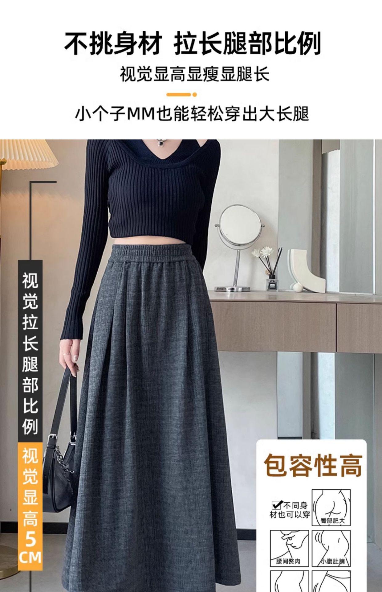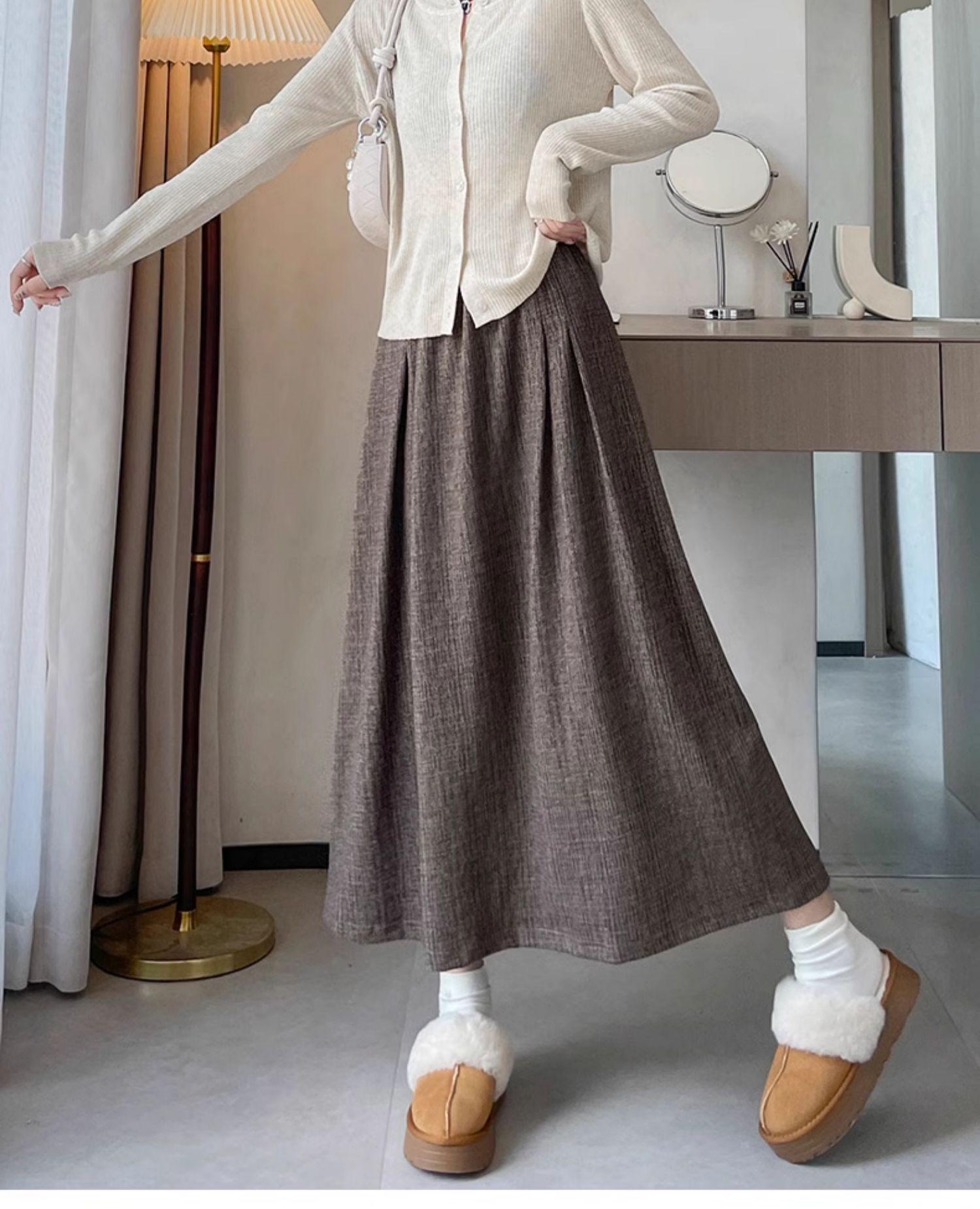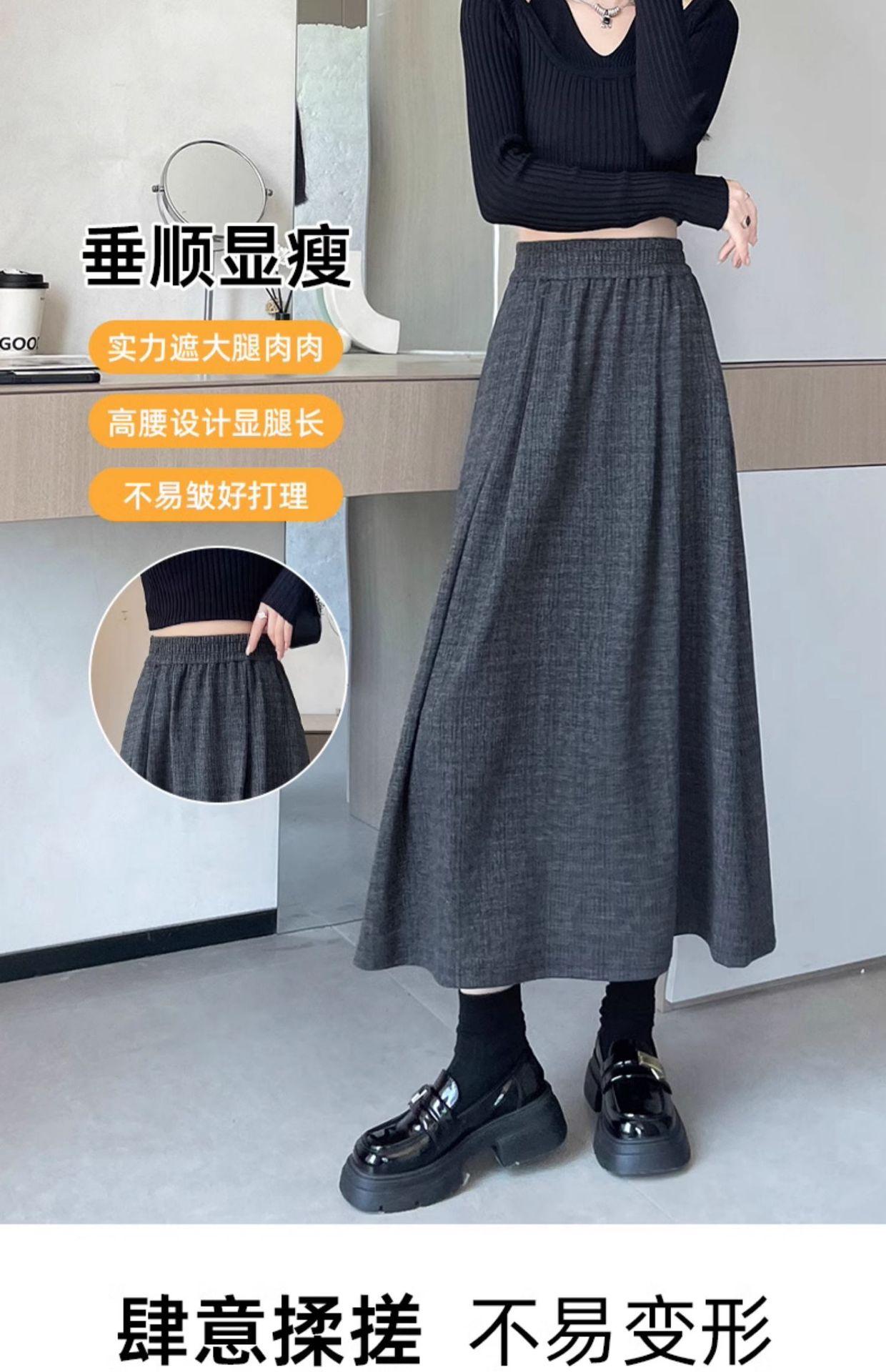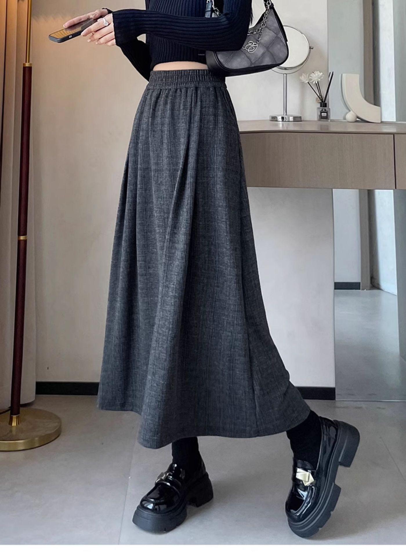 Falda paraguas plisada vintage en forma de A para mujer, nueva primavera y otoño 2024, falda con cintura elástica, talla grande, adelgazante, falda larga