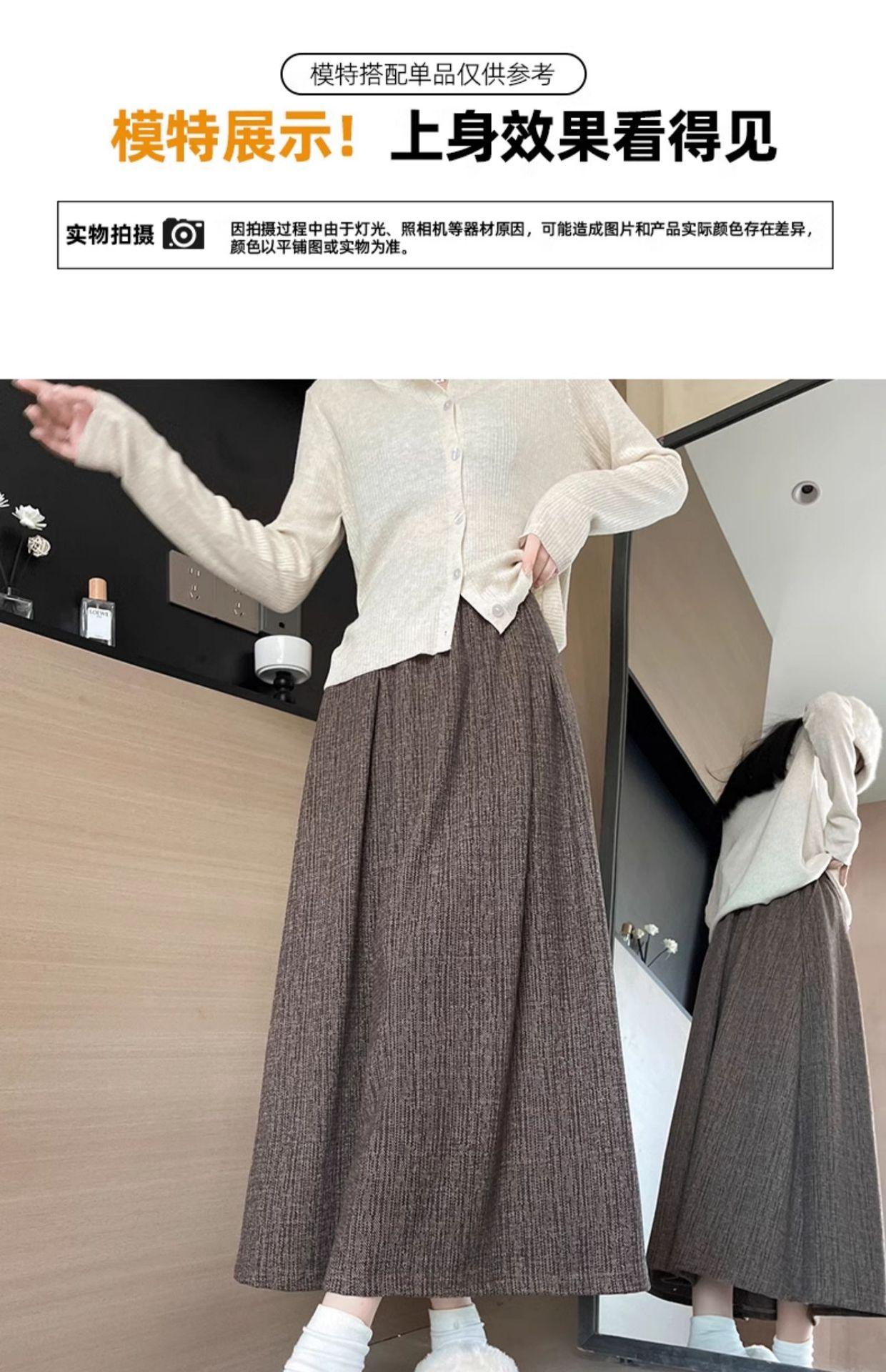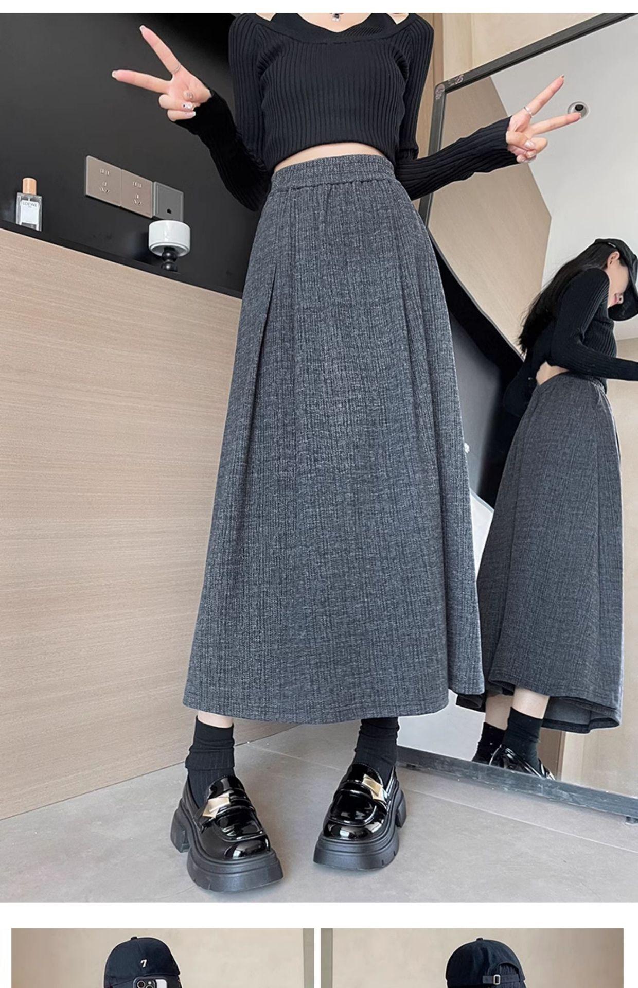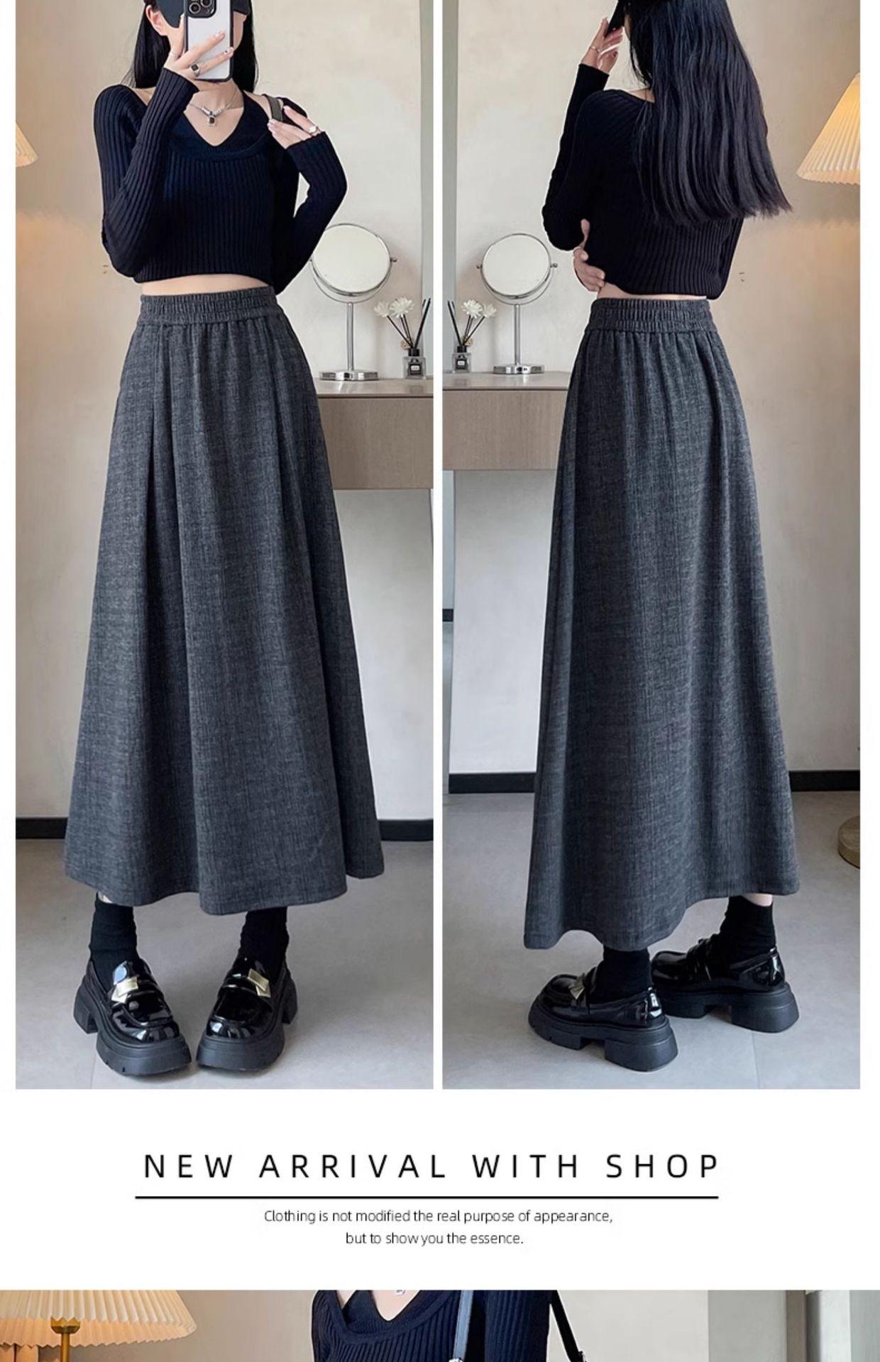 Falda paraguas plisada vintage en forma de A para mujer, nueva primavera y otoño 2024, falda con cintura elástica, talla grande, adelgazante, falda larga