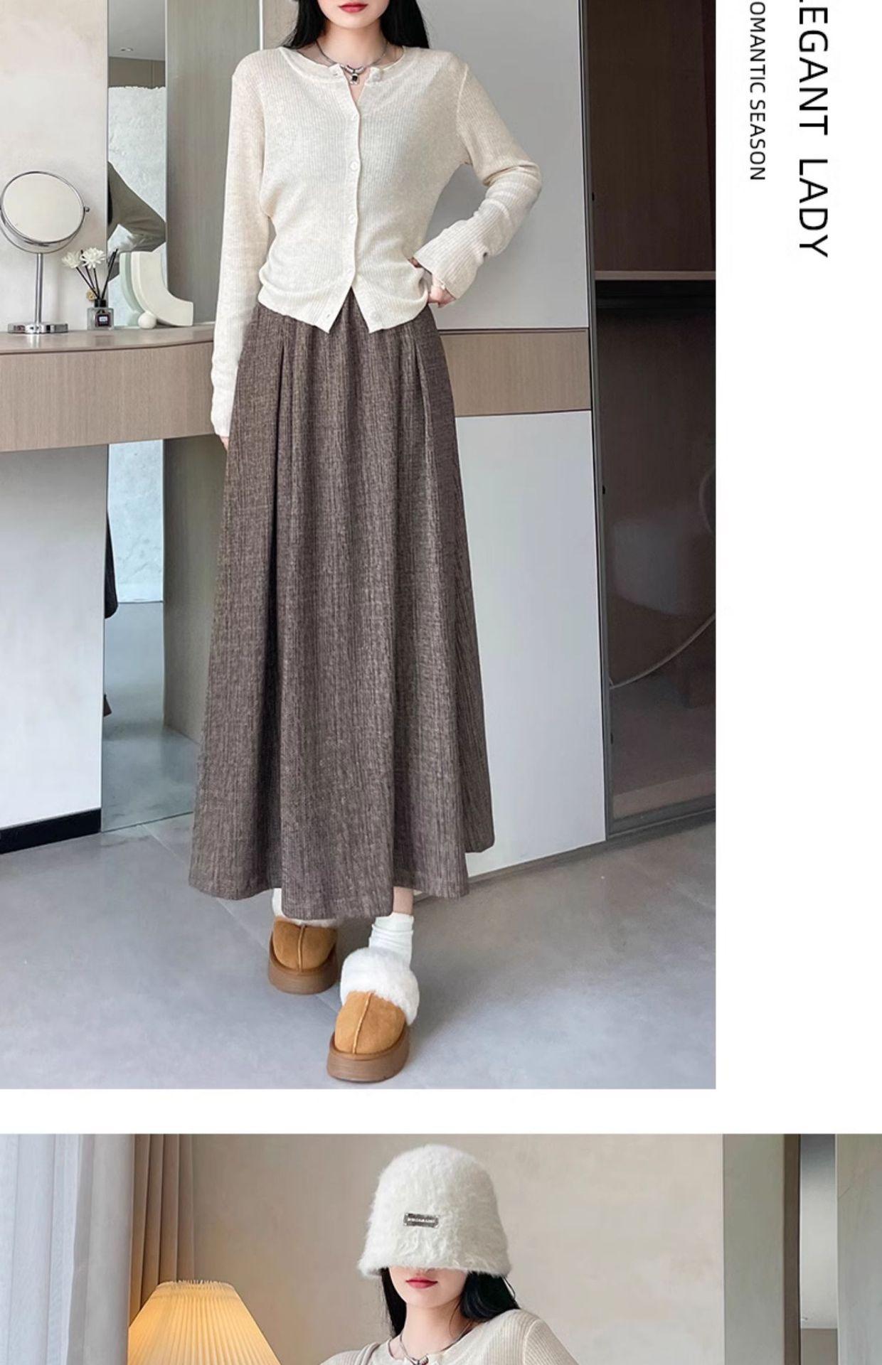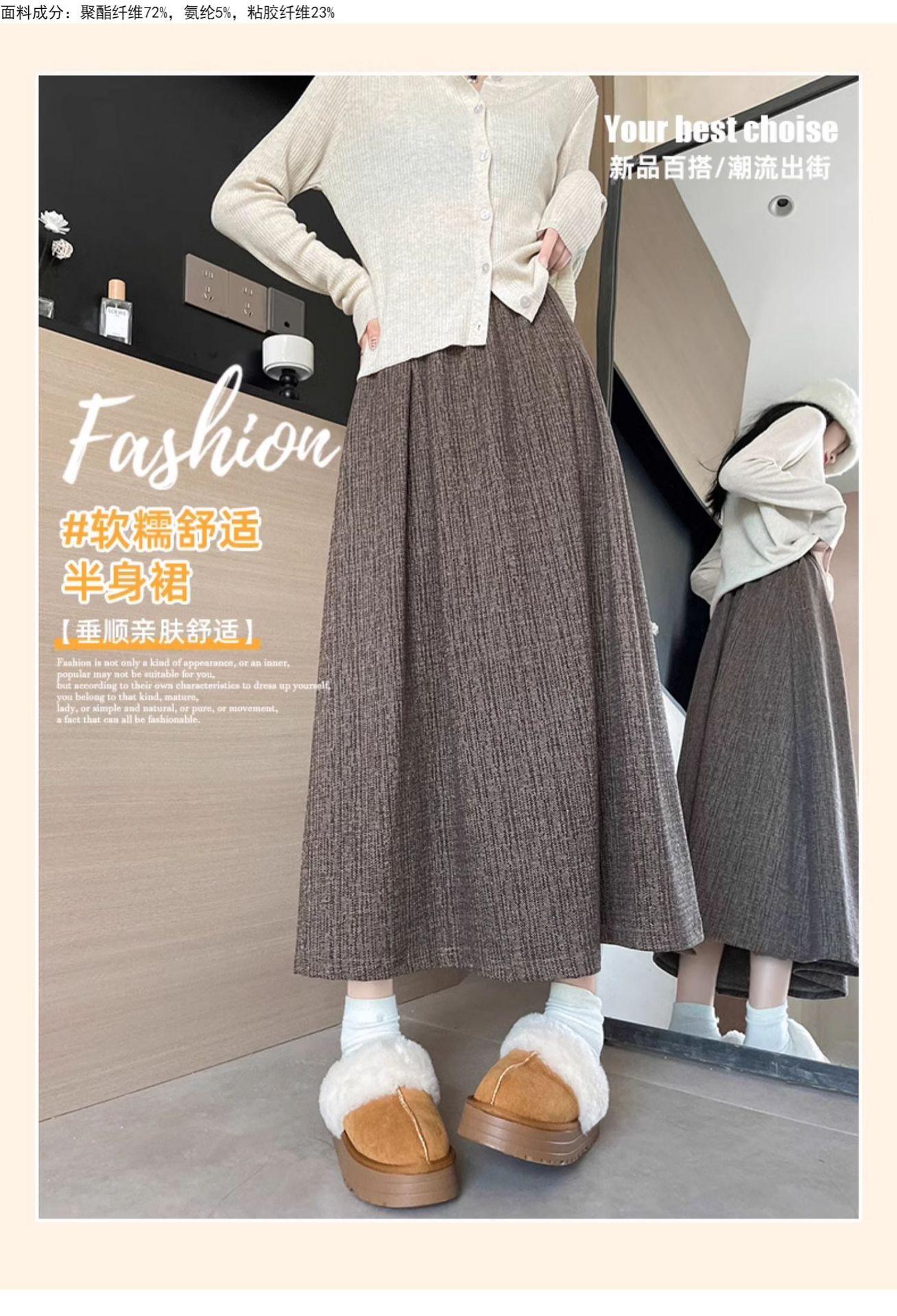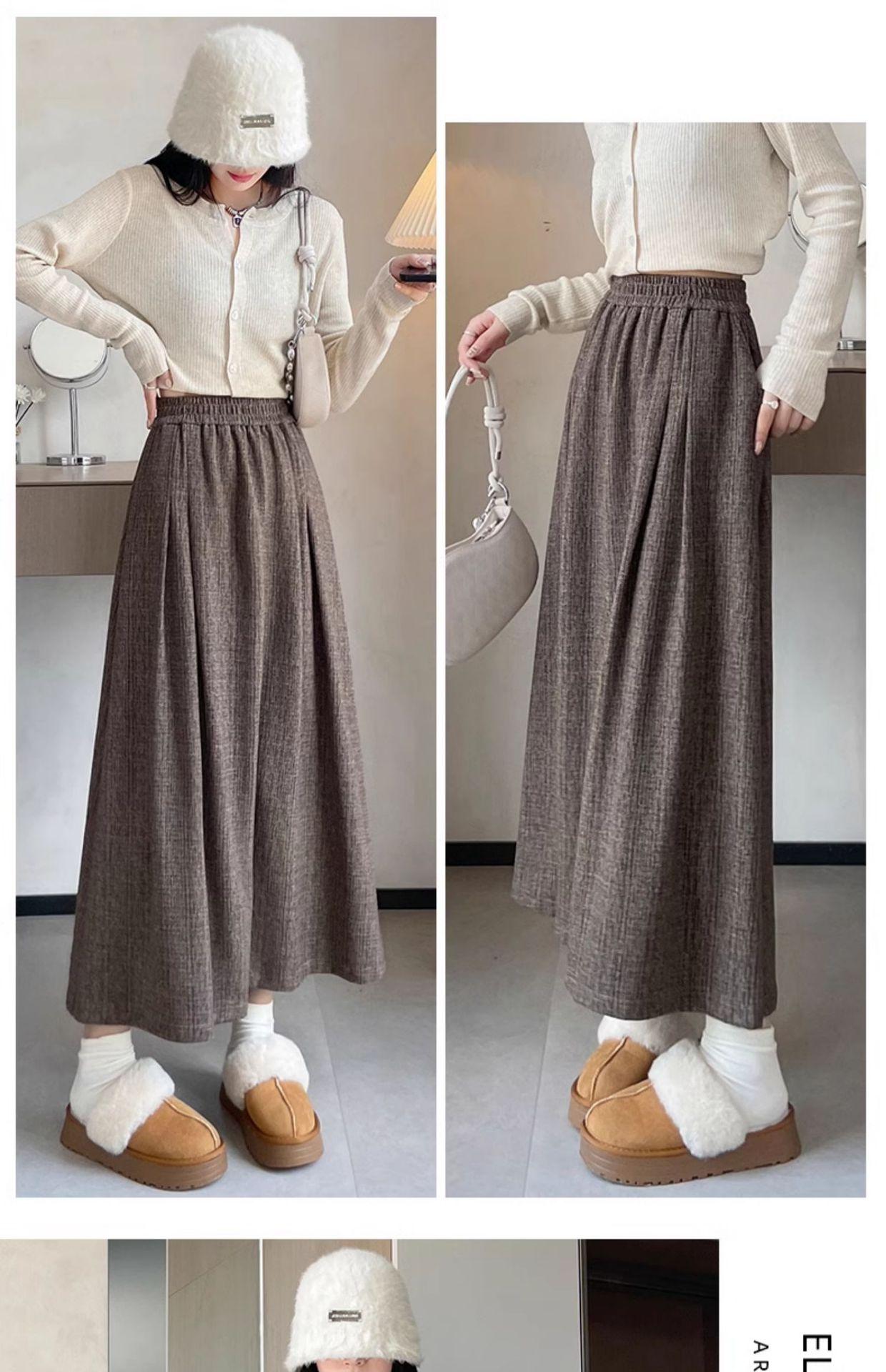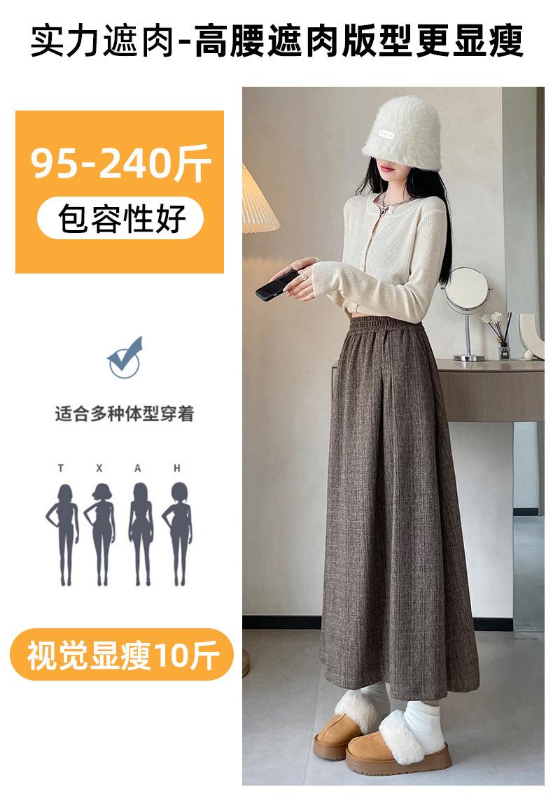 Falda paraguas plisada vintage en forma de A para mujer, nueva primavera y otoño 2024, falda con cintura elástica, talla grande, adelgazante, falda larga