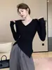 Camiseta de manga larga ajustada con cuello en V y hombros descubiertos para mujer, nueva camiseta de primavera y otoño de Spice Girls, color liso, combinable con todo.
