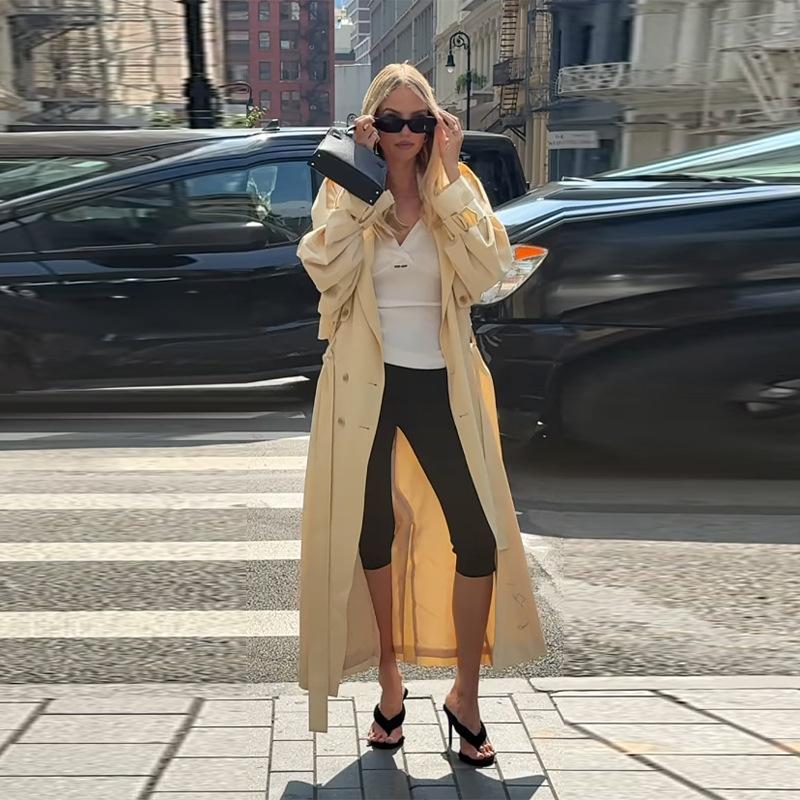 Abrigo Trench Largo Casual de Moda Americana Transfronteriza 2025 Otoño e Invierno para Mujer, Chaqueta Versátil