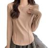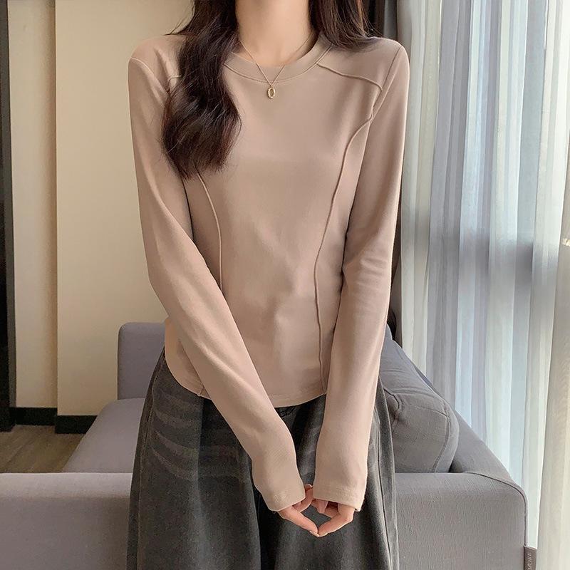 Camiseta Básica de Terciopelo Alemán de Manga Larga para Mujer 2025 Otoño e Invierno Nuevo Estilo Interior Corta Top de Estudiante Ajustada y Elegante Camiseta Cepillada