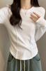 Camiseta básica blanca de manga larga para mujer para primavera, otoño e invierno, top corto de espiguilla con diseño, camiseta cepillada ajustada y a la moda