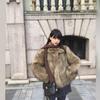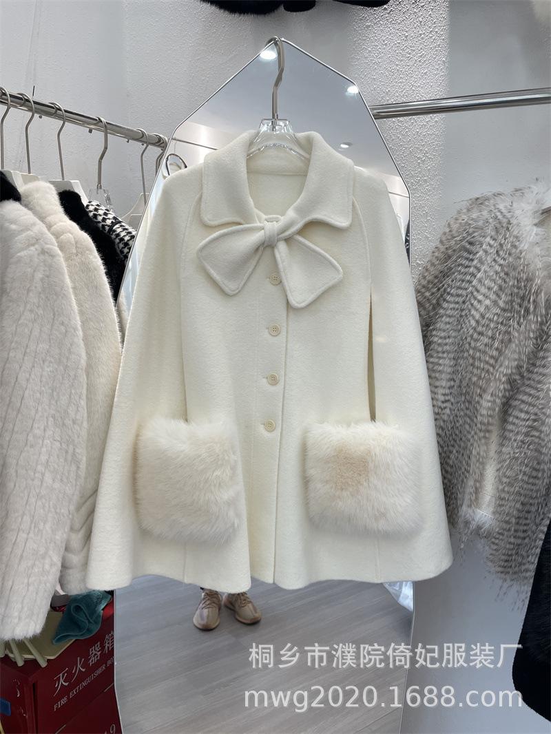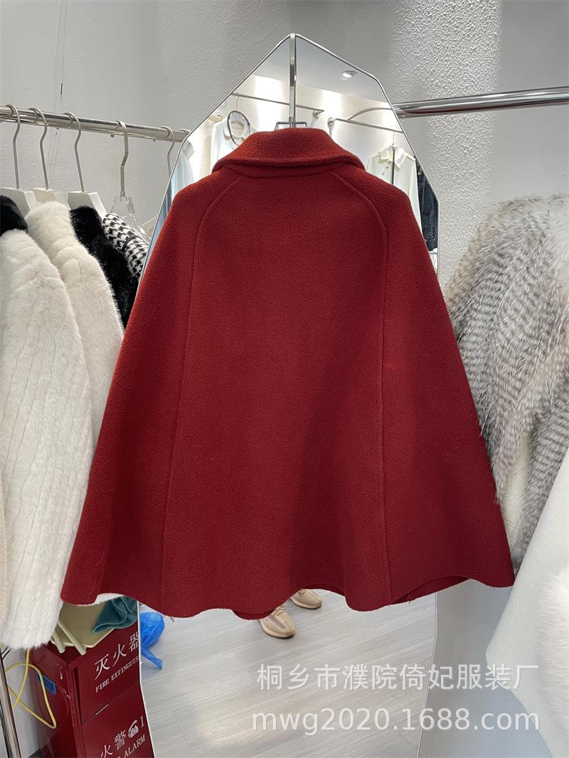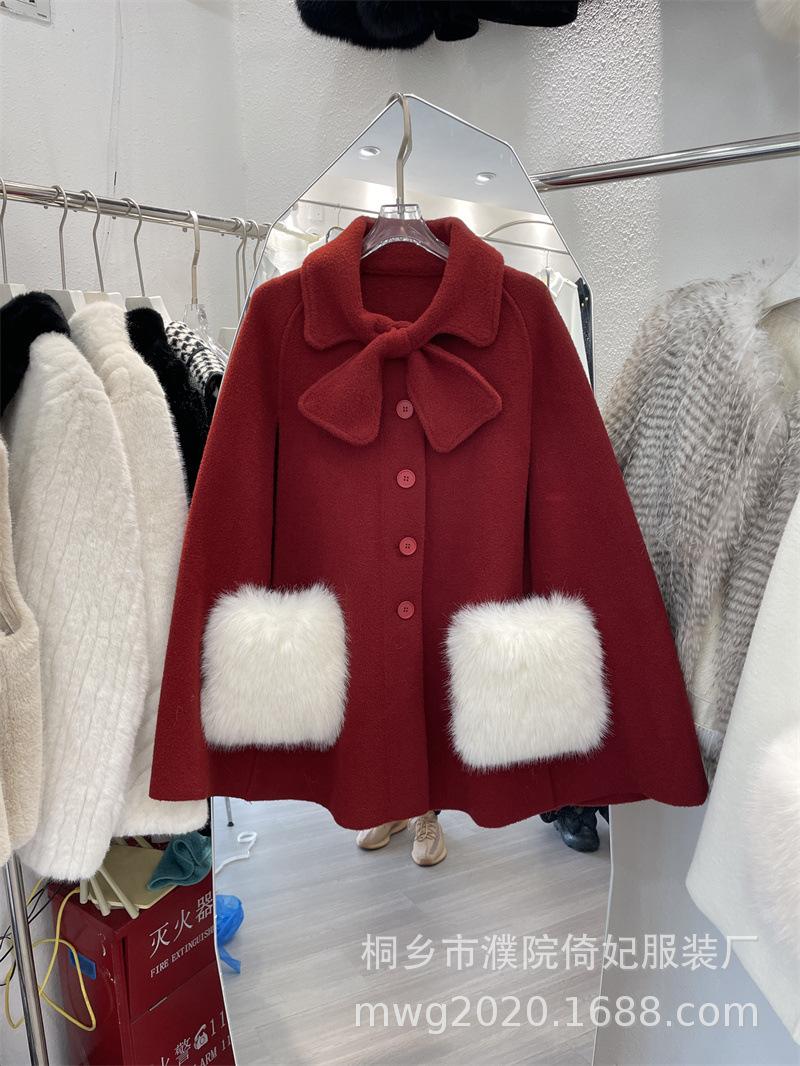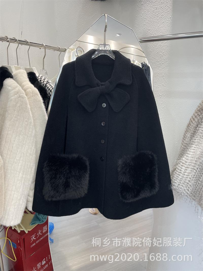 Capa de Lana Yamei Ropa Exterior para Hija Bicolor de Alta Gama Largo Medio Color Puro Ropa Exterior Capa sin Mangas Lazo