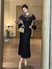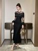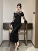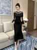 Vestido de cumpleaños nuevo para mujer, elegante, con encaje, mangas acampanadas, corte entallado, 51130
