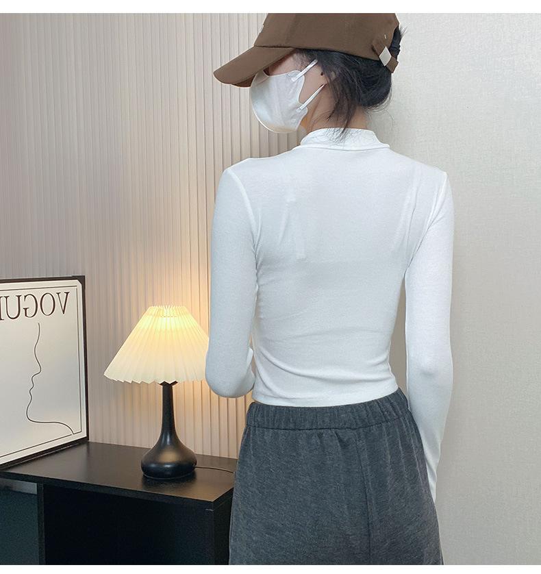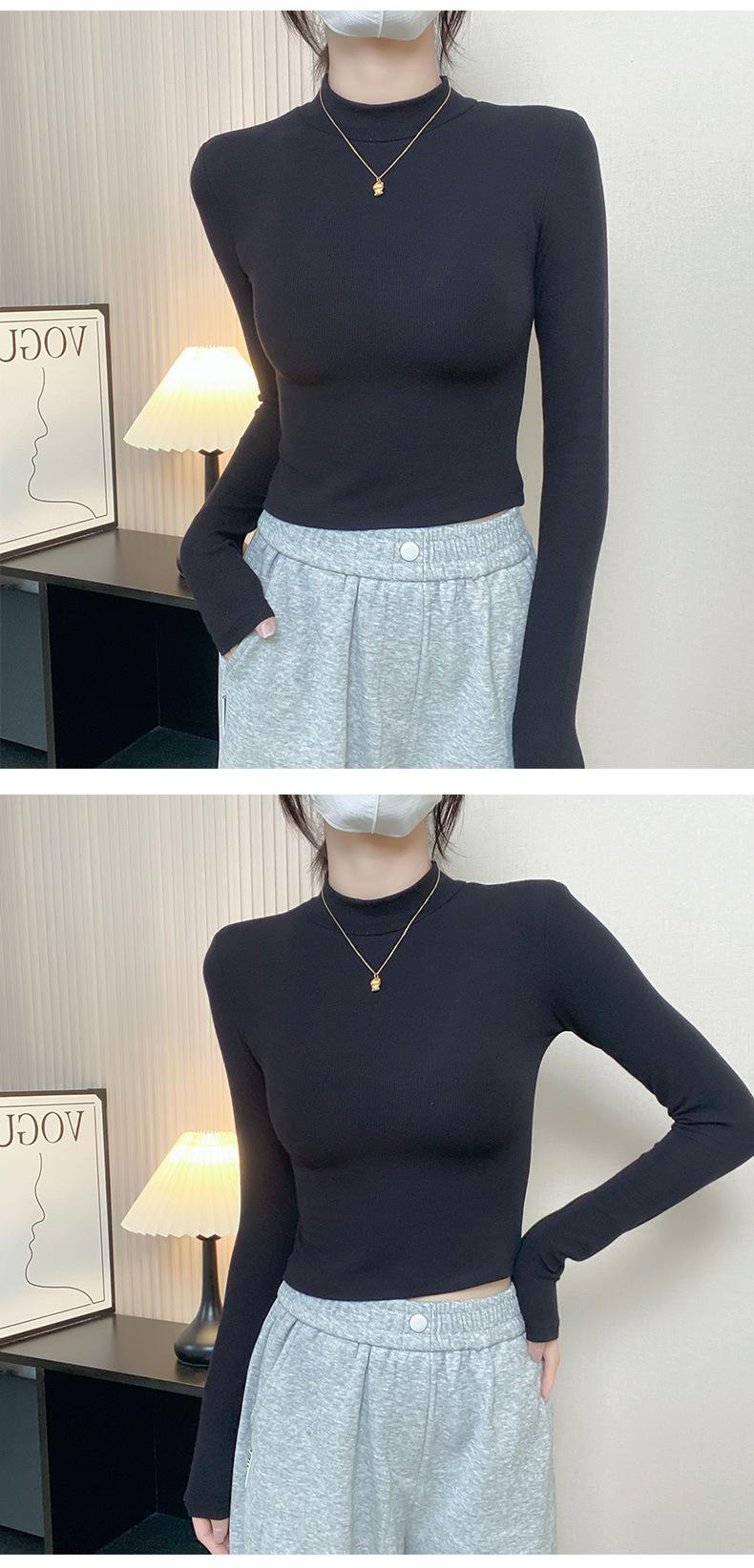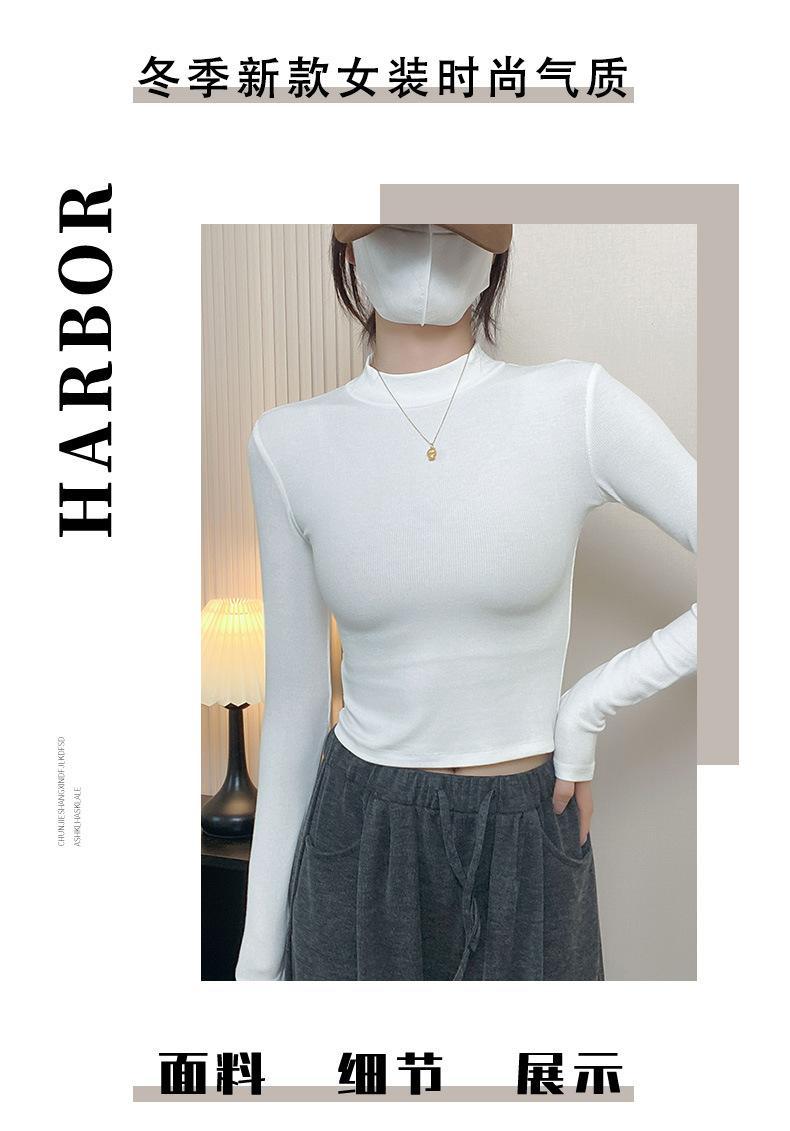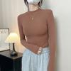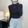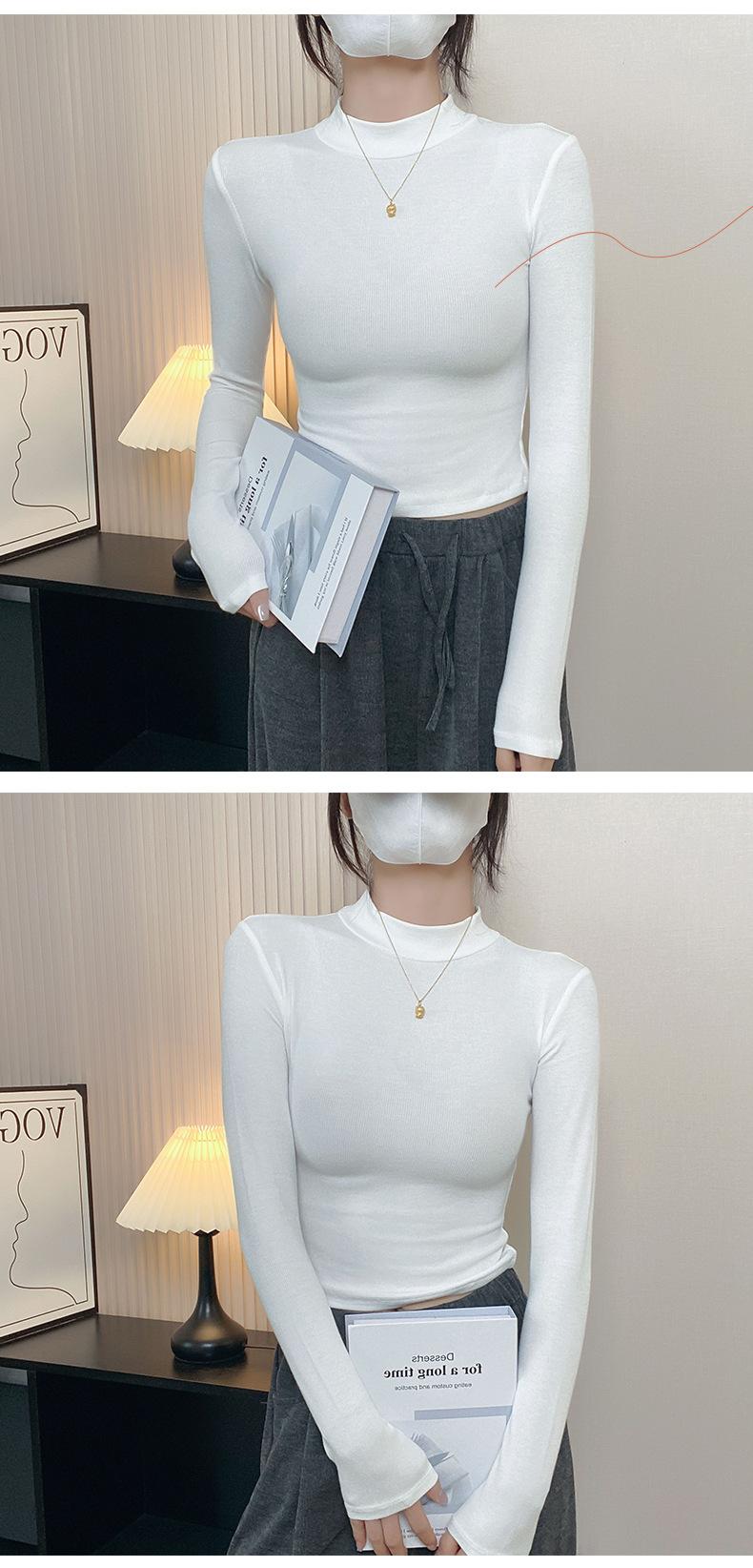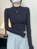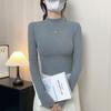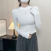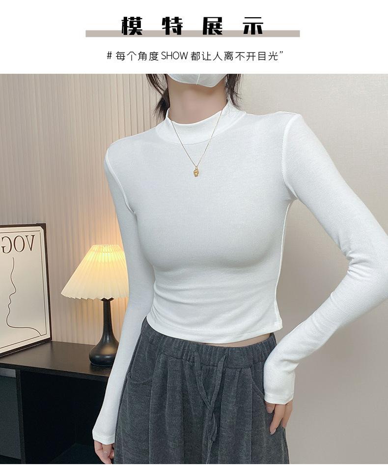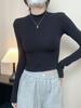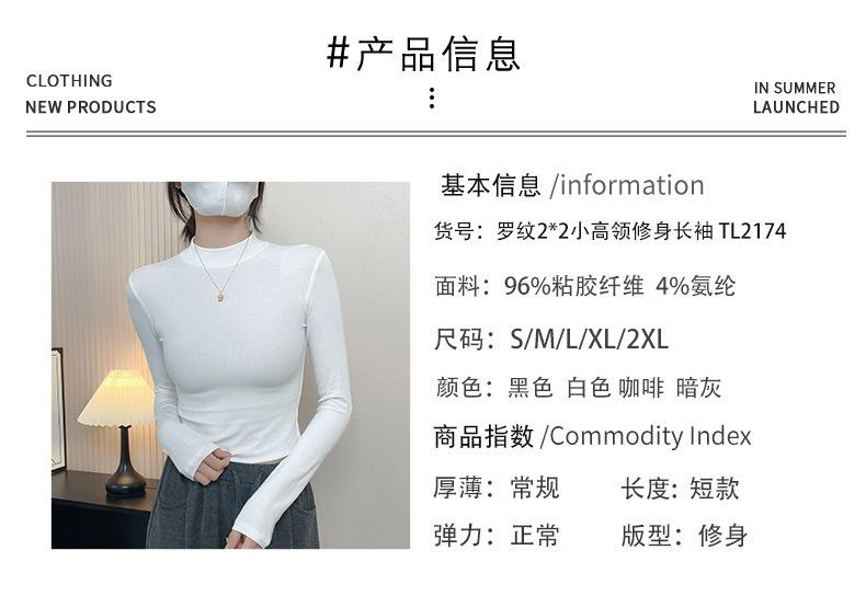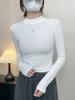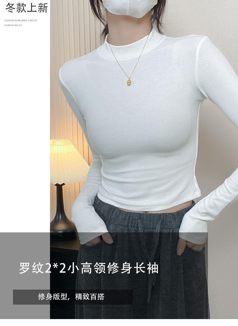 Camiseta básica blanca de cuello alto, manga larga y corte ajustado para mujer, nueva y versátil camiseta básica sencilla de corte ajustado para otoño e invierno