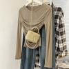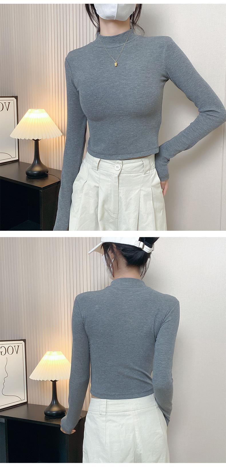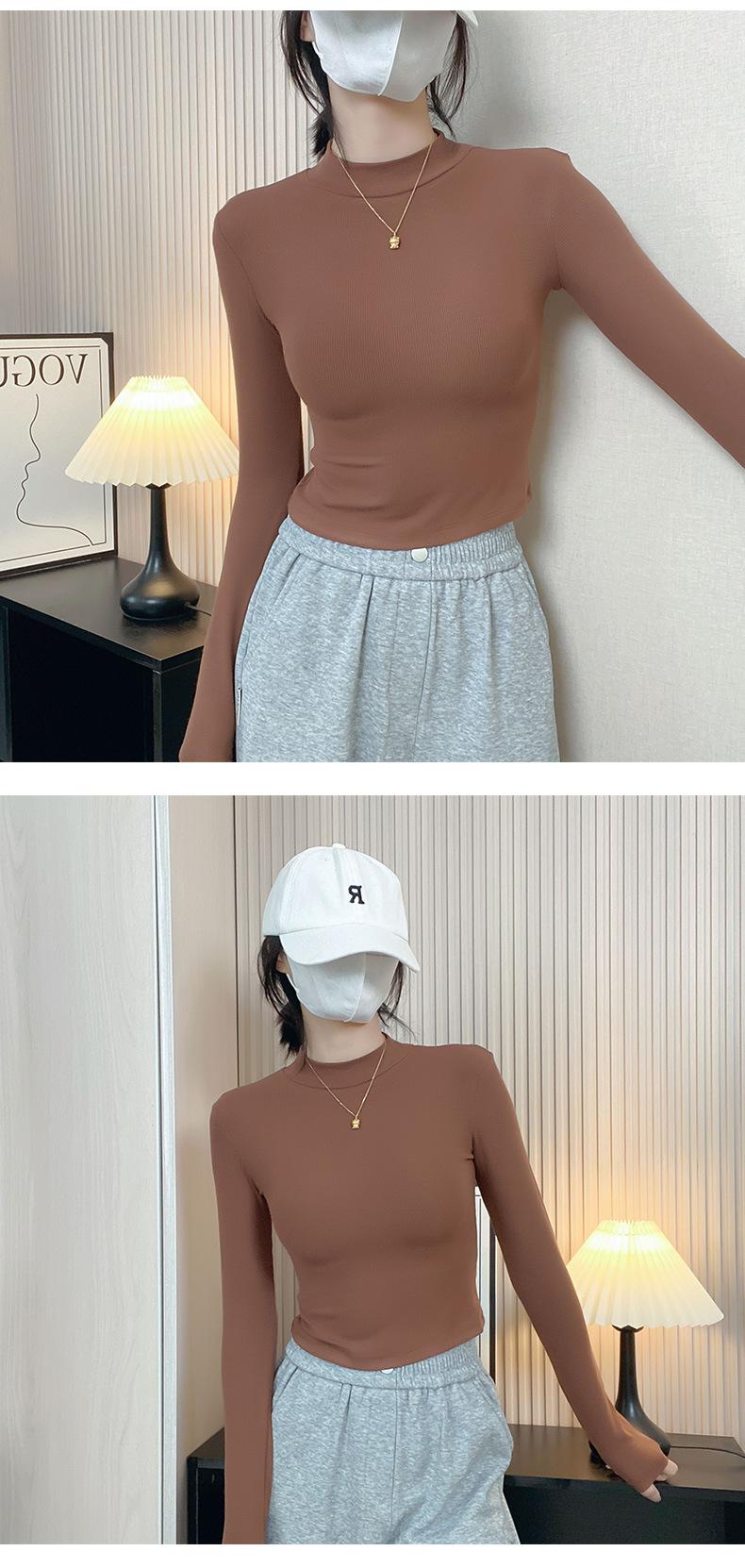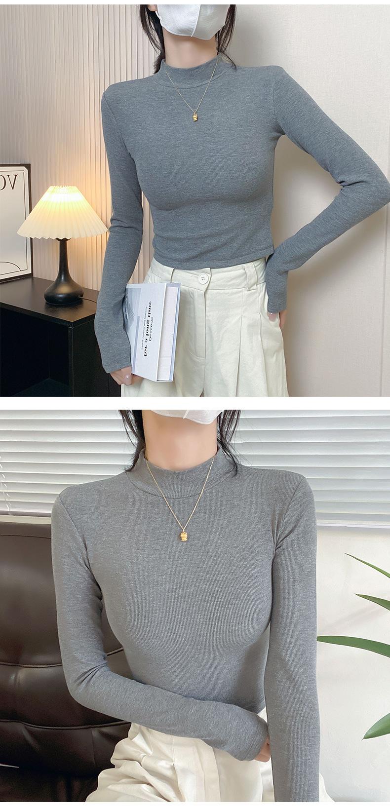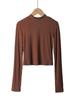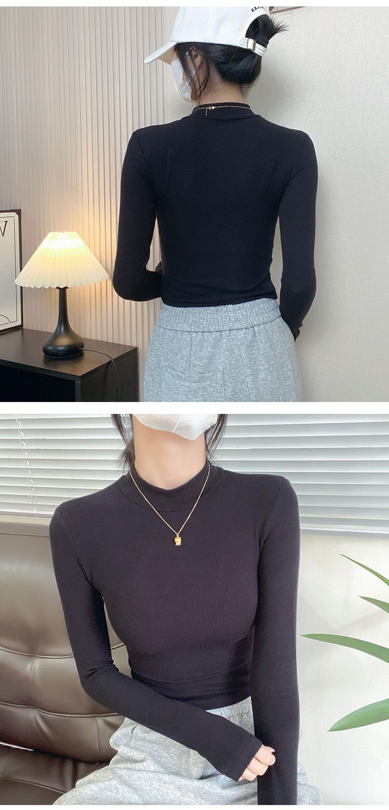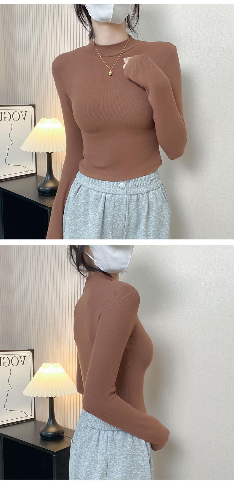 Camiseta básica blanca de cuello alto, manga larga y corte ajustado para mujer, nueva y versátil camiseta básica sencilla de corte ajustado para otoño e invierno