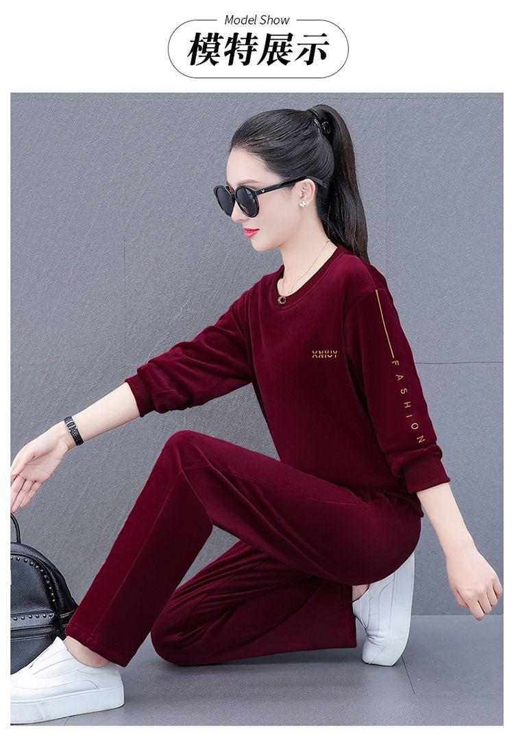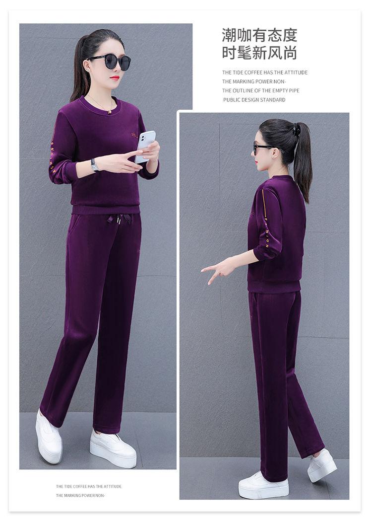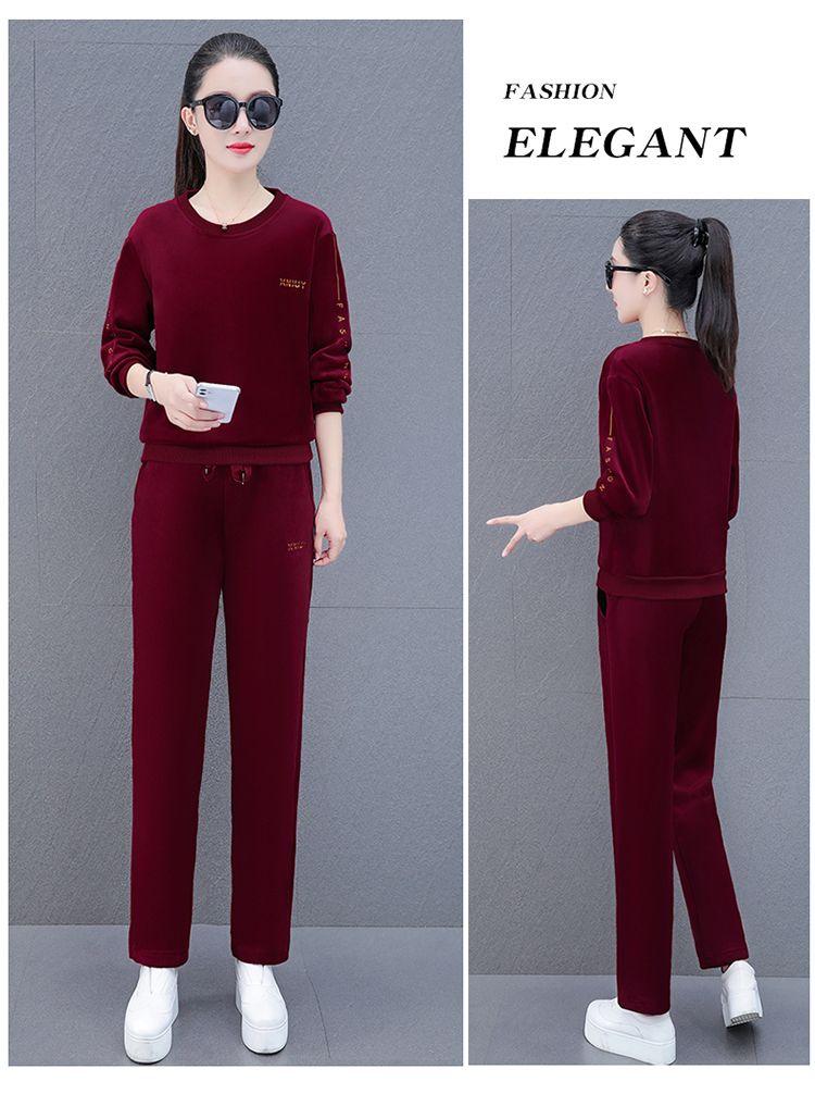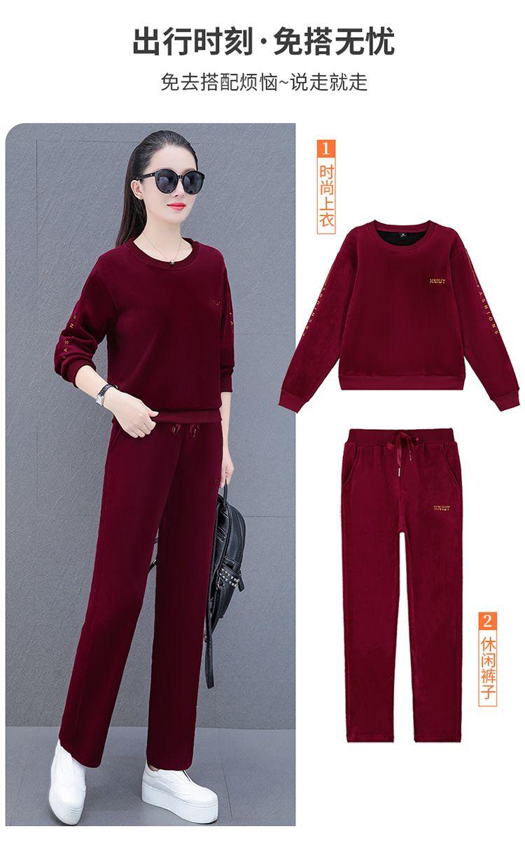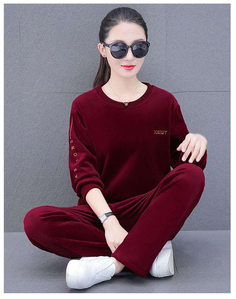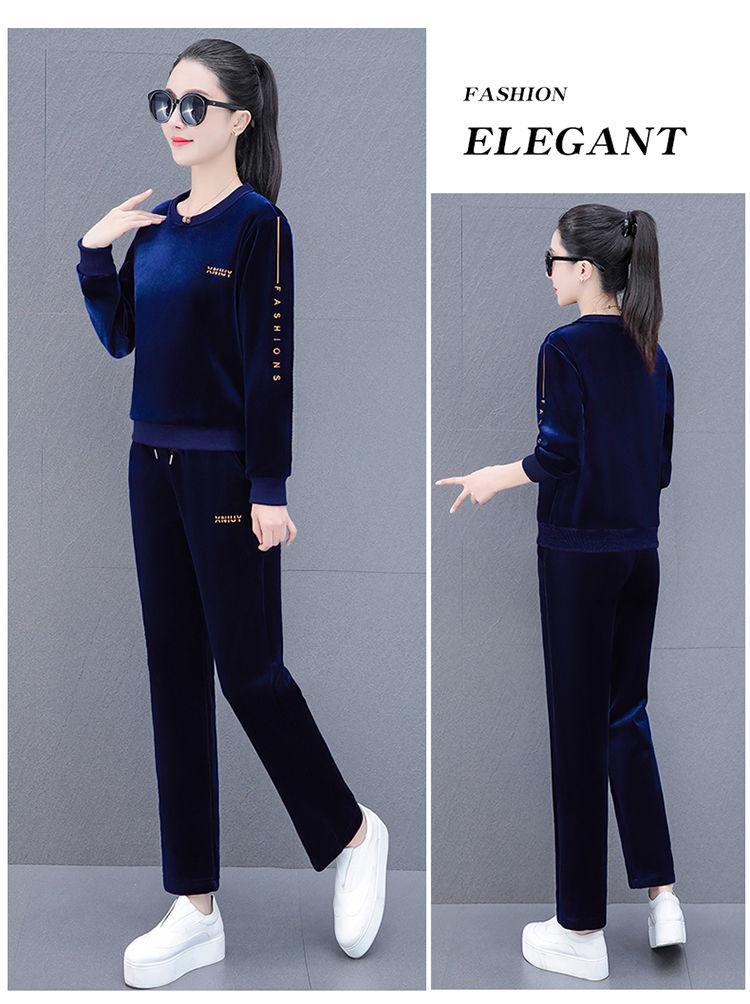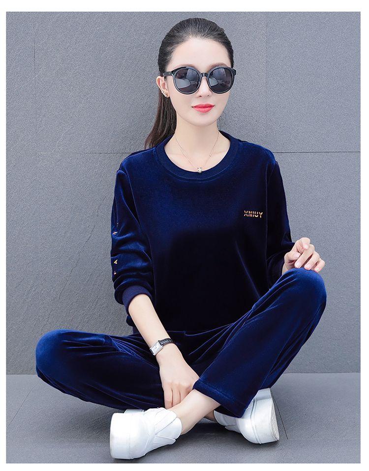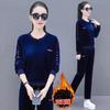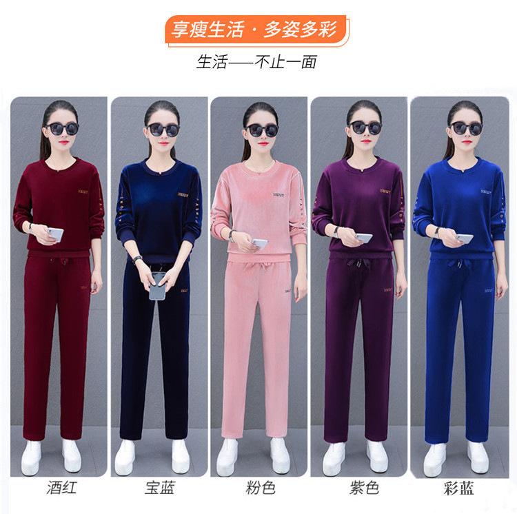 Traje de cuello redondo de terciopelo dorado para mujer 2023 Primavera y Otoño Nuevo Deportivo para mujer Traje de dos piezas Vestido para madre talla grande Suéter de moda