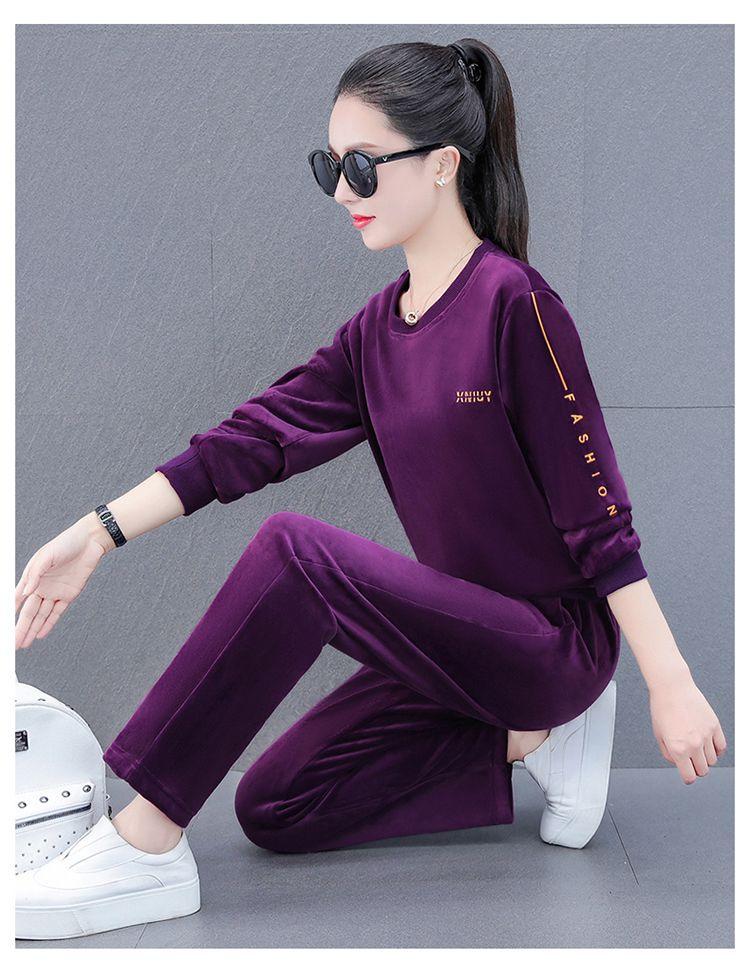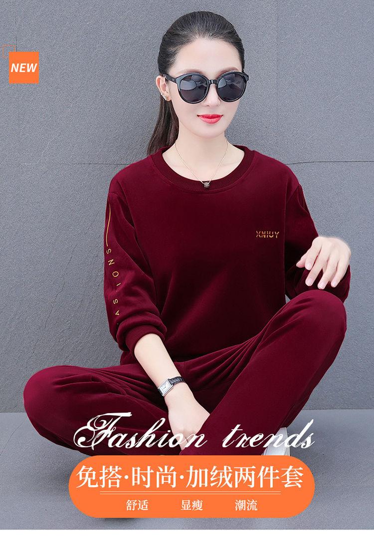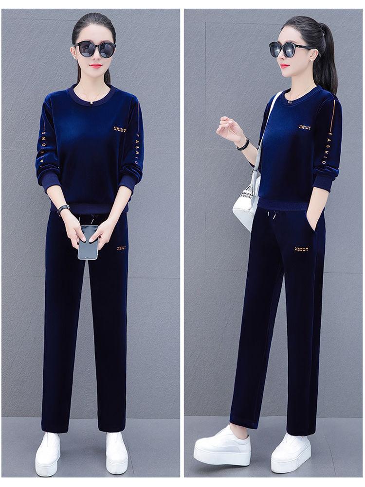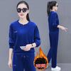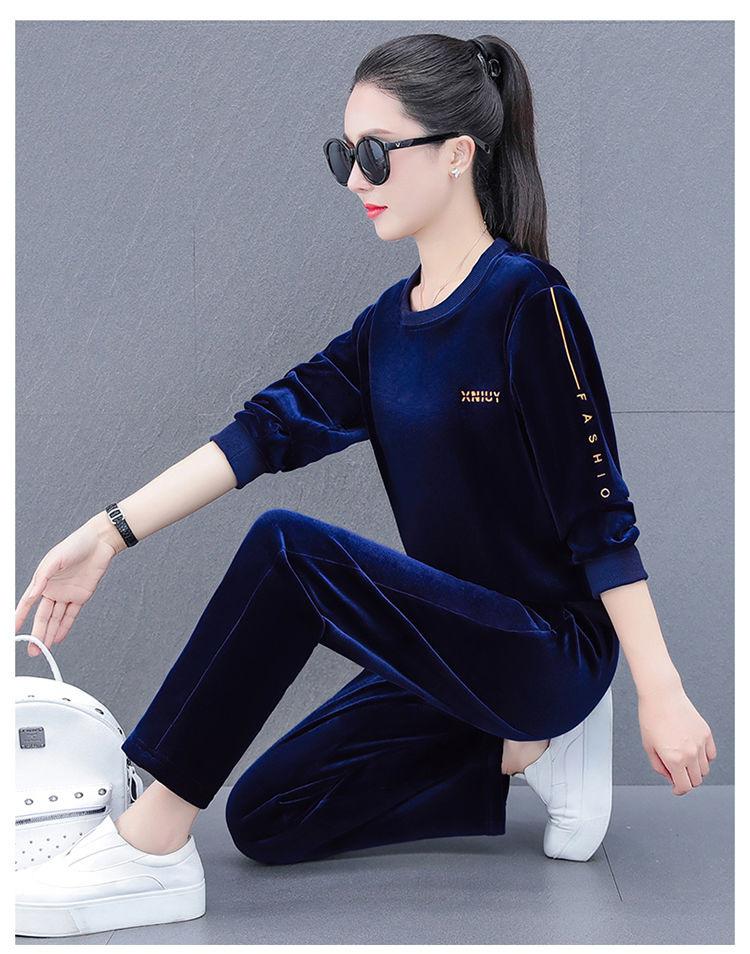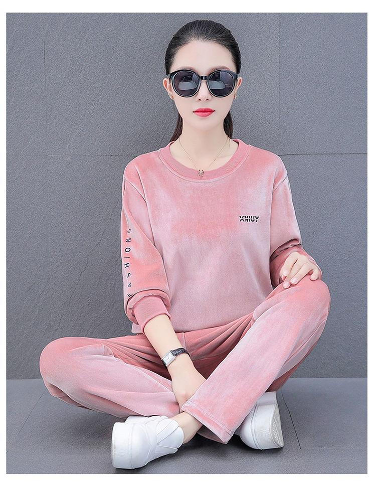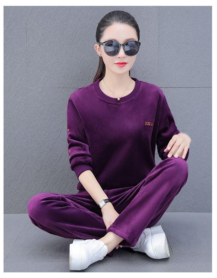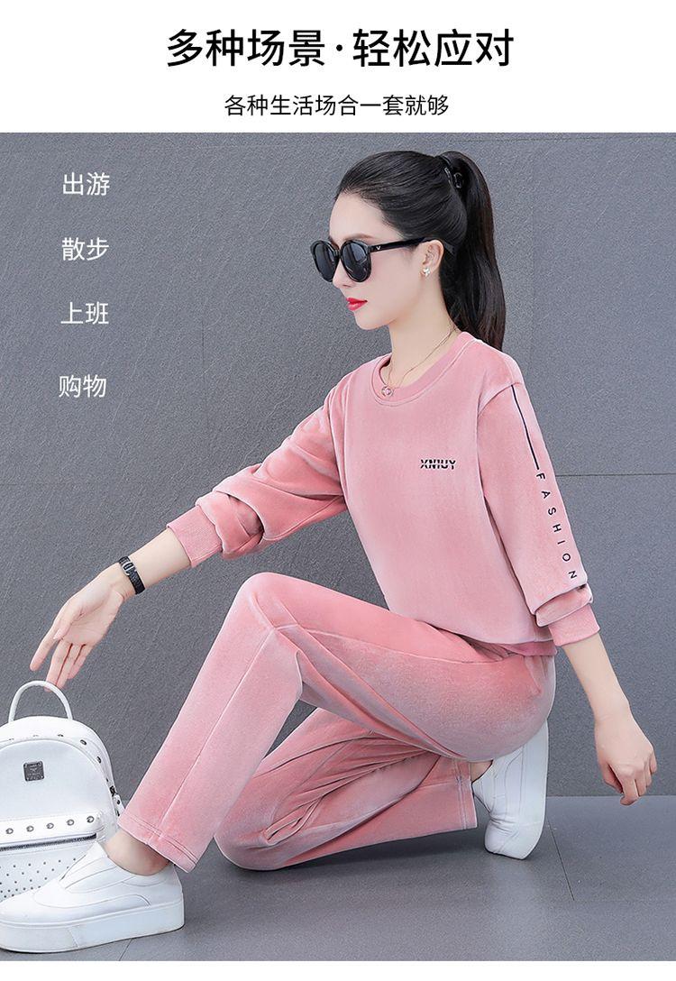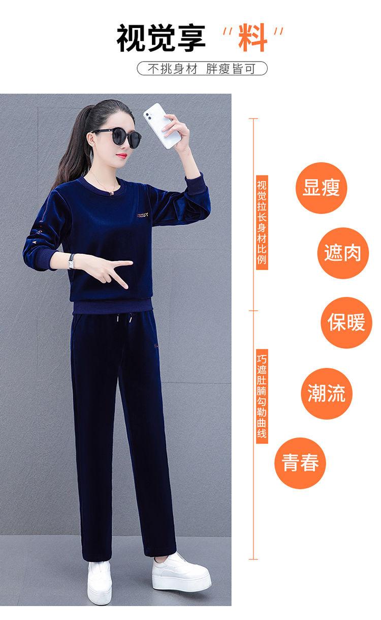 Traje de cuello redondo de terciopelo dorado para mujer 2023 Primavera y Otoño Nuevo Deportivo para mujer Traje de dos piezas Vestido para madre talla grande Suéter de moda