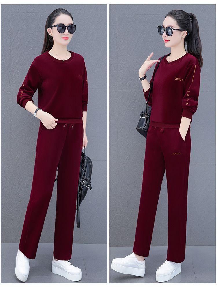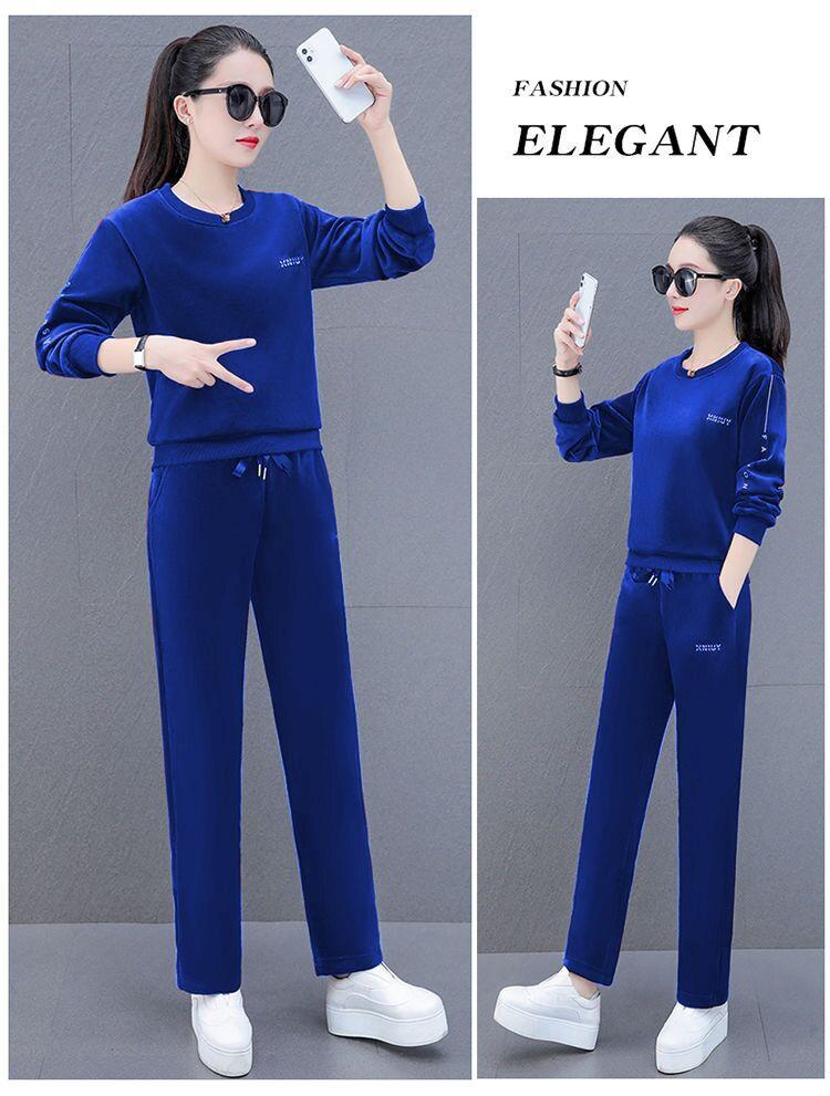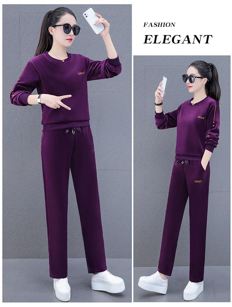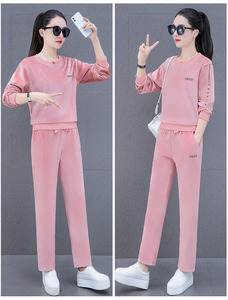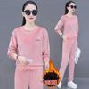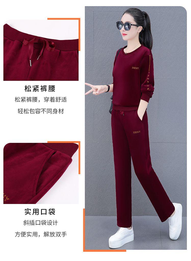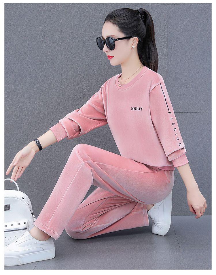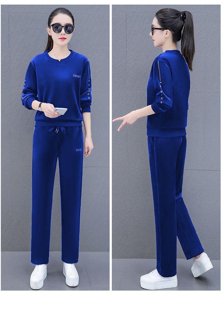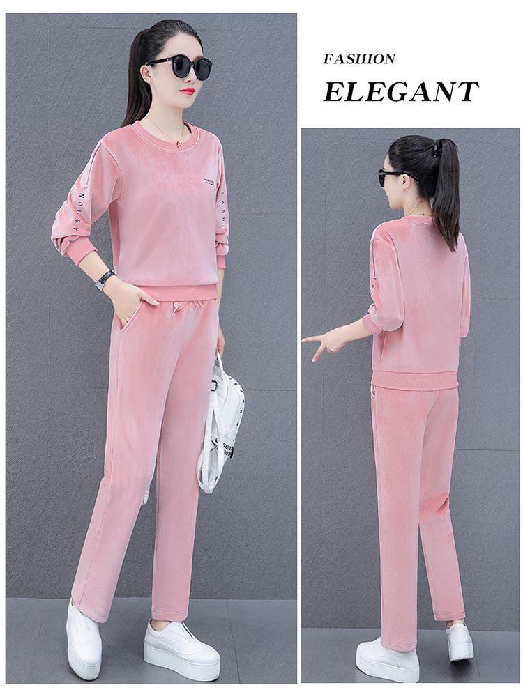 Traje de cuello redondo de terciopelo dorado para mujer 2023 Primavera y Otoño Nuevo Deportivo para mujer Traje de dos piezas Vestido para madre talla grande Suéter de moda