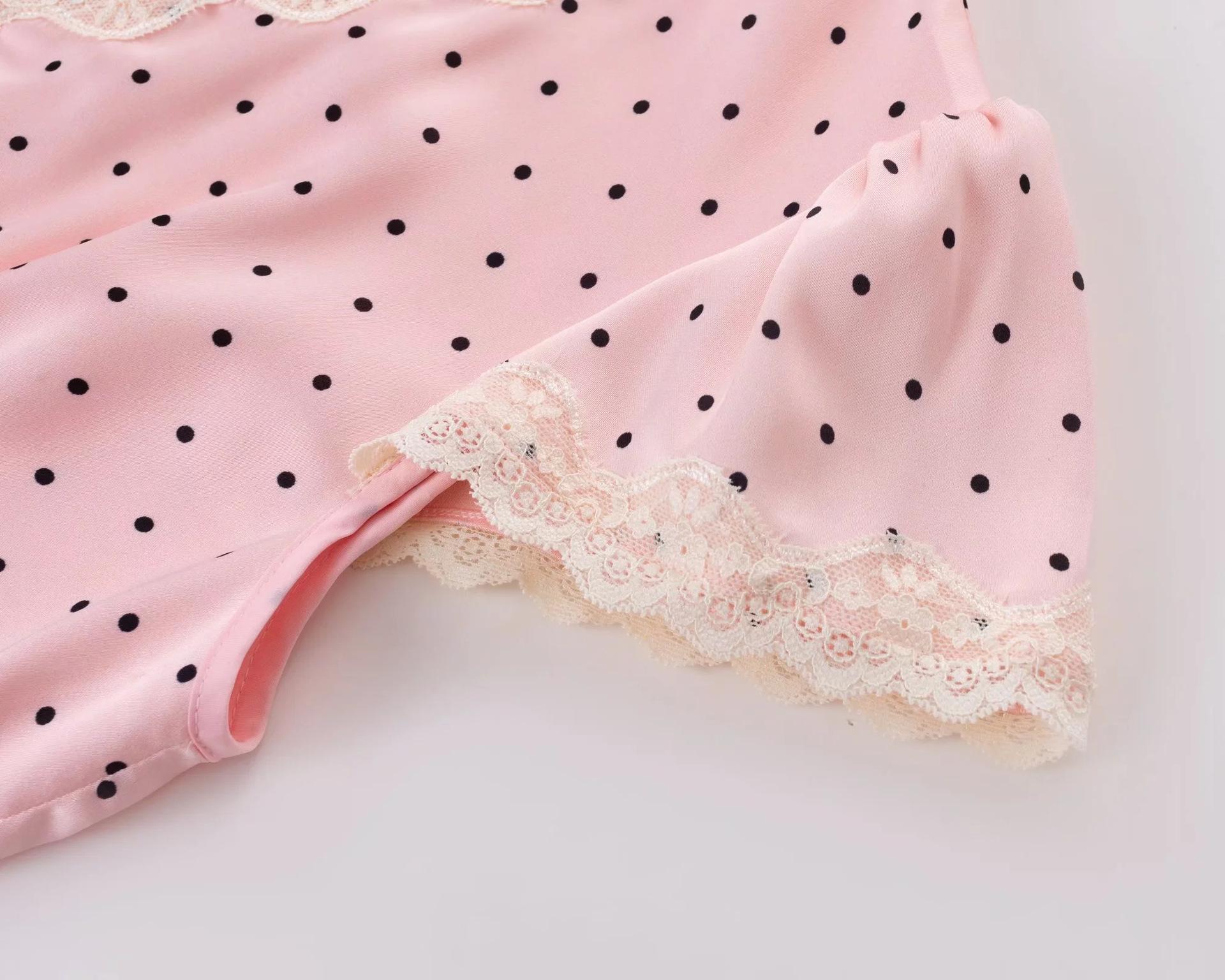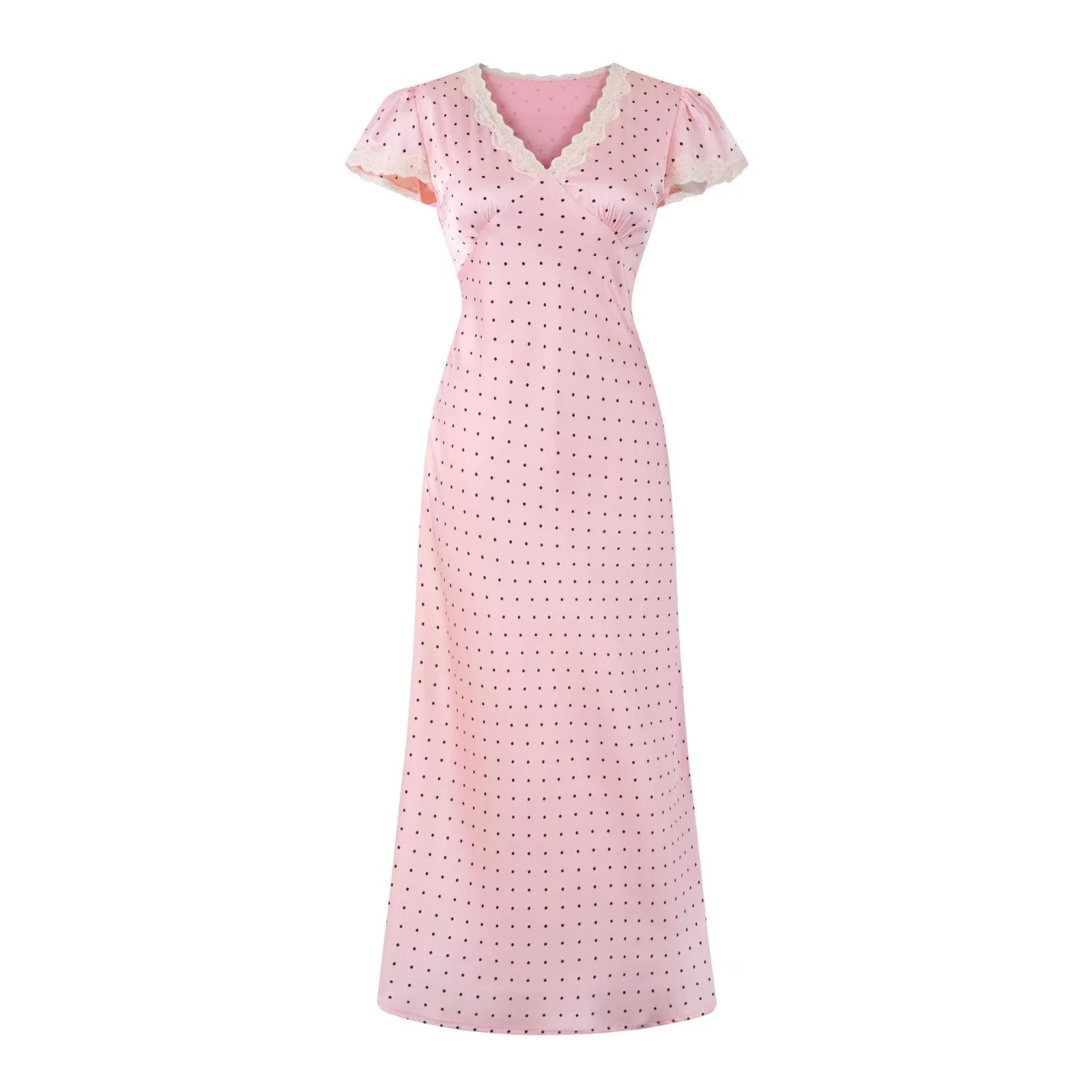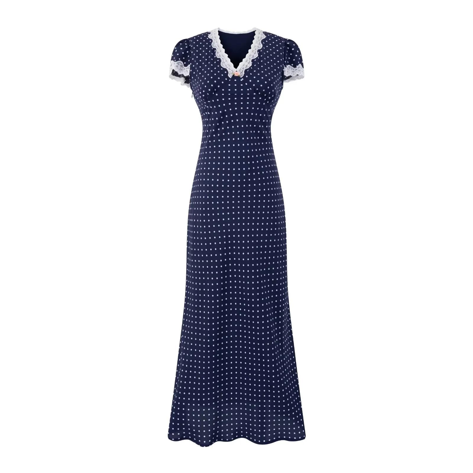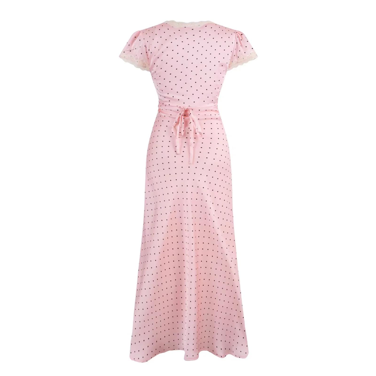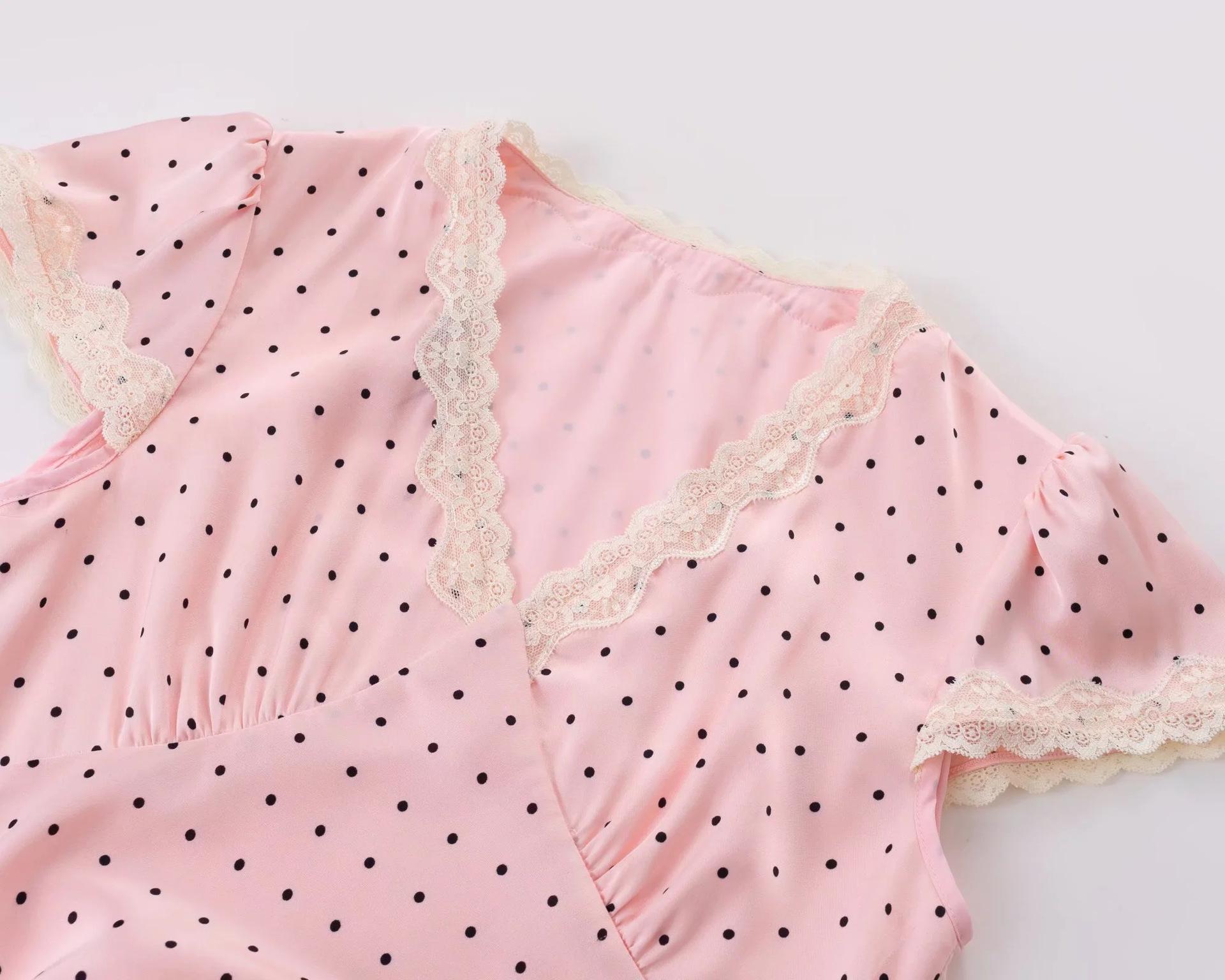 Vestido de verano 2025 con cuello en V, largo medio, estilo francés, con encaje y lunares, adelgazante, para vacaciones, ropa de mujer