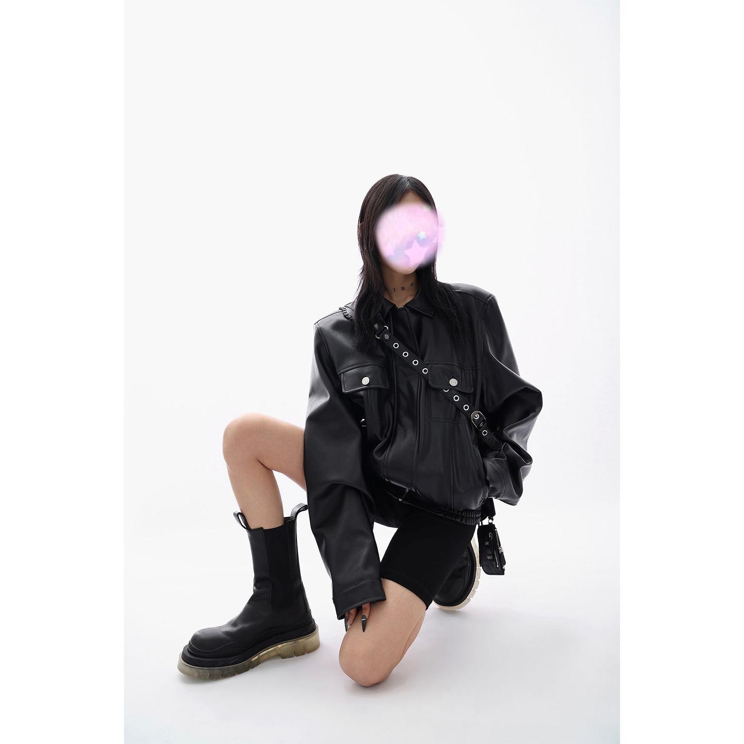 2025 Elegante Otoño Nueva Moda Texto Corto Joker Pequeño Cuero Mujer High Street Chaqueta de Cuero Abrigo Tendencia