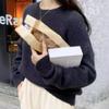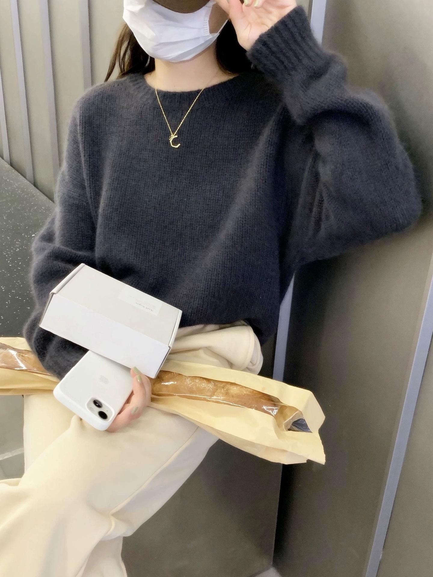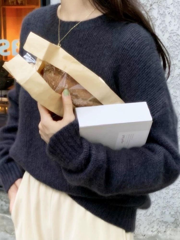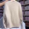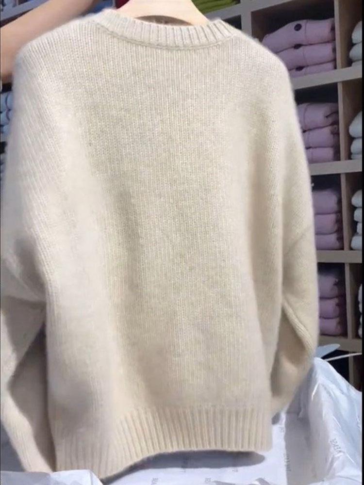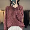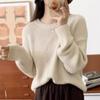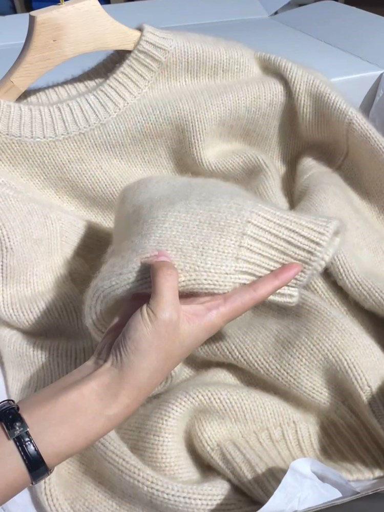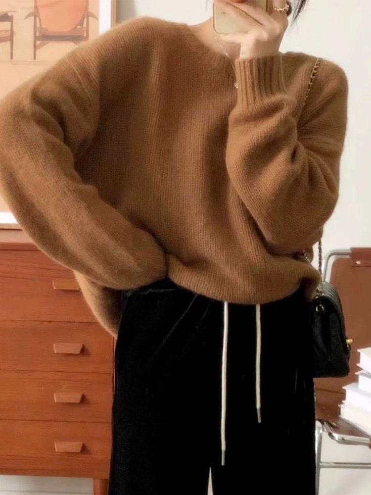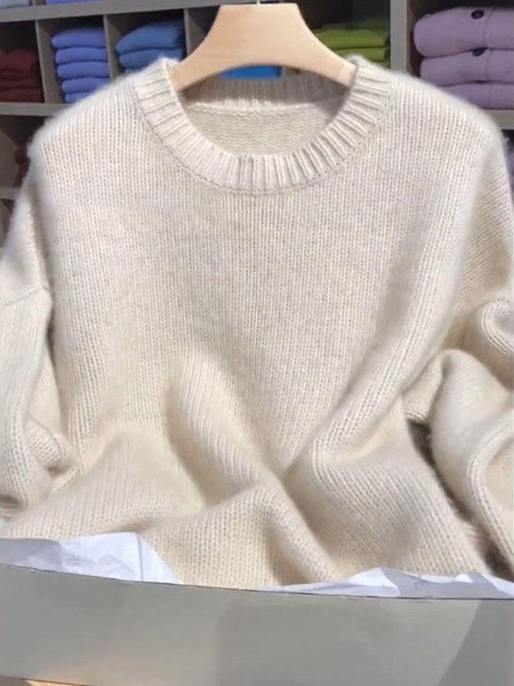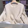 Suéter europeo de cuello redondo 100% lana pura para mujer, suelto, grueso, para otoño e invierno, con base de punto interior.