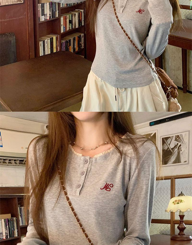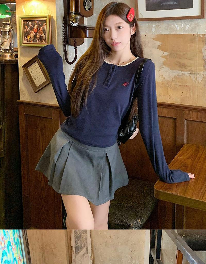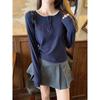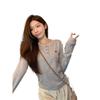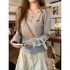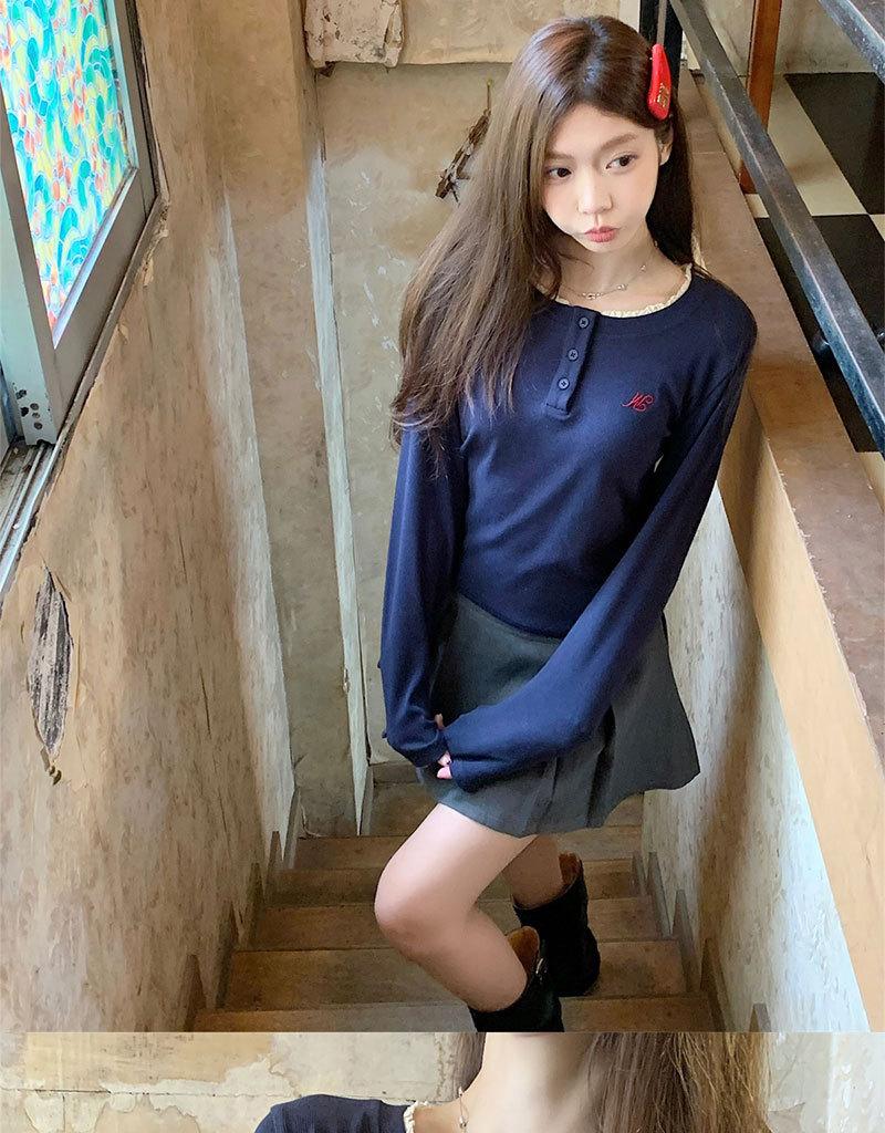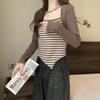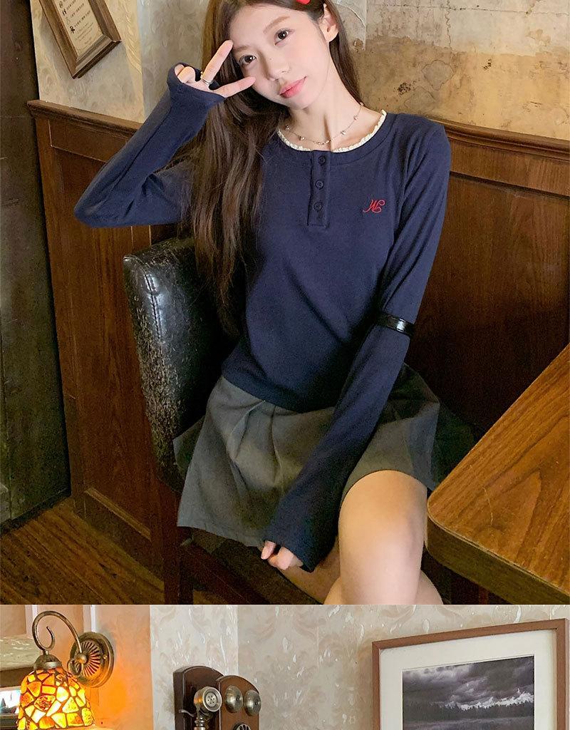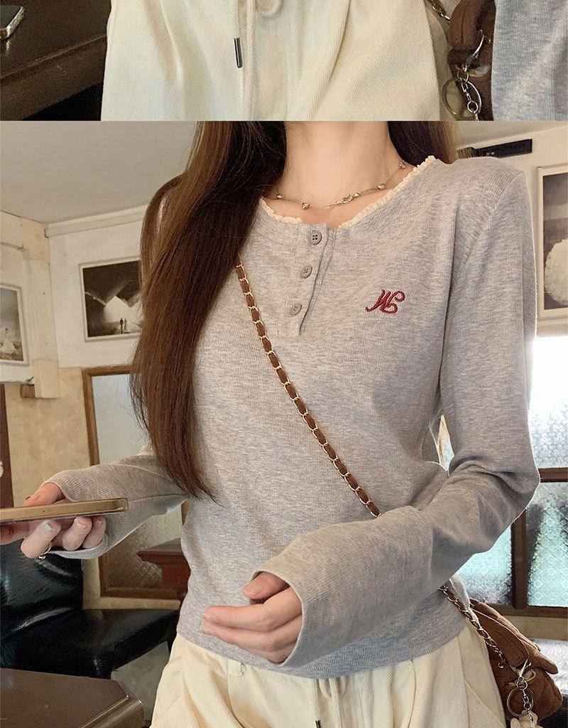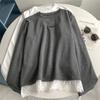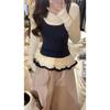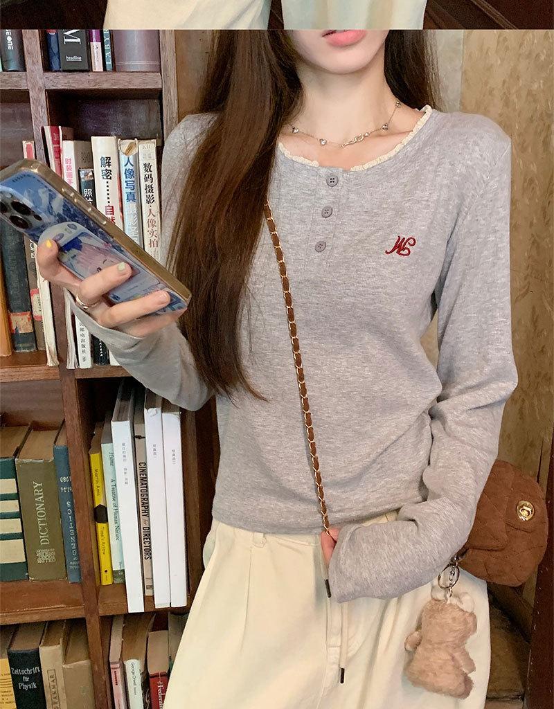 Otoño Estilo Coreano Dulce Encaje Diseño de Empalme Camiseta Falsa de Dos Piezas de Manga Larga