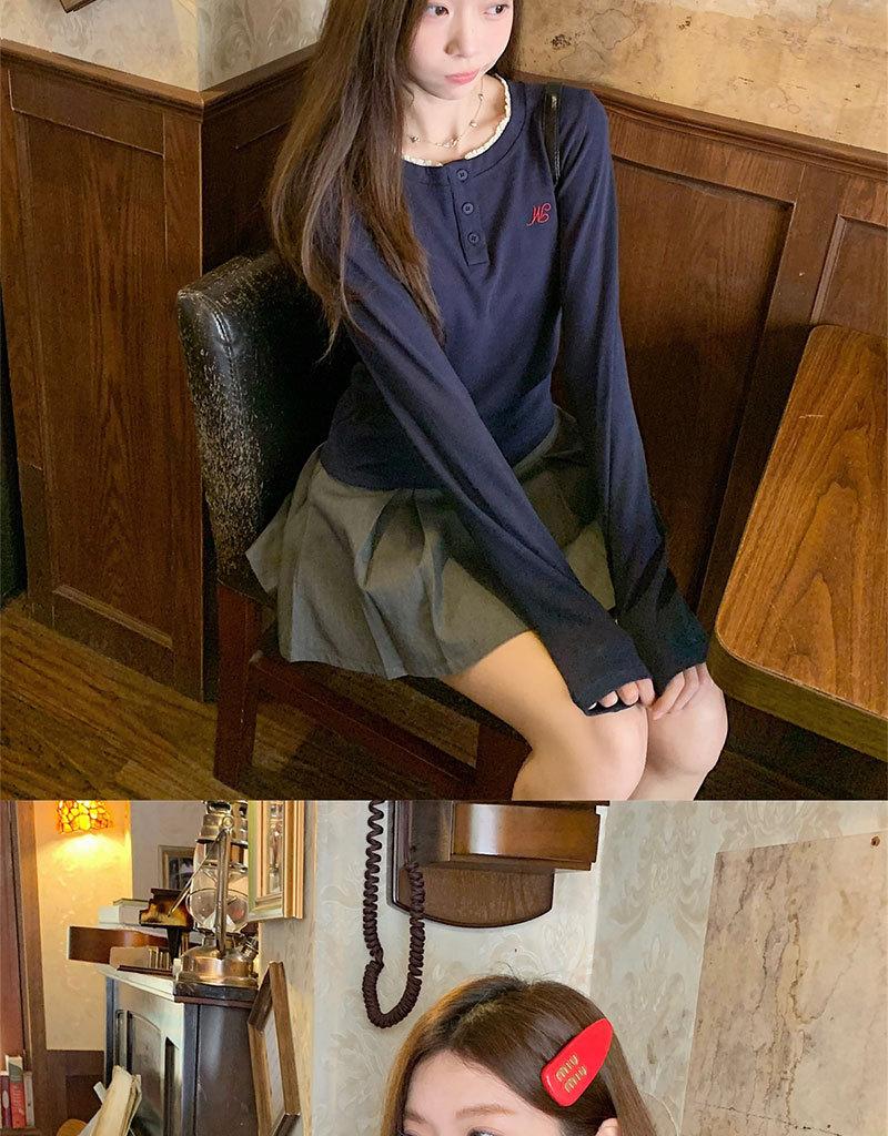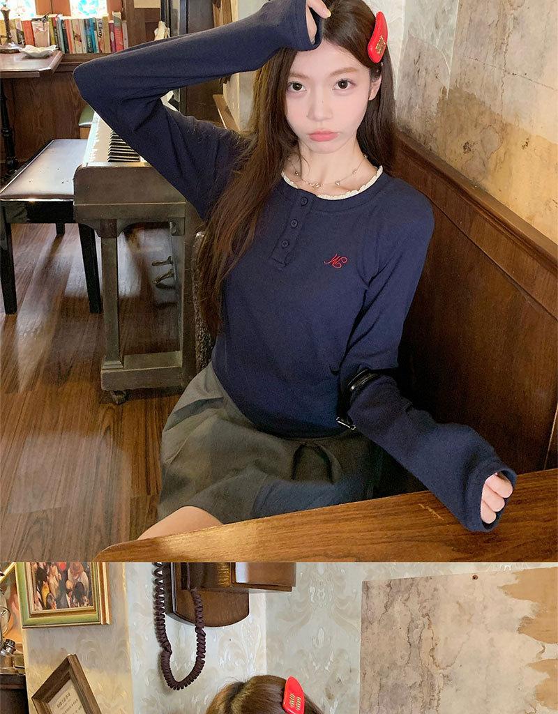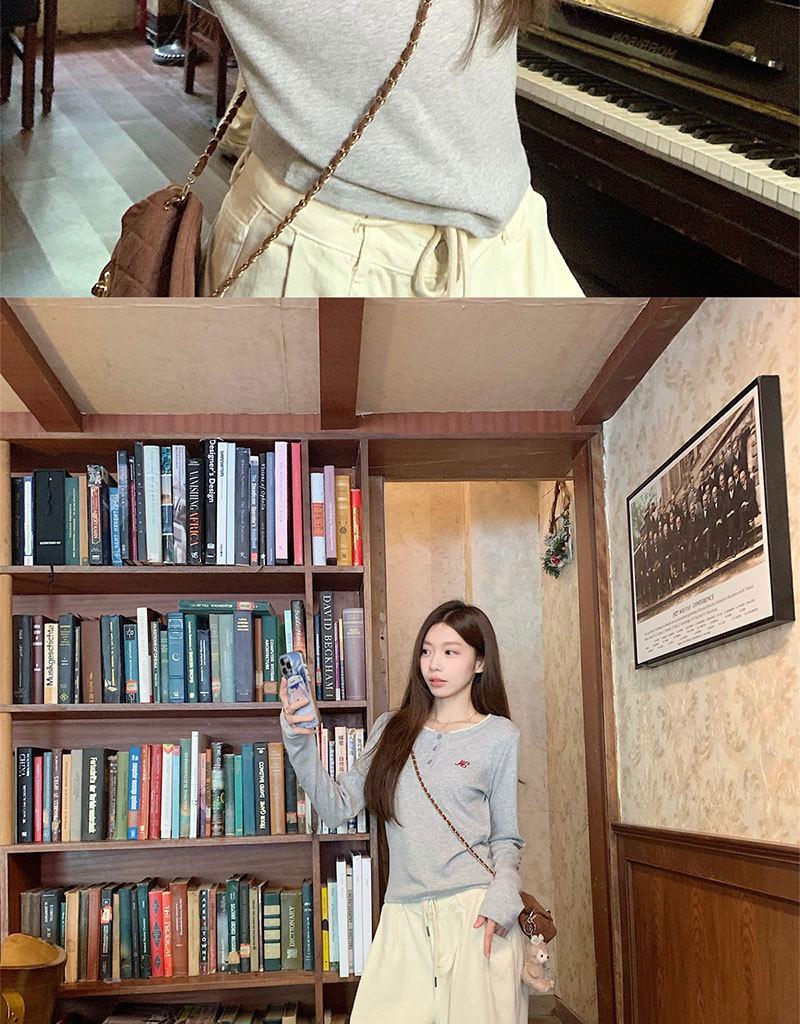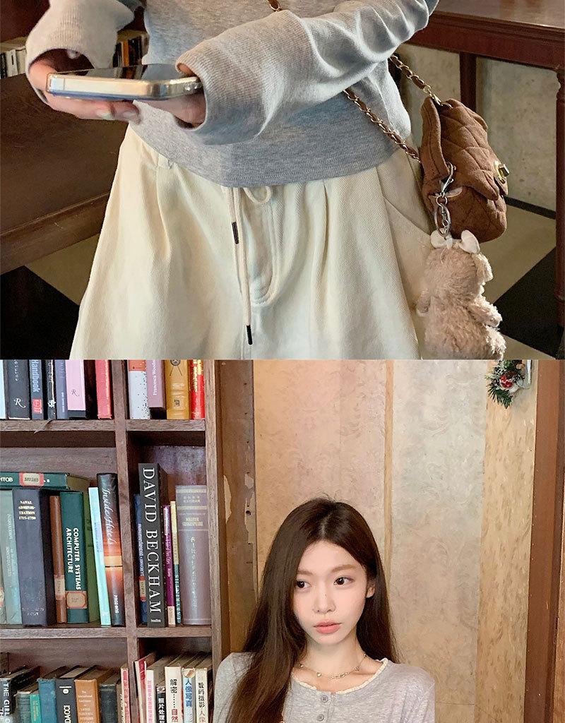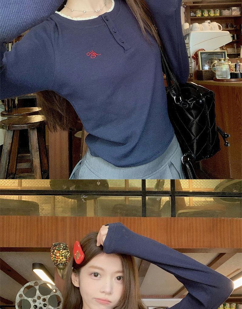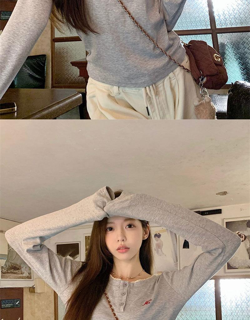 Otoño Estilo Coreano Dulce Encaje Diseño de Empalme Camiseta Falsa de Dos Piezas de Manga Larga
