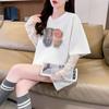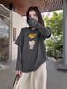 Camiseta de manga corta estilo retro chic americano de algodón puro para mujer en verano, estilo coreano, holgada, de marca de moda, de media manga, con estampado 3D