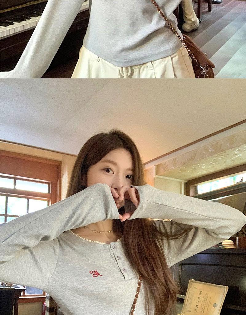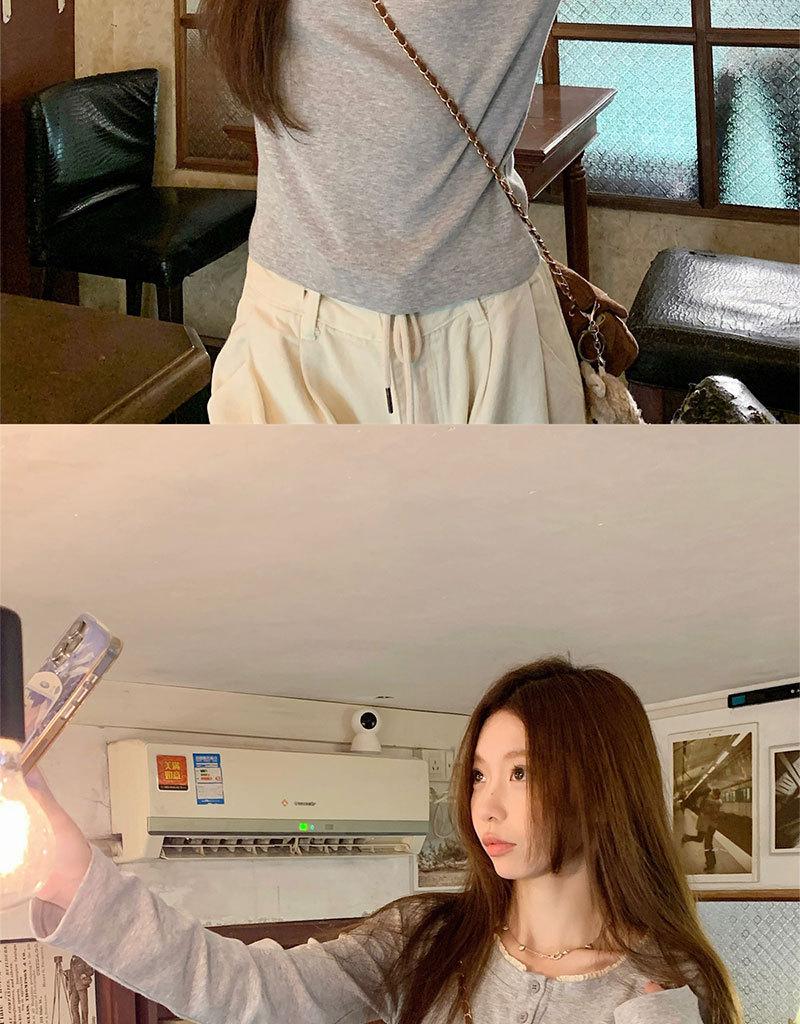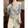 Camiseta de manga corta con cuello en U, corte entallado y hombros rectos para mujer, diseño de botones de verano, estilo corto, talla pequeña, de algodón puro con hilo.