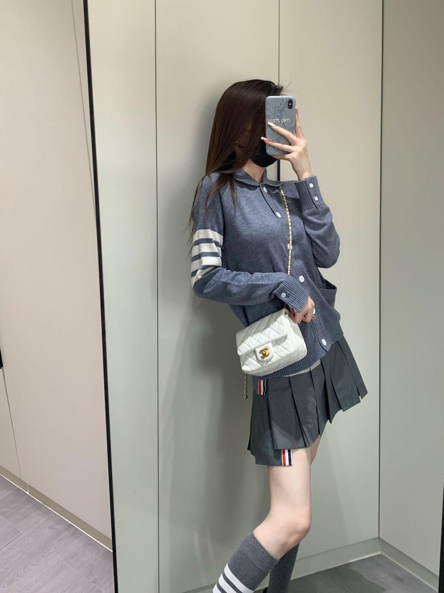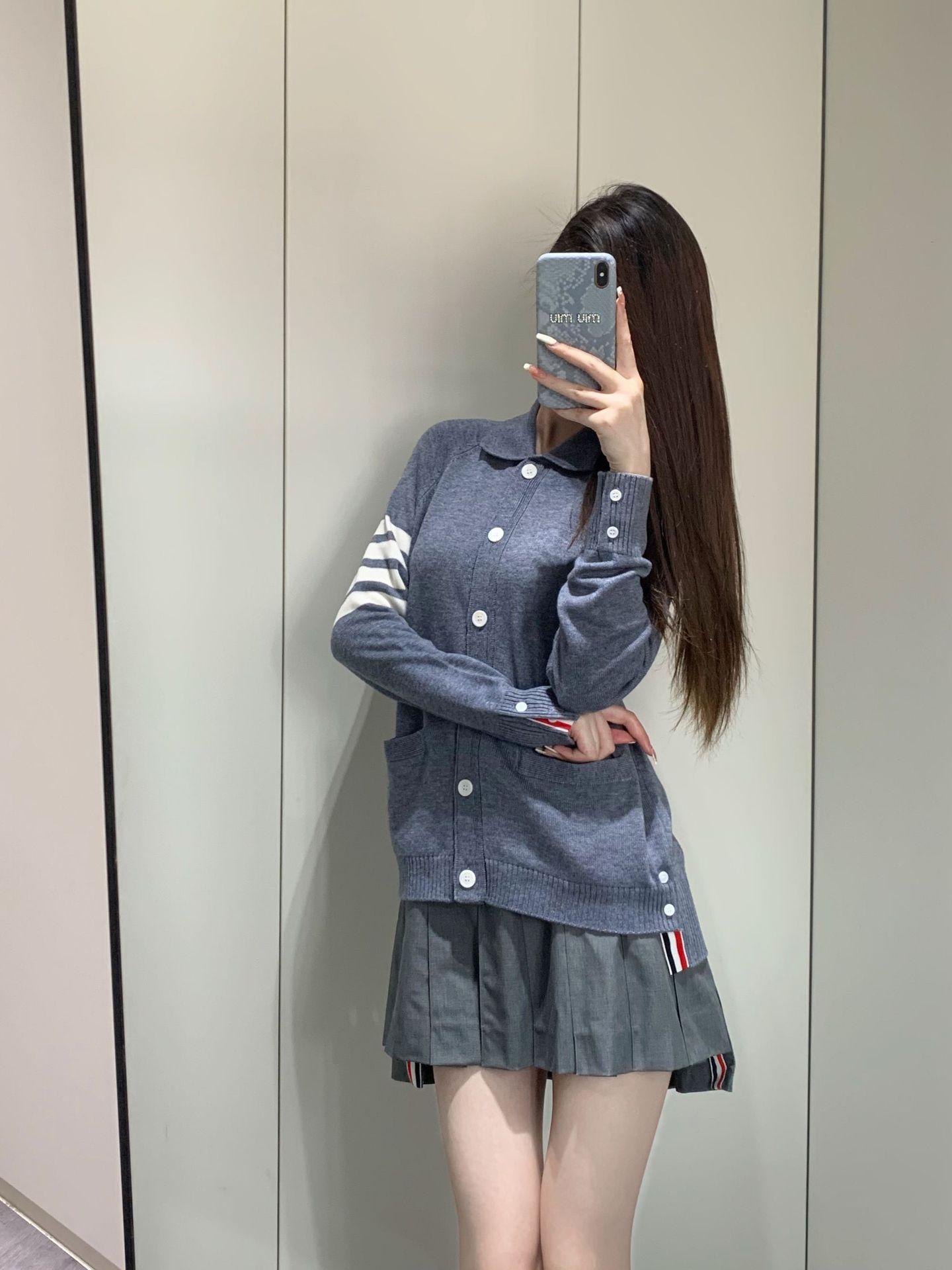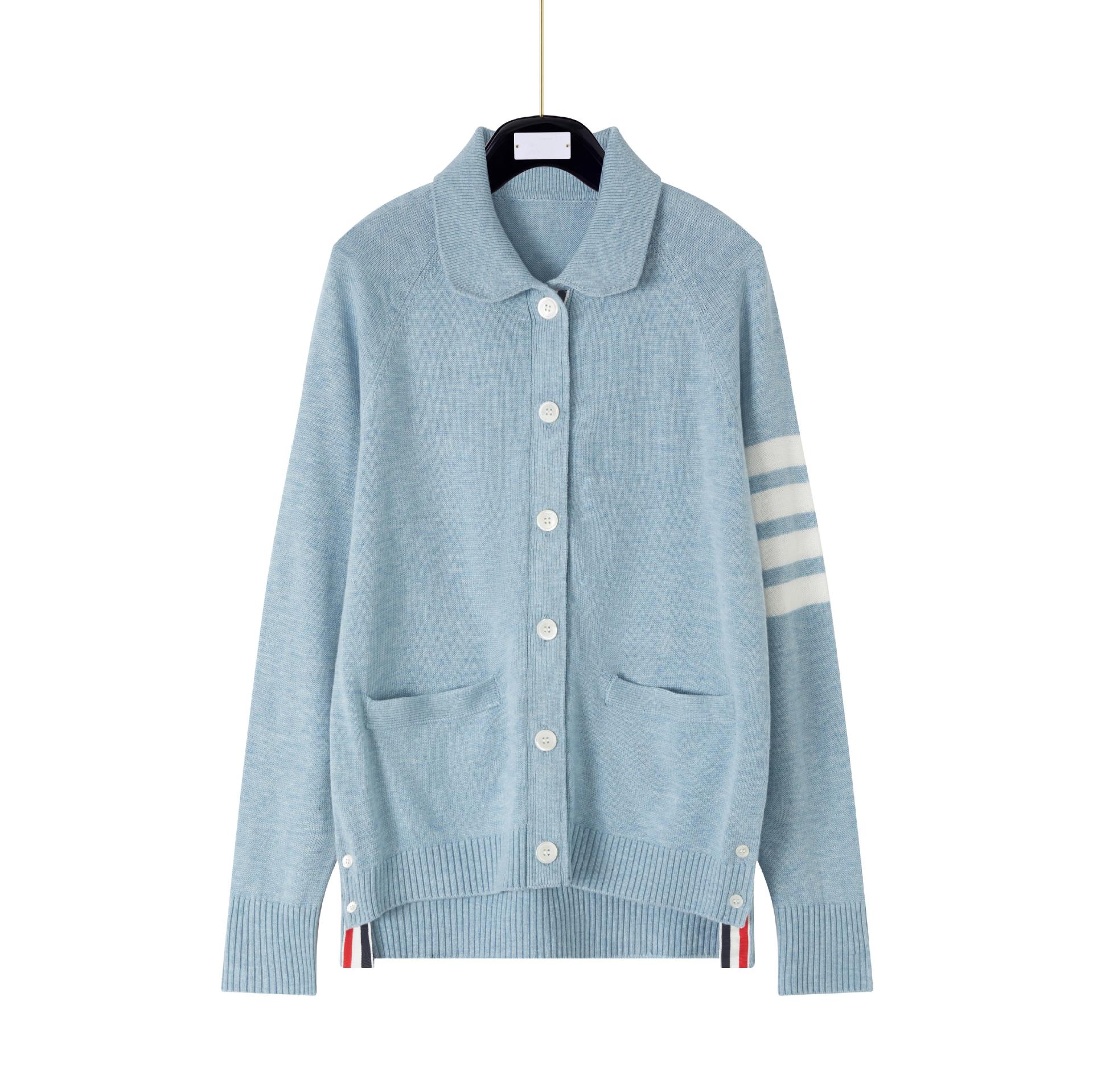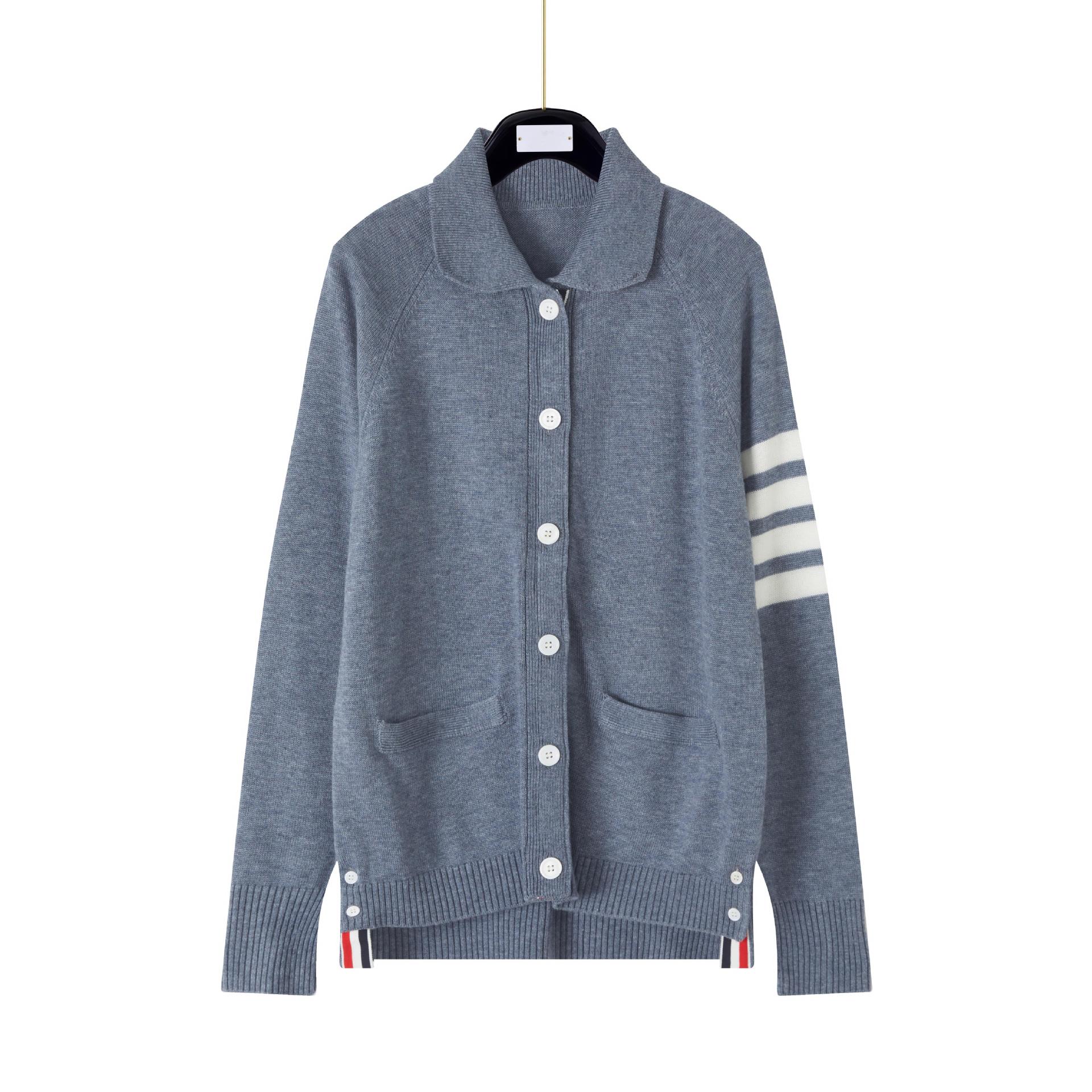Cárdigan de Punto para Mujer Tb Primavera Otoño Invierno Nuevo Cárdigan con Solapa de Cuatro Rayas Top Casual Más Fácil de Combinar Cárdigan