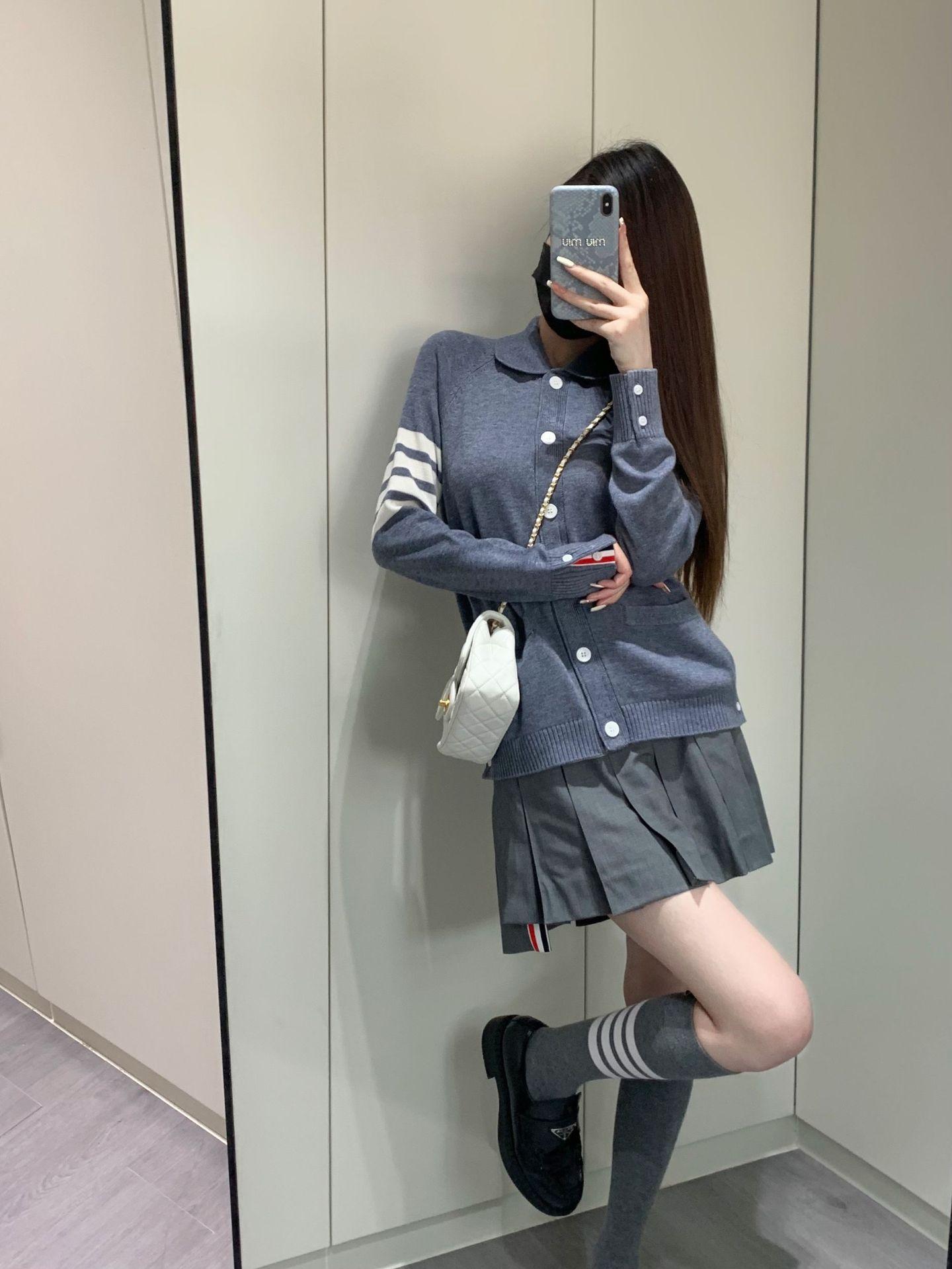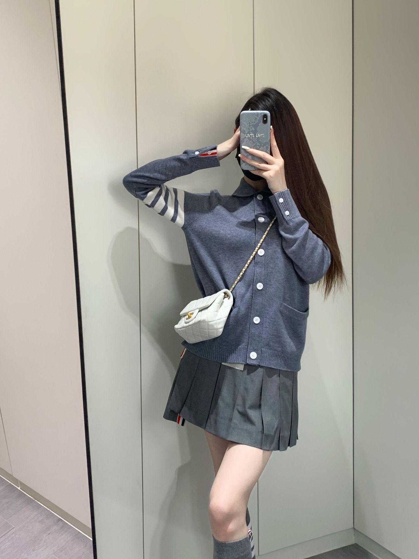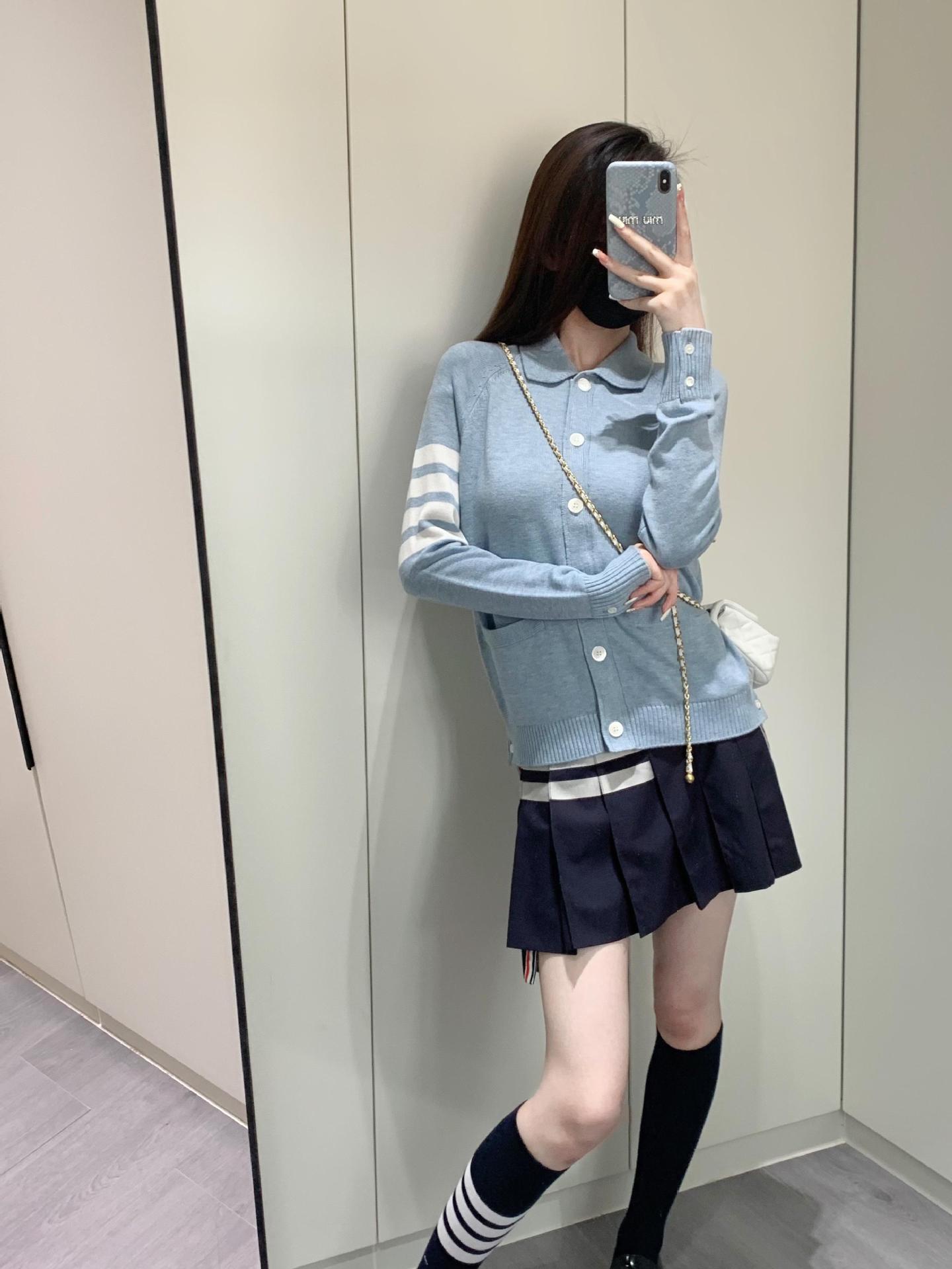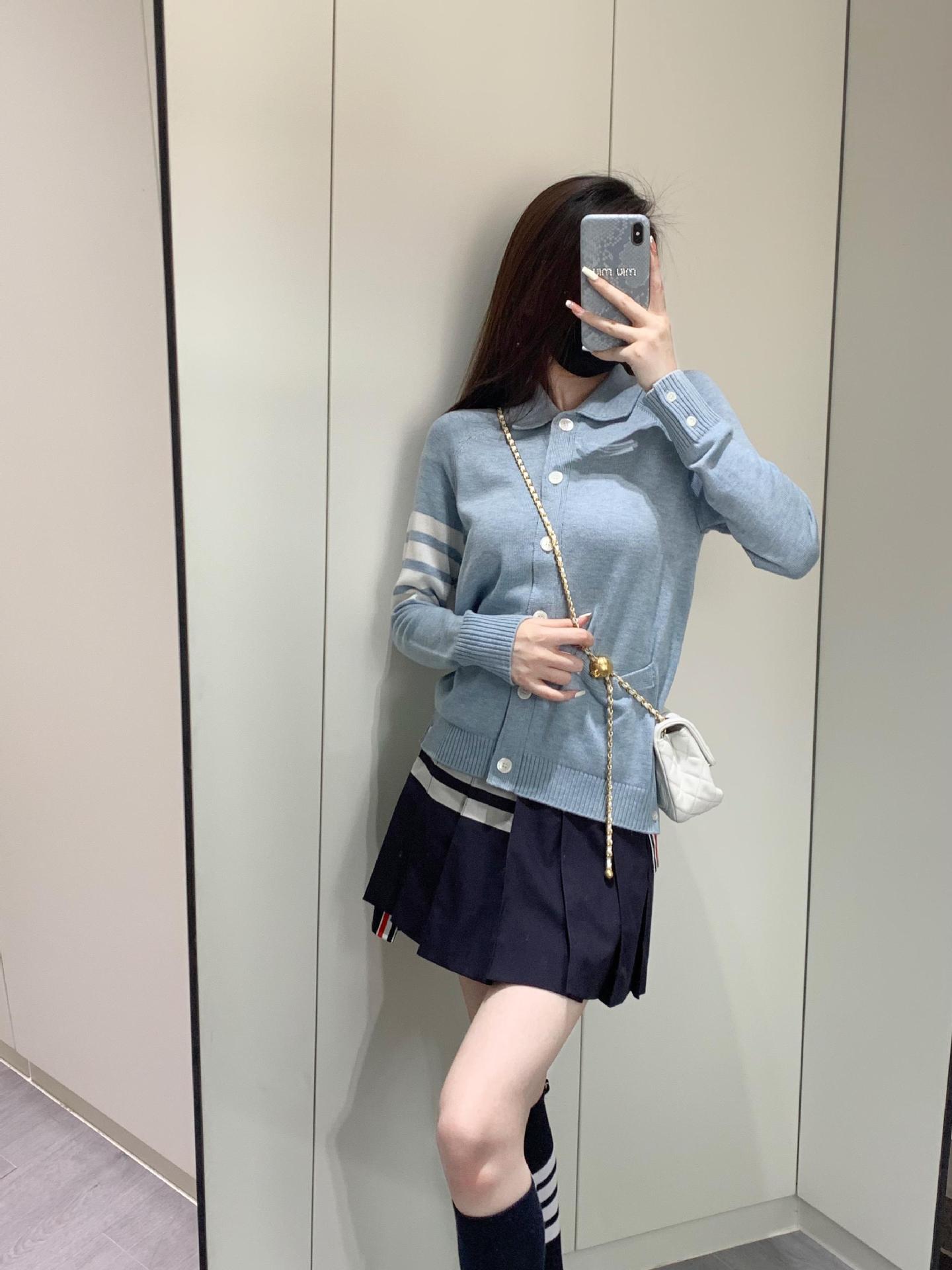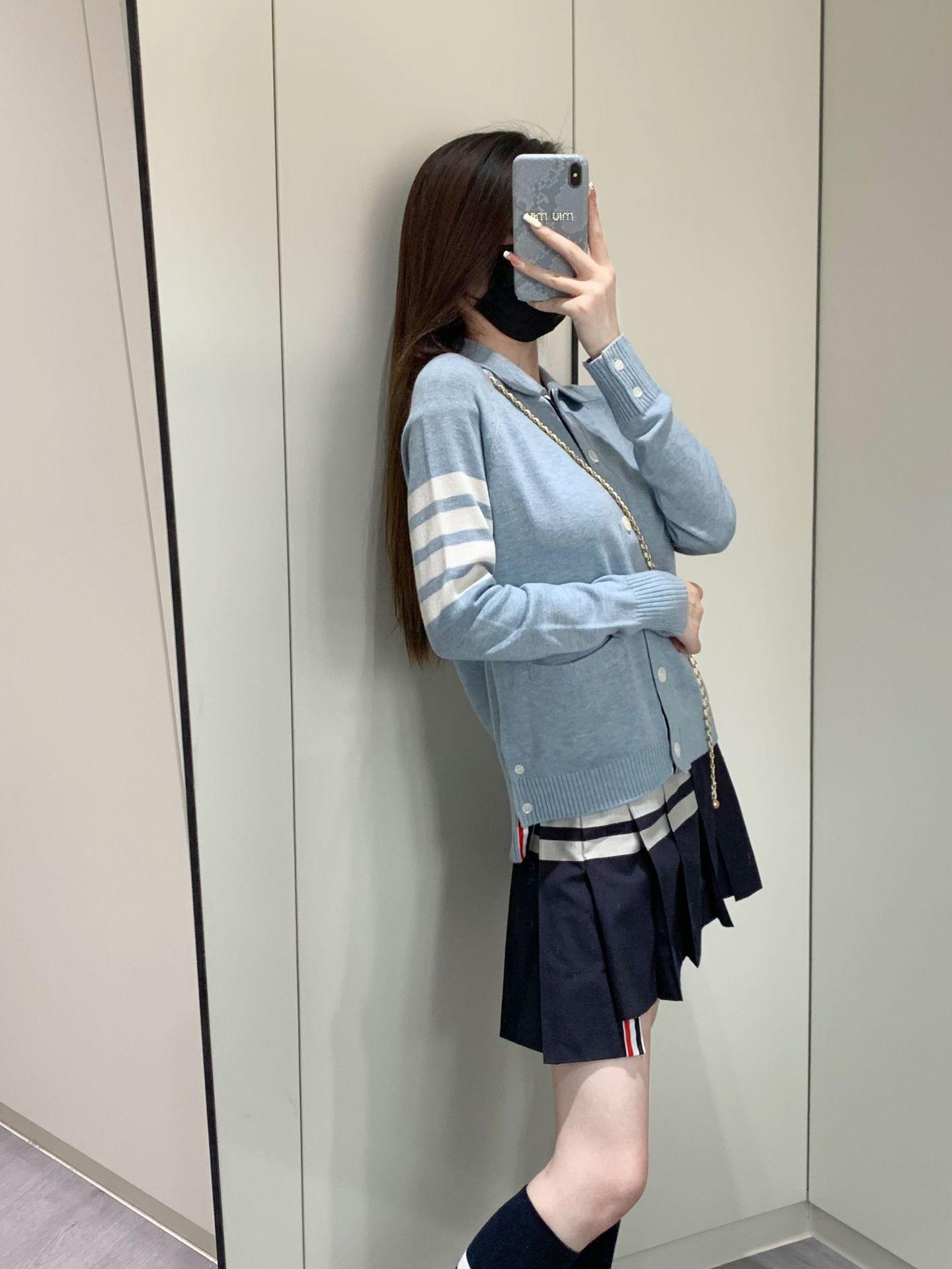 Cárdigan de Punto para Mujer Tb Primavera Otoño Invierno Nuevo Cárdigan con Solapa de Cuatro Rayas Top Casual Más Fácil de Combinar Cárdigan