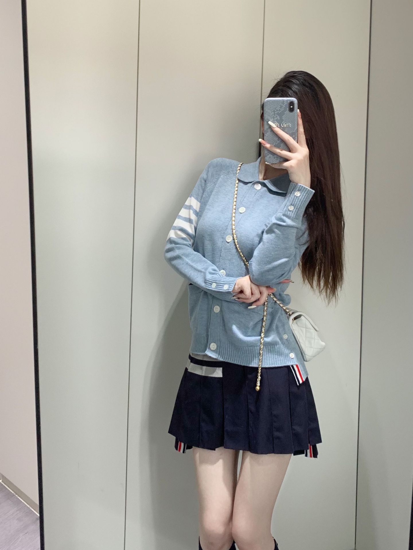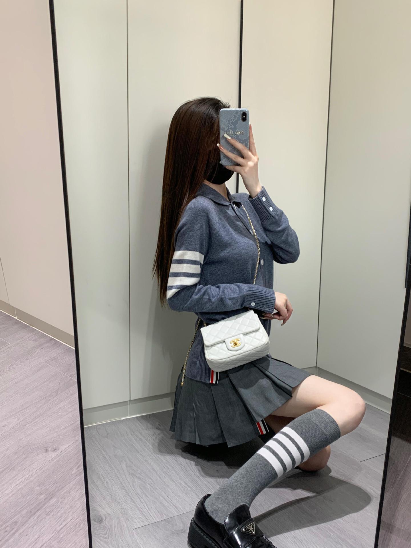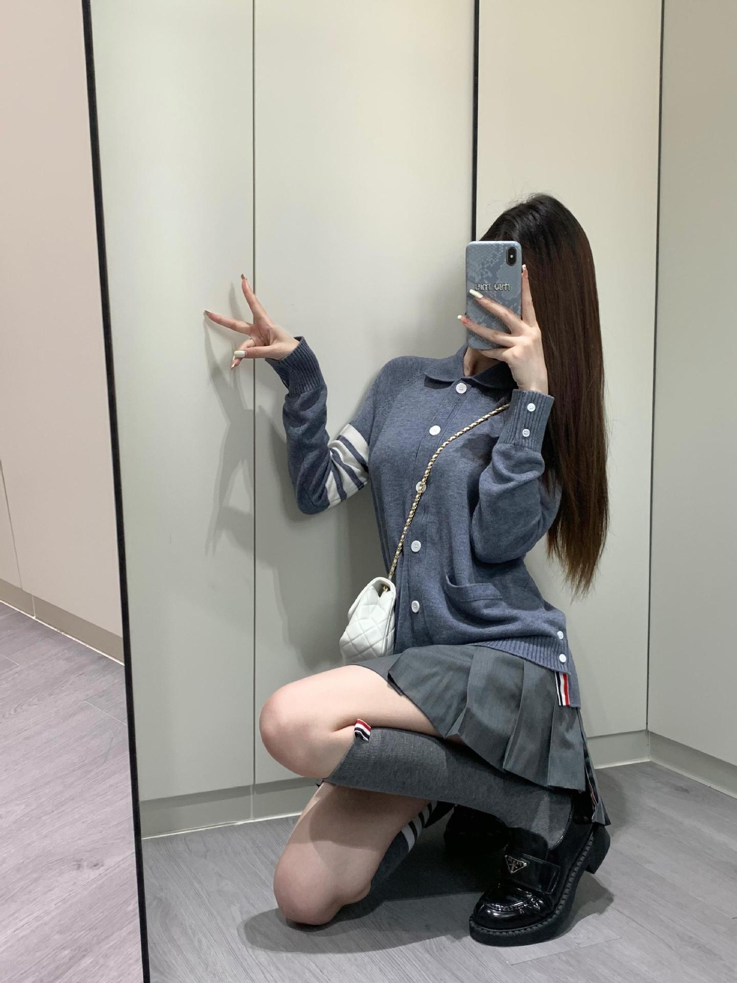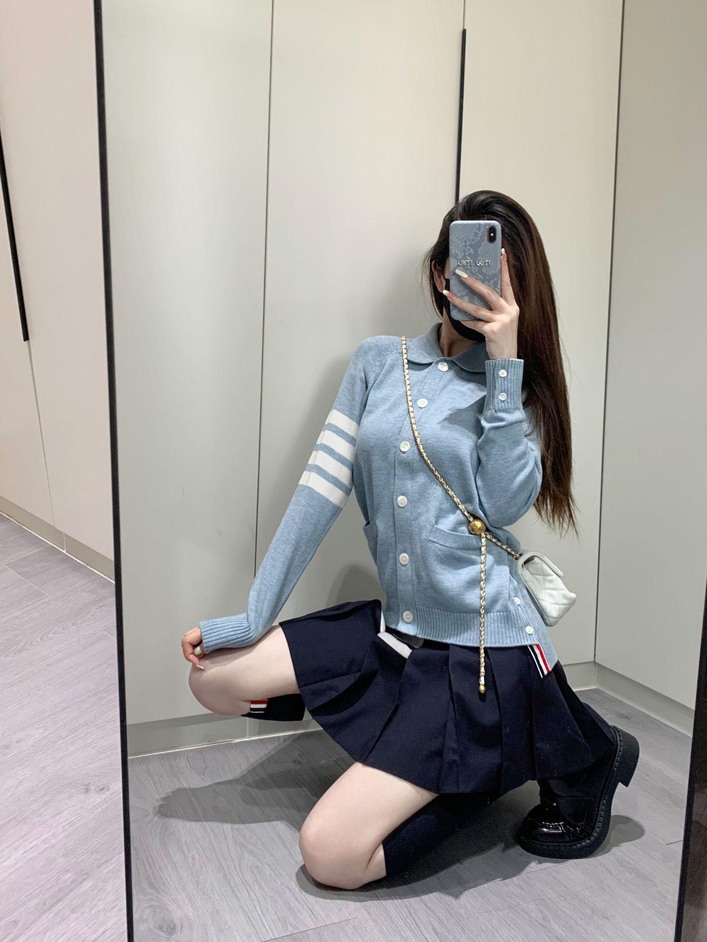 Cárdigan de Punto para Mujer Tb Primavera Otoño Invierno Nuevo Cárdigan con Solapa de Cuatro Rayas Top Casual Más Fácil de Combinar Cárdigan