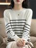 2025 Primavera Novas Mulheres Crewneck Pullover Malha Base Camisa Listrada Solta Manga Comprida Algodão Casual