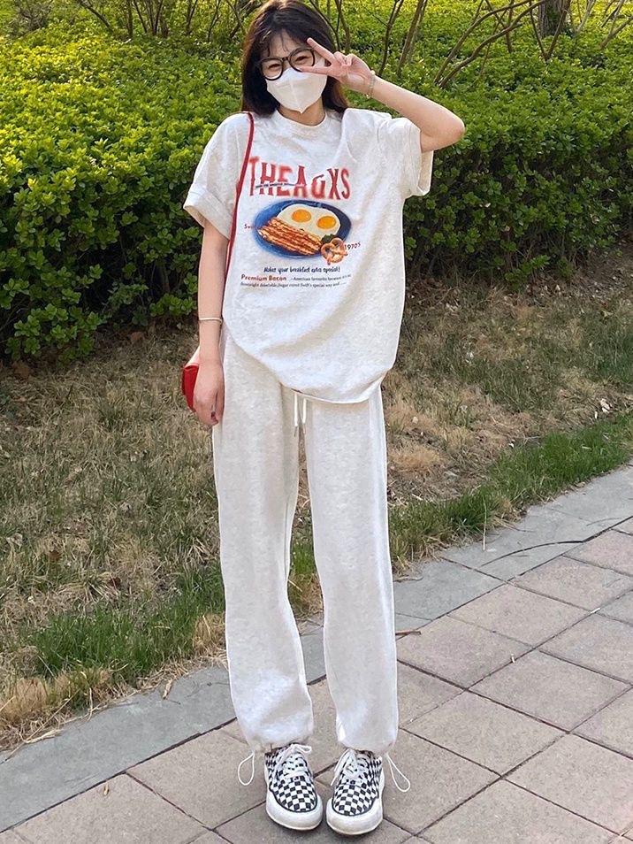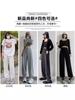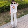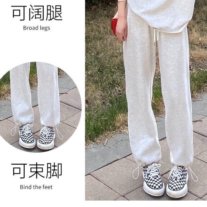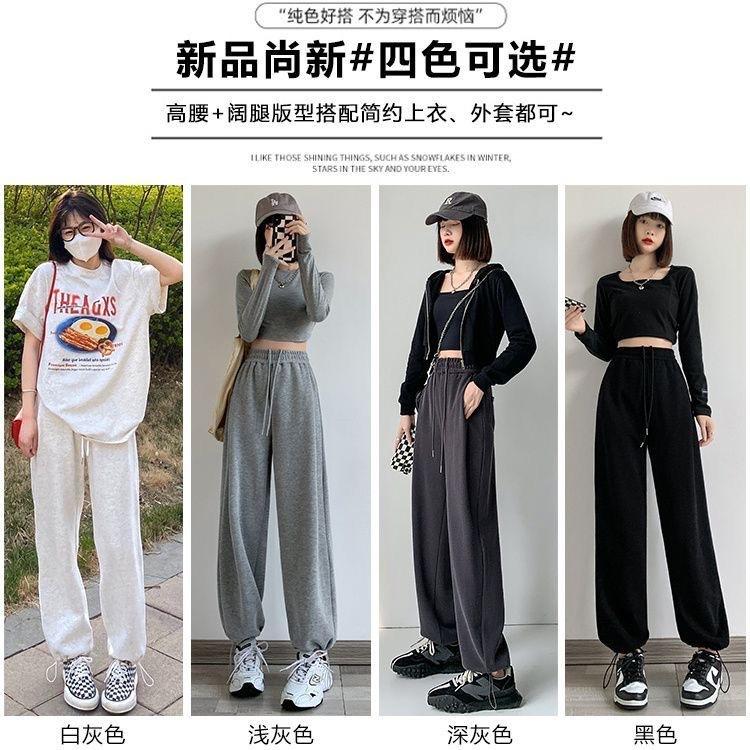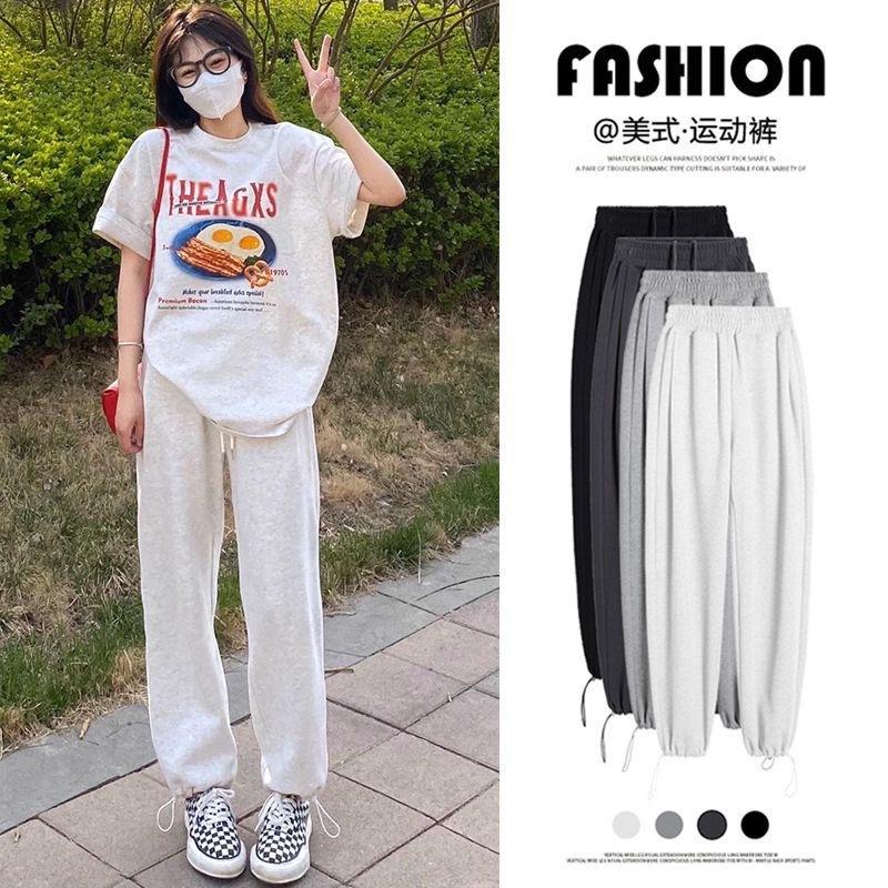 Pantalones deportivos blancos y grises para mujer, de verano, finos, de tubo recto, holgados, de pierna ancha, estilo americano, con puntera.