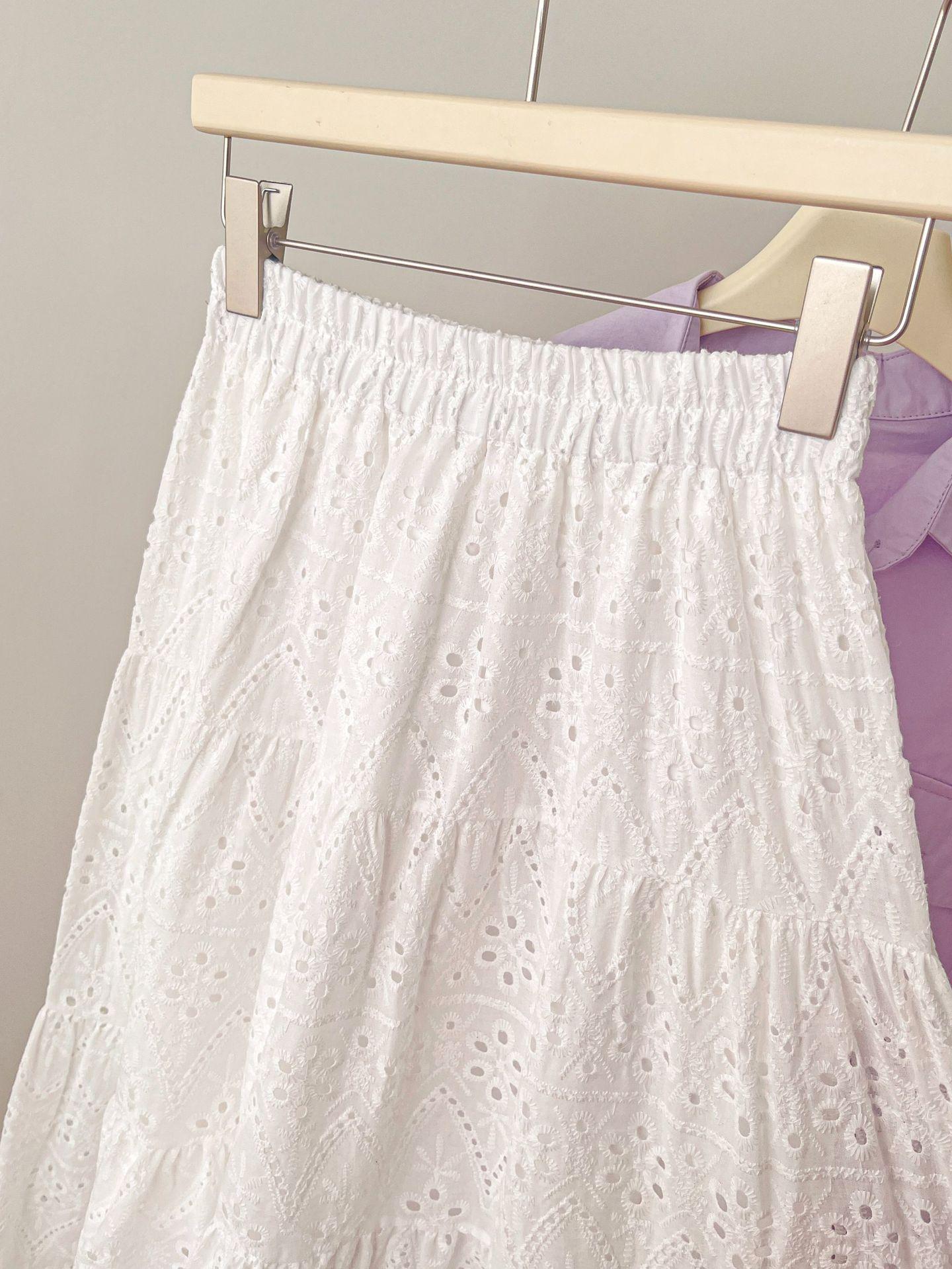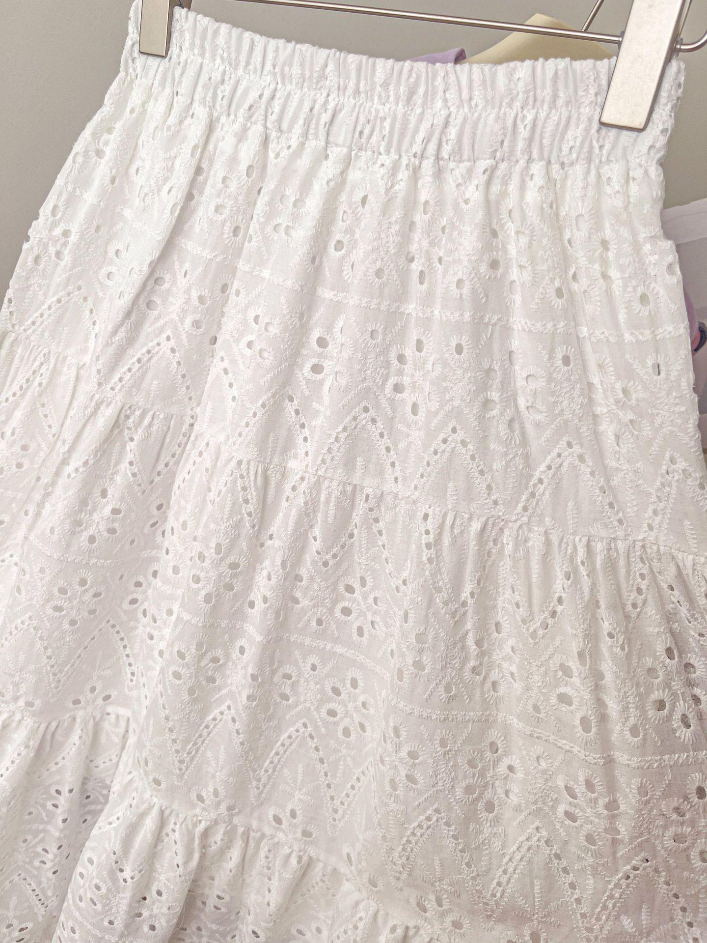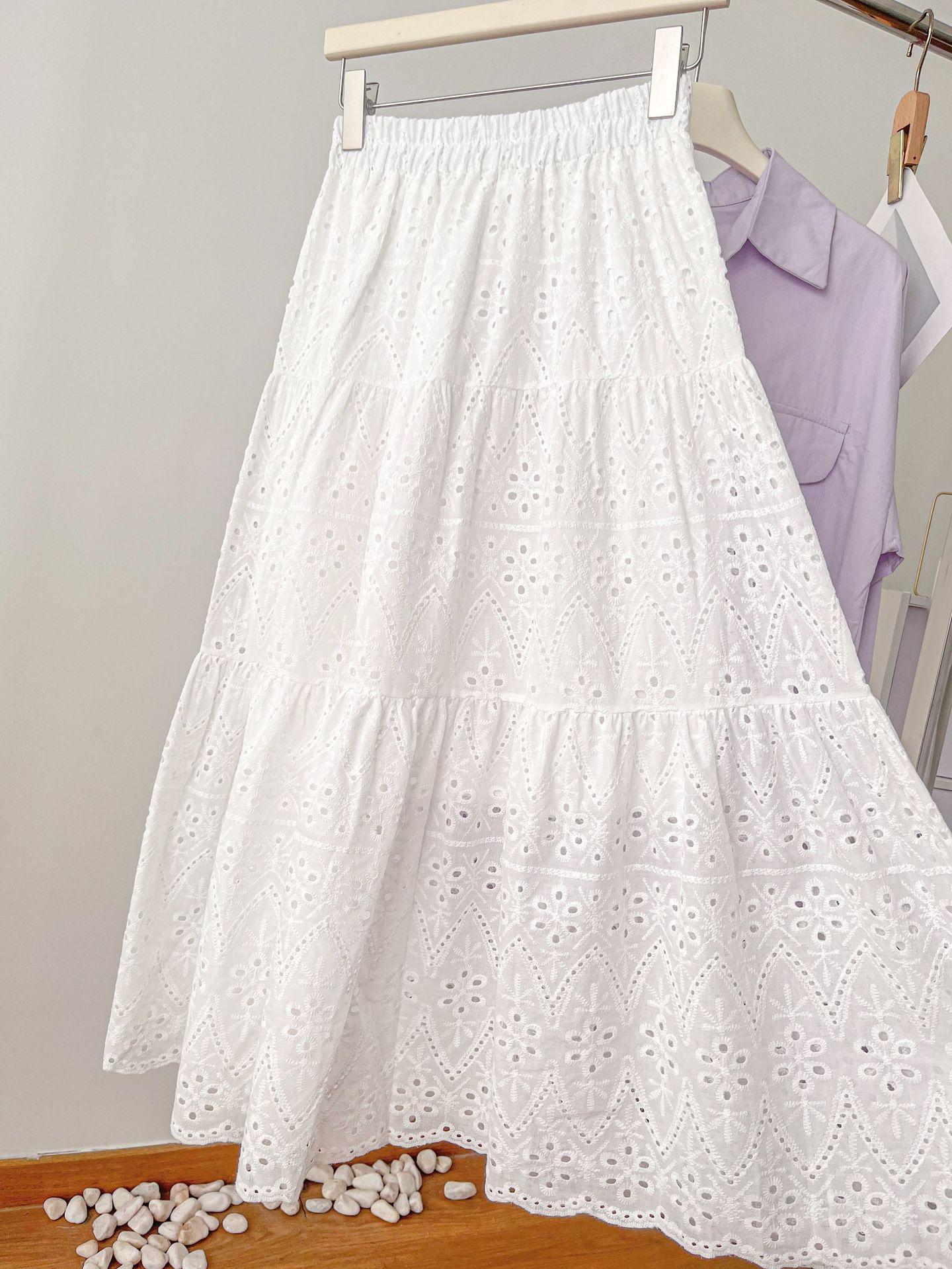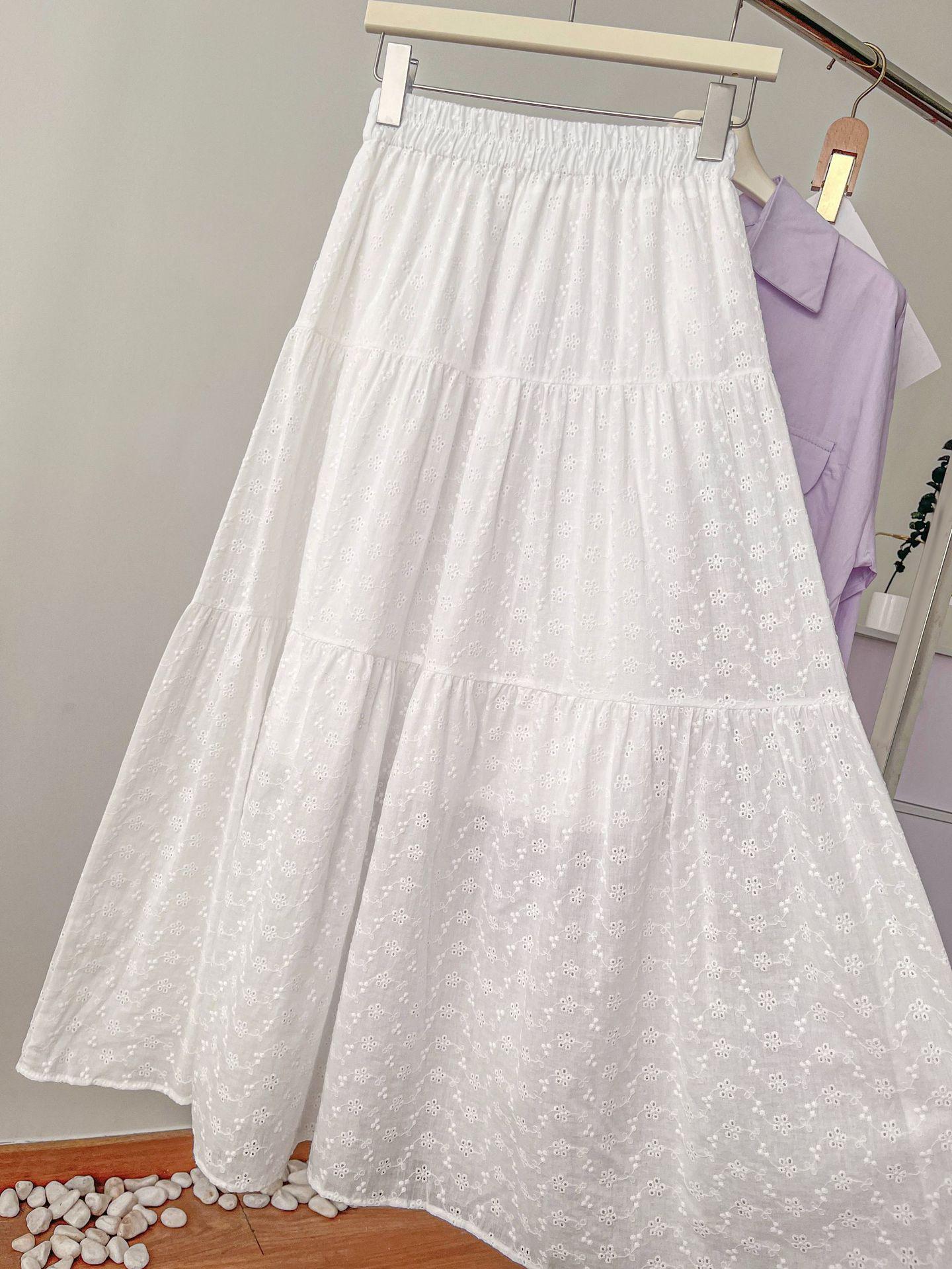 Falda larga de verano para mujer, con costuras, huecas, drapeadas y de hada, falda blanca de corte A