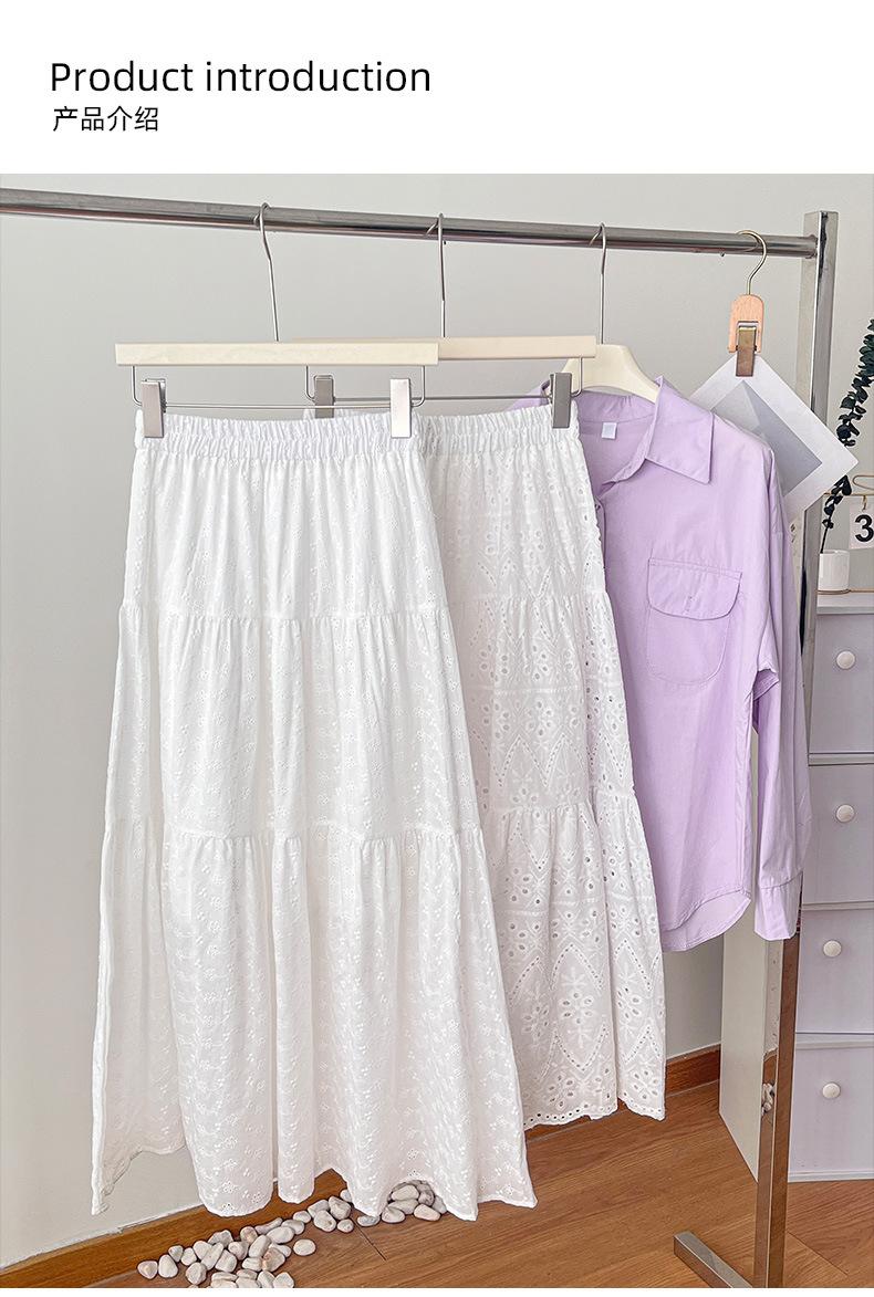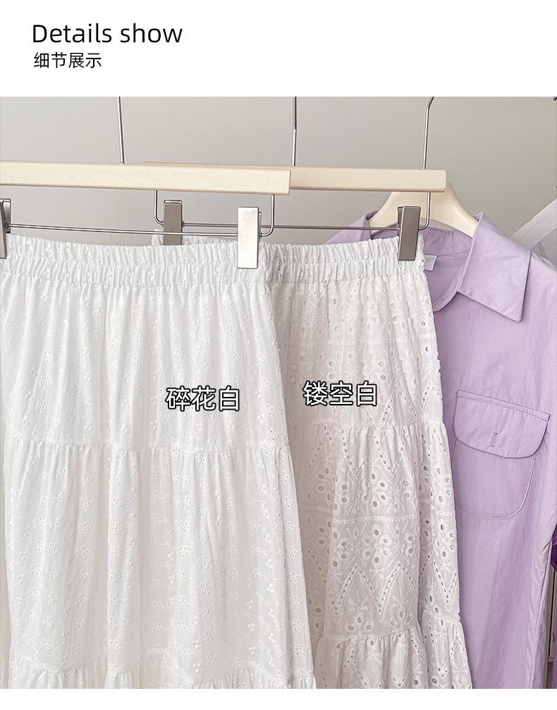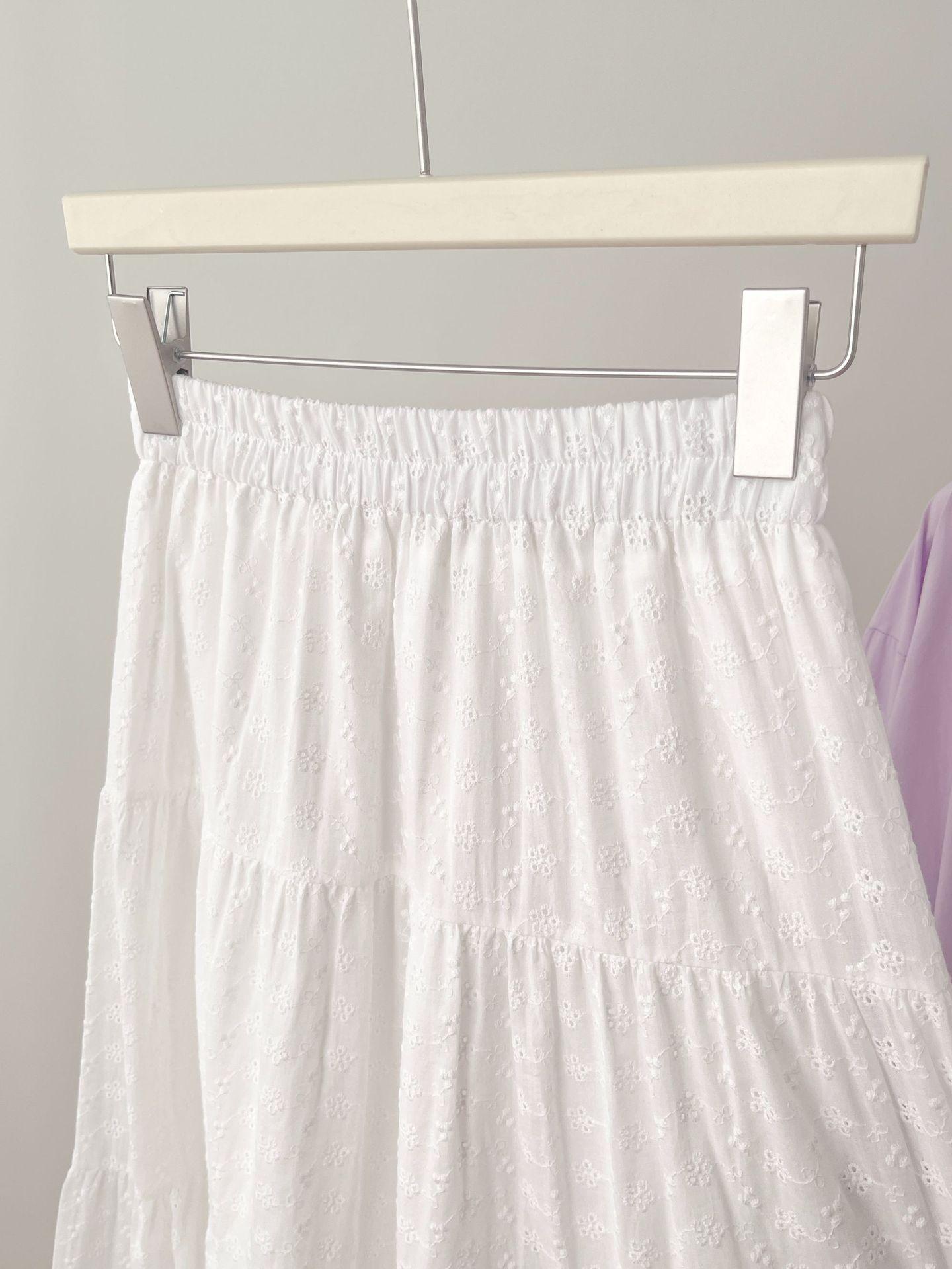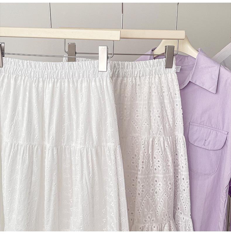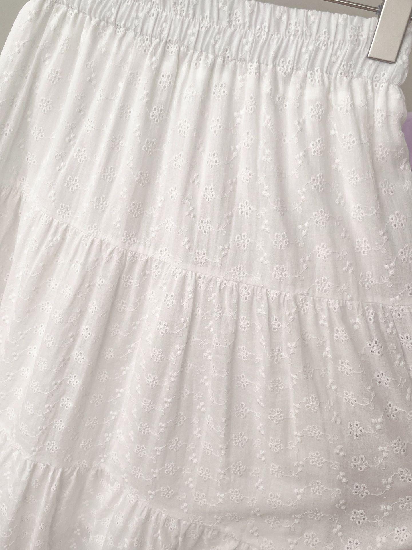 Falda larga de verano para mujer, con costuras, huecas, drapeadas y de hada, falda blanca de corte A