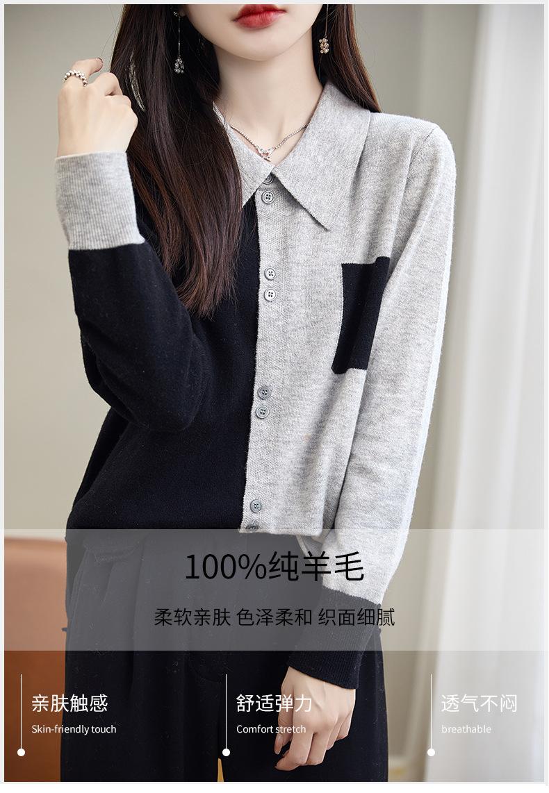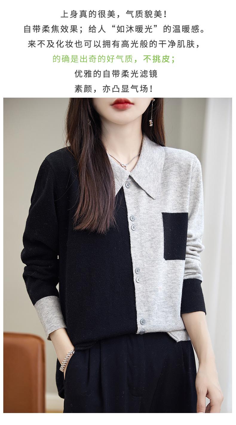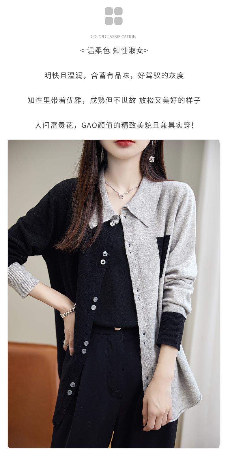 Cárdigan de punto de lana pura con cuello POLO para mujer, elegante, informal, sencillo, holgado, de manga larga, con hebilla que combina con todo.